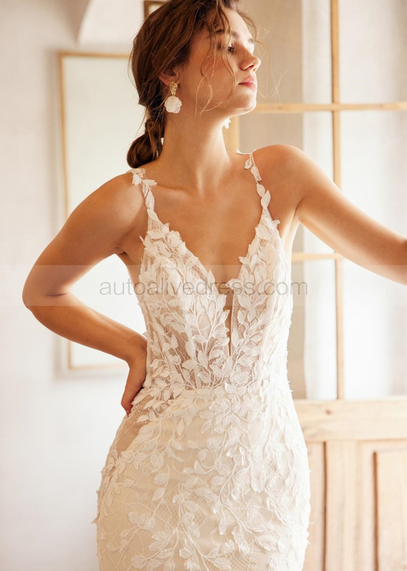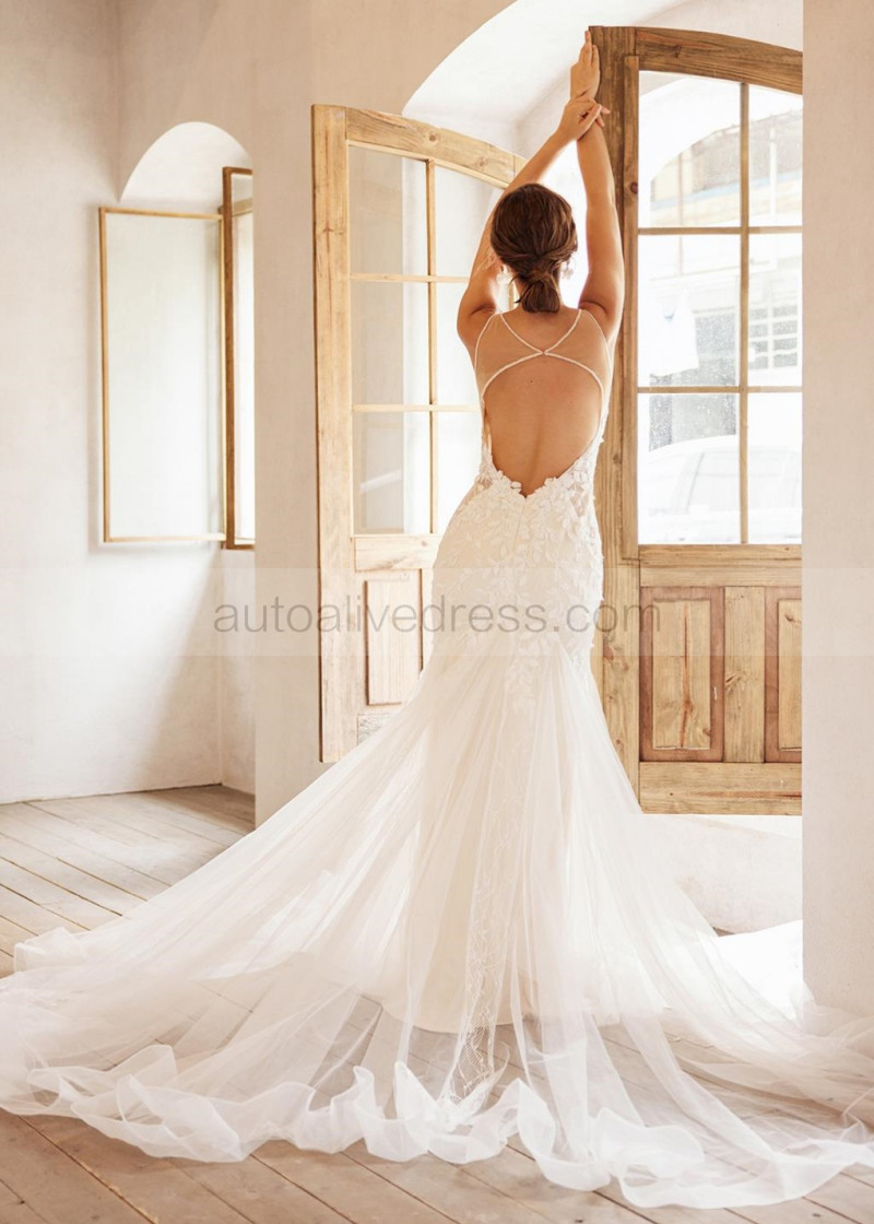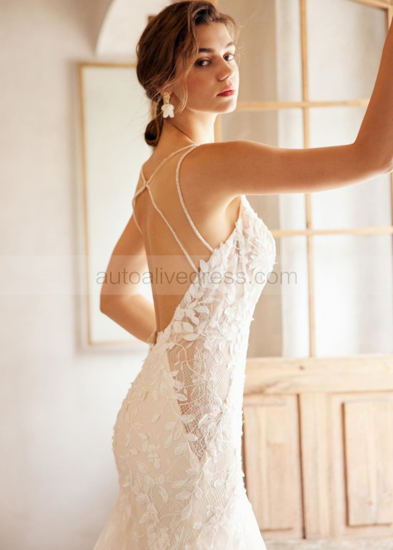 Ivory 3D Lace Tulle Keyhole Back Top Fashion Wedding Dress