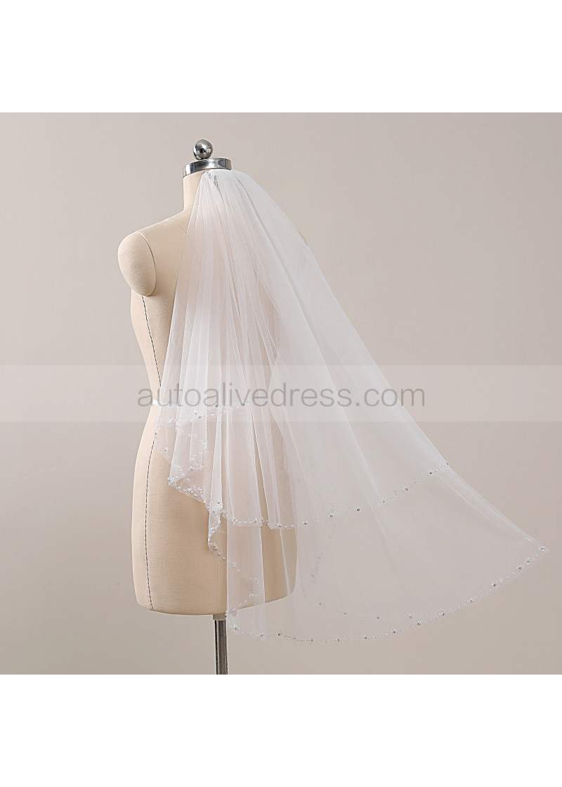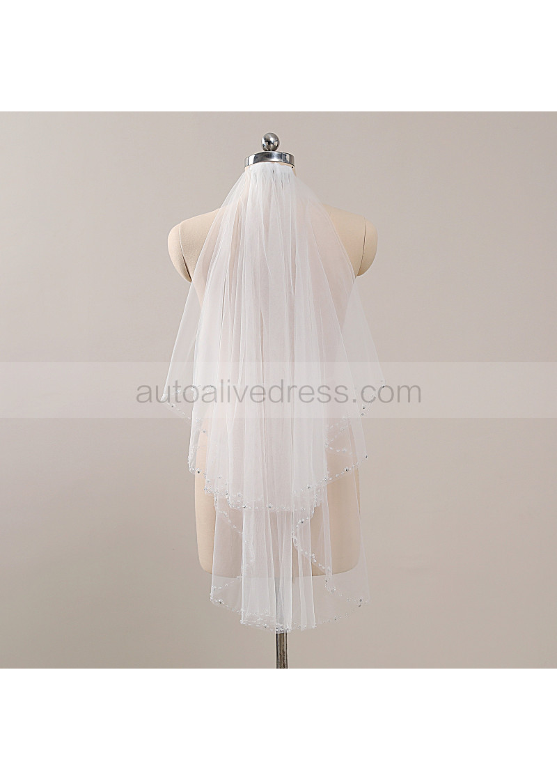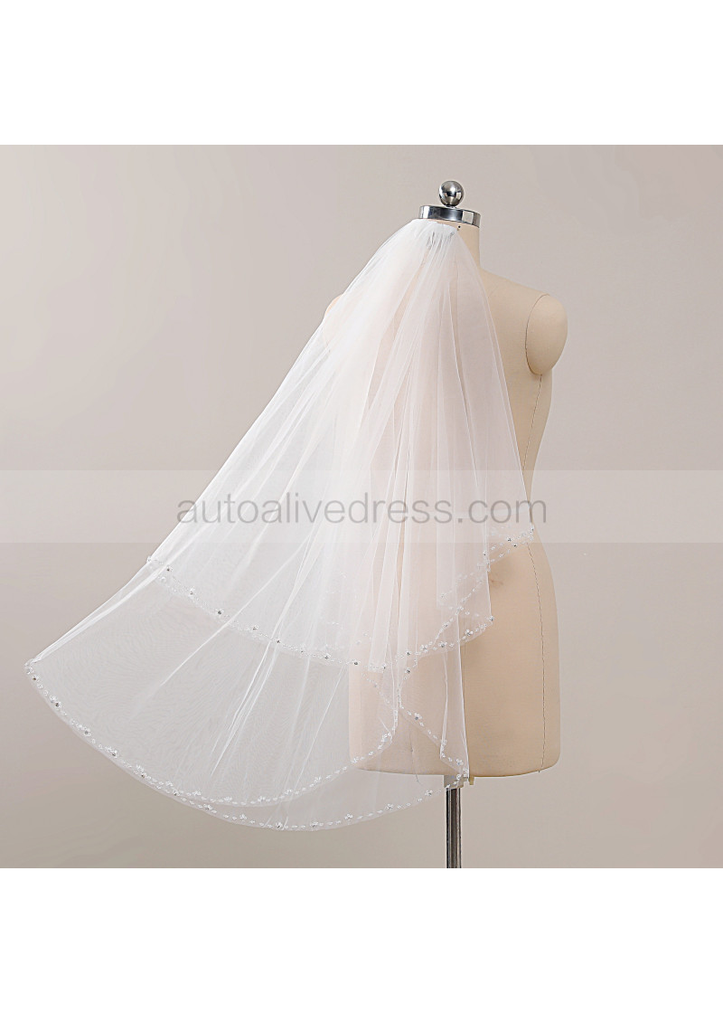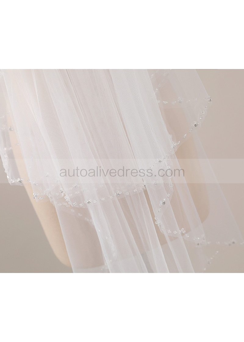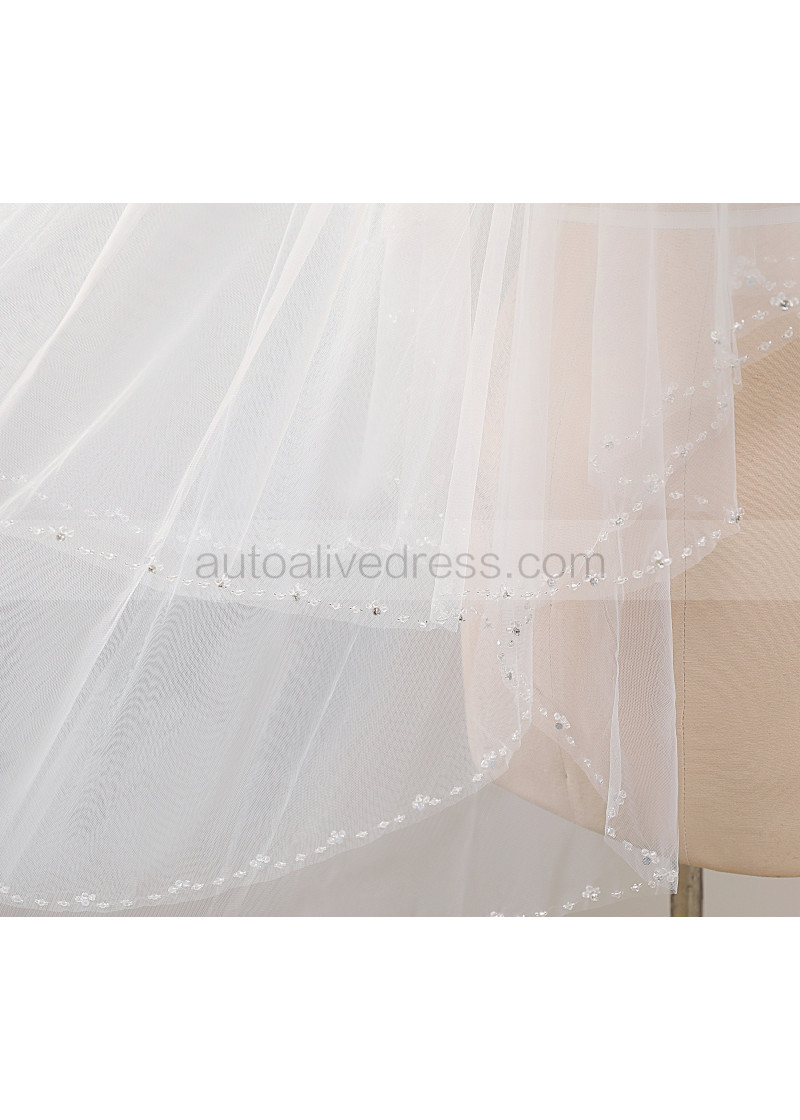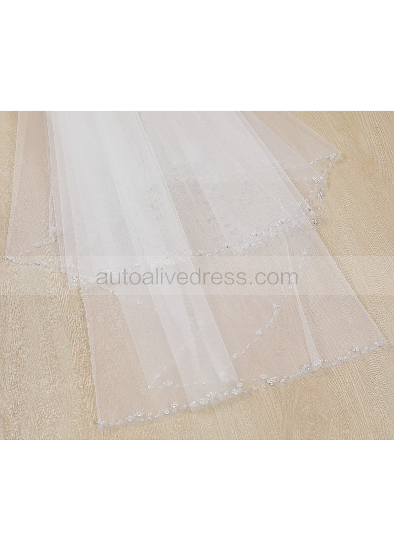 Ivory Beaded Edge Tulle Wedding Veil Two-tier Fingertip Veil