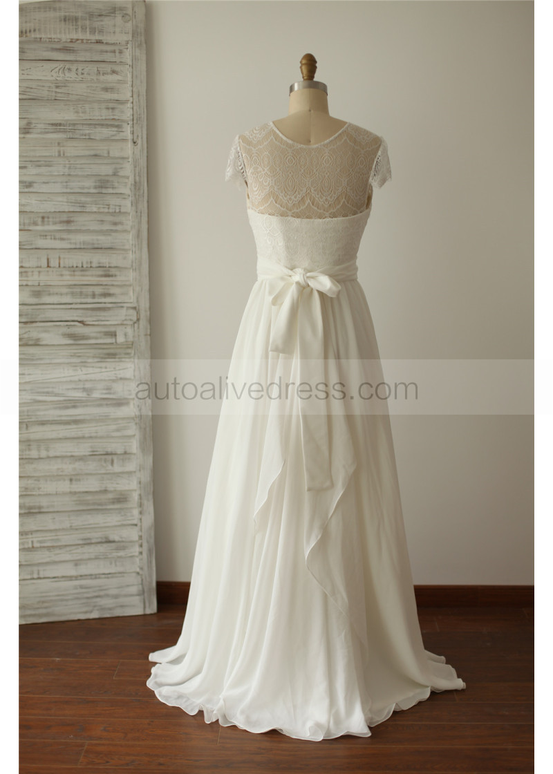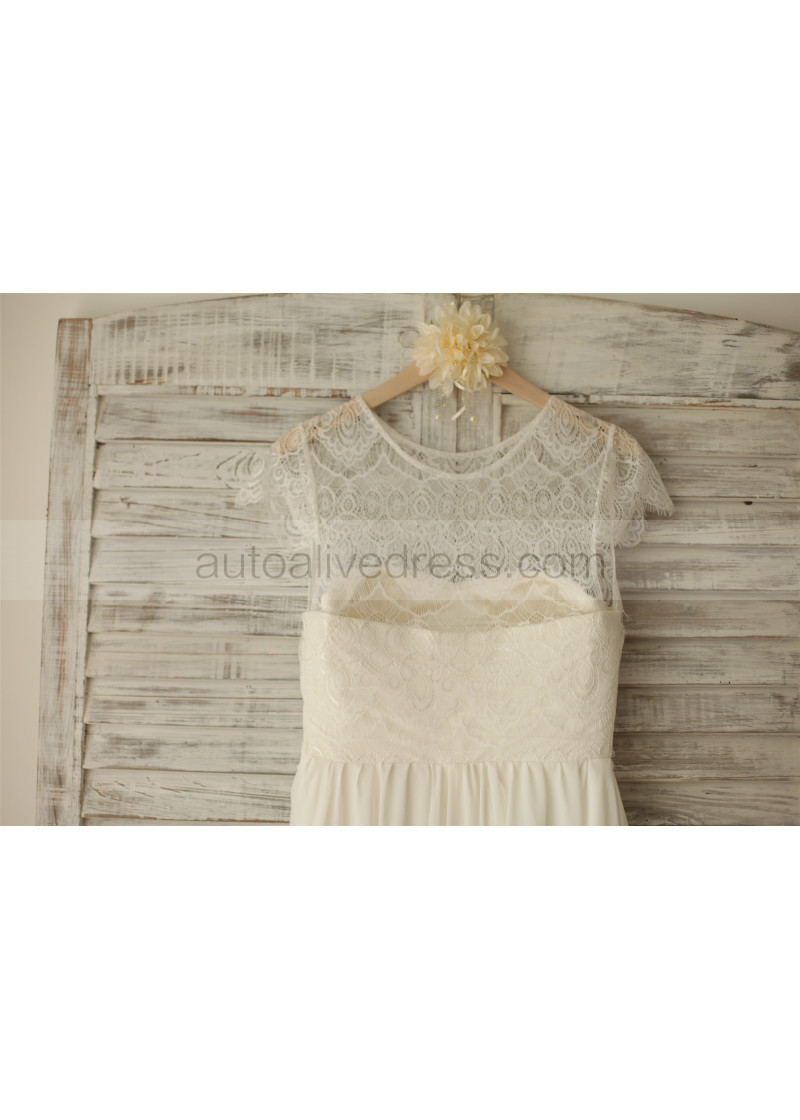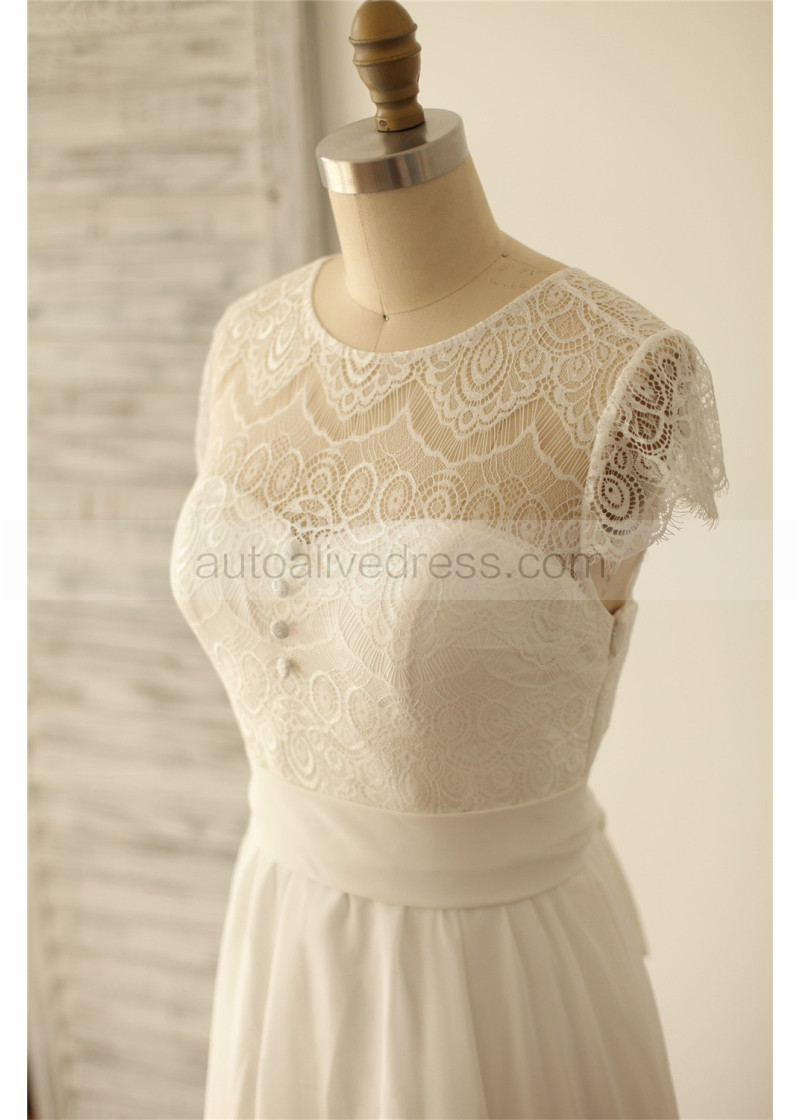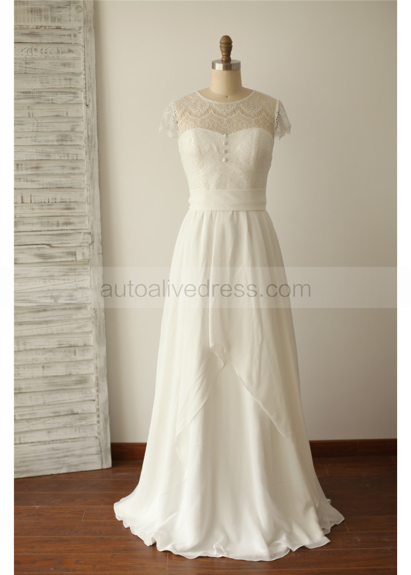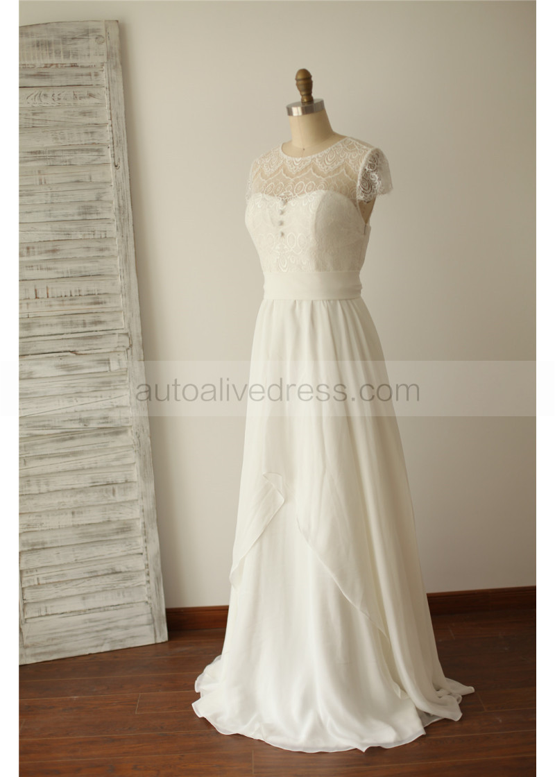 Ivory Eyelash Lace Chiffon With Decorated Buttons Floor Length Wedding Dress