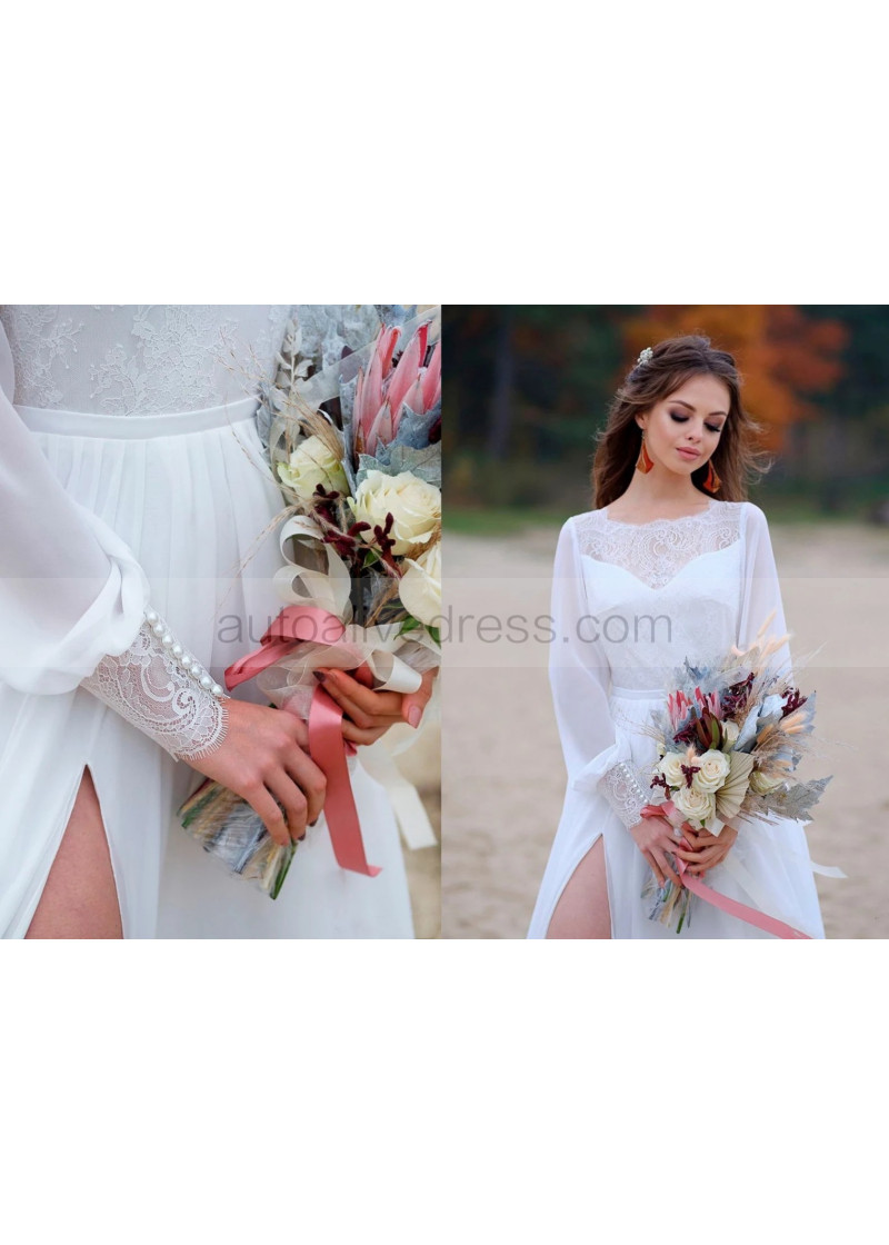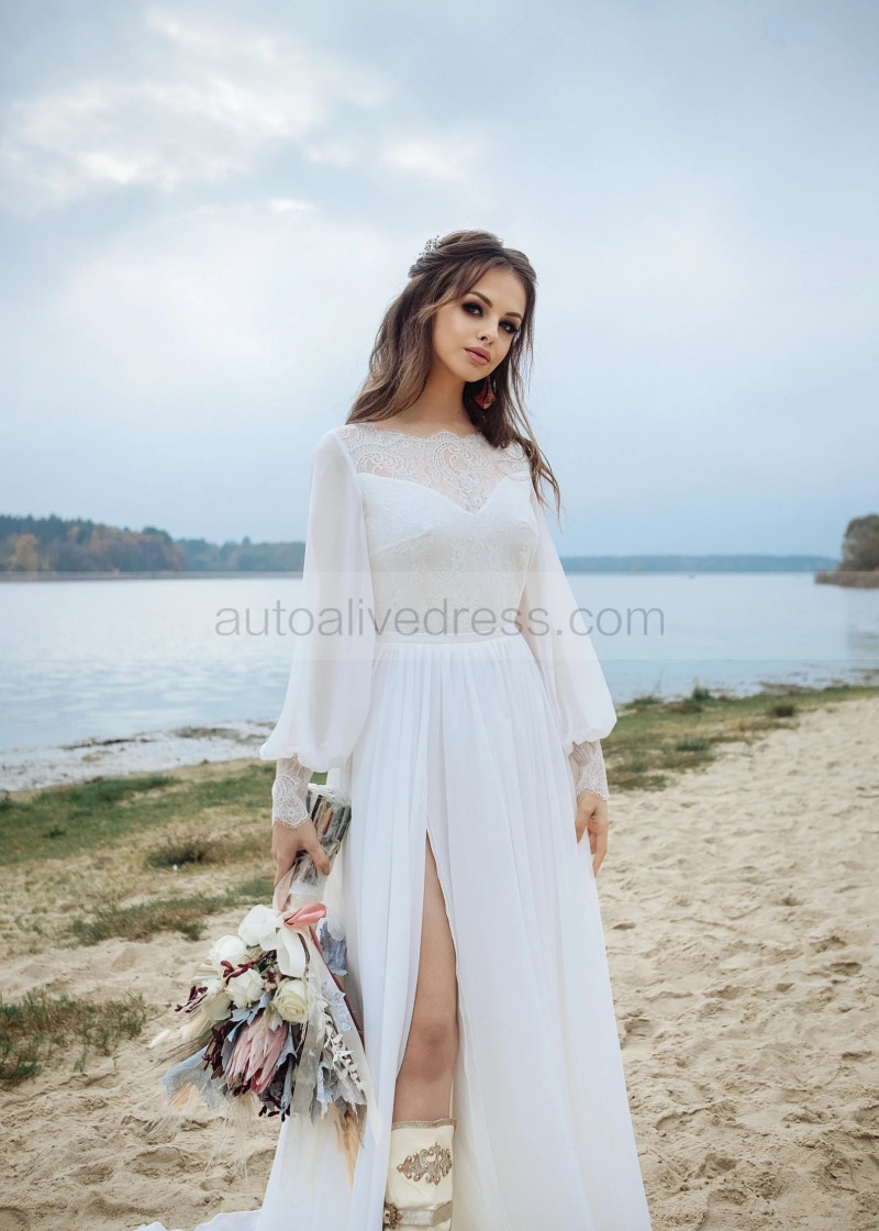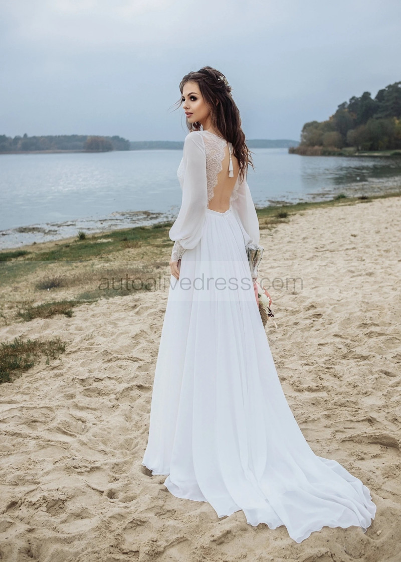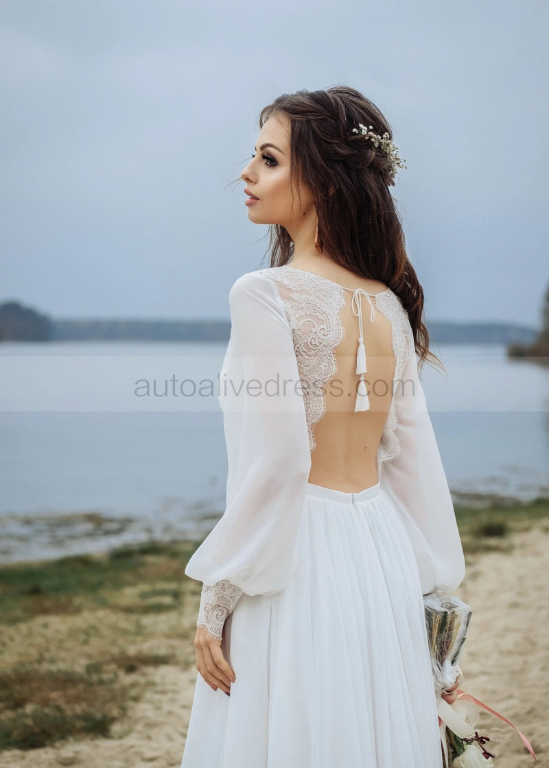Ivory Eyelash Lace Chiffon Tie Back Bohemian Wedding Dress