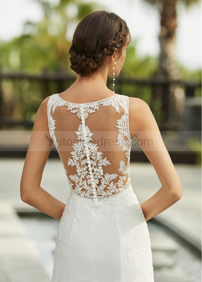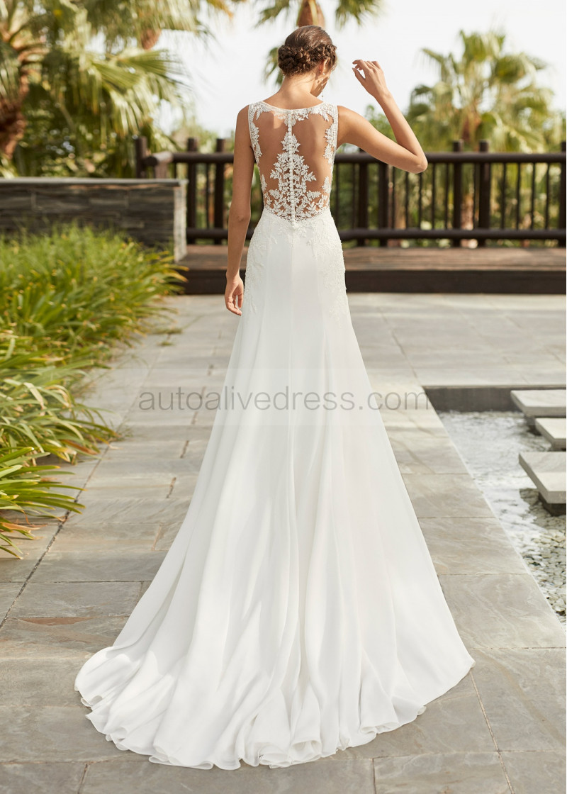 Ivory Lace Chiffon Illusion Back Chic Wedding Dress