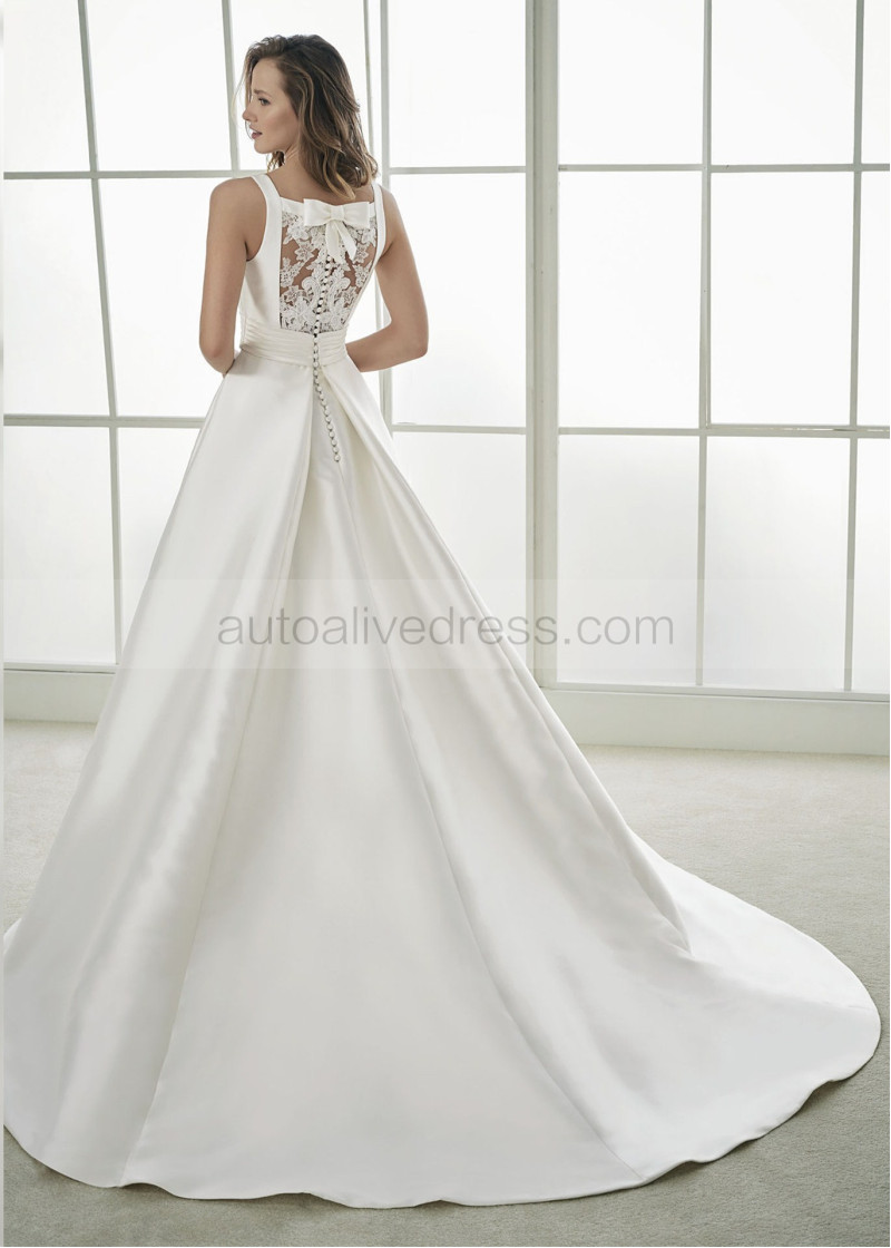 Ivory Lace Satin Buttons Back Wedding Dress