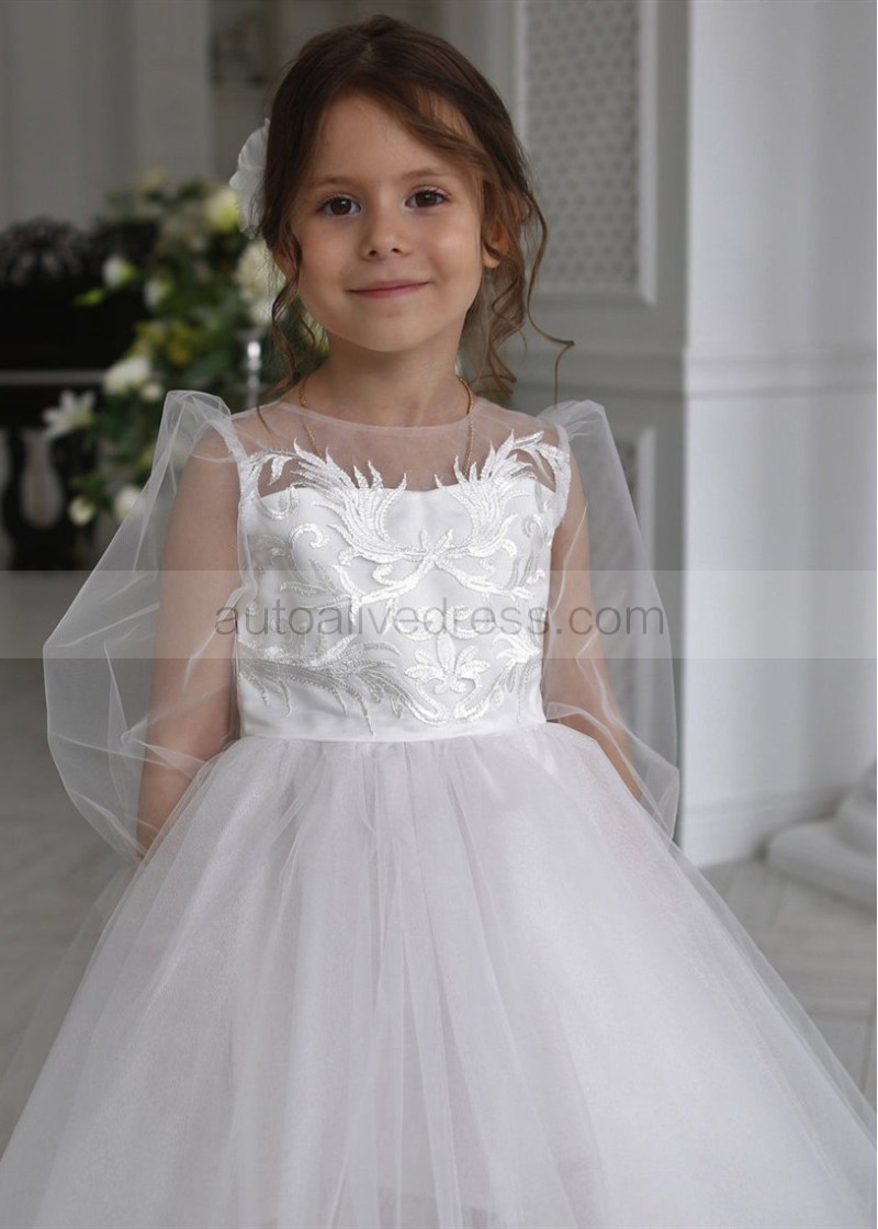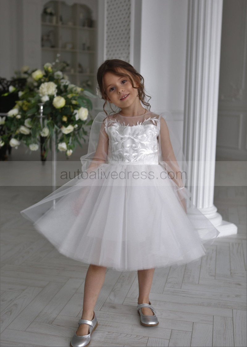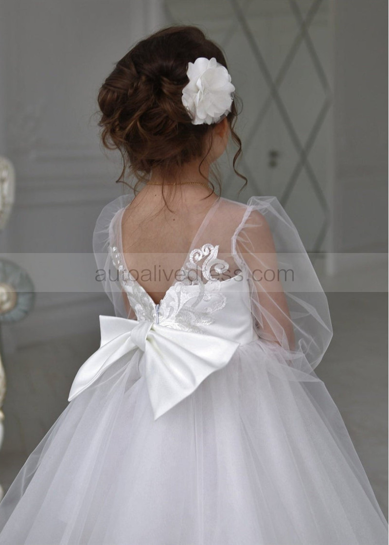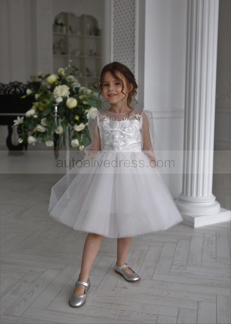 Ivory Lace Tulle Flower Girl Dress Baptism Dress