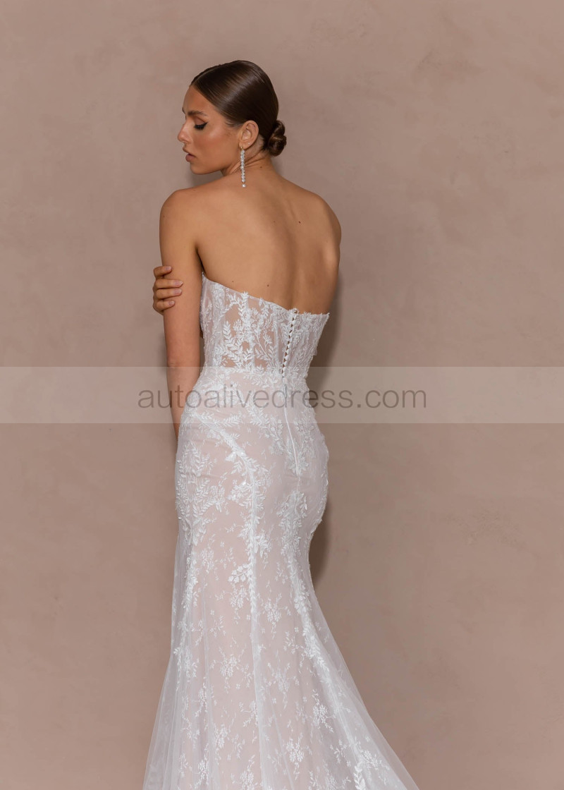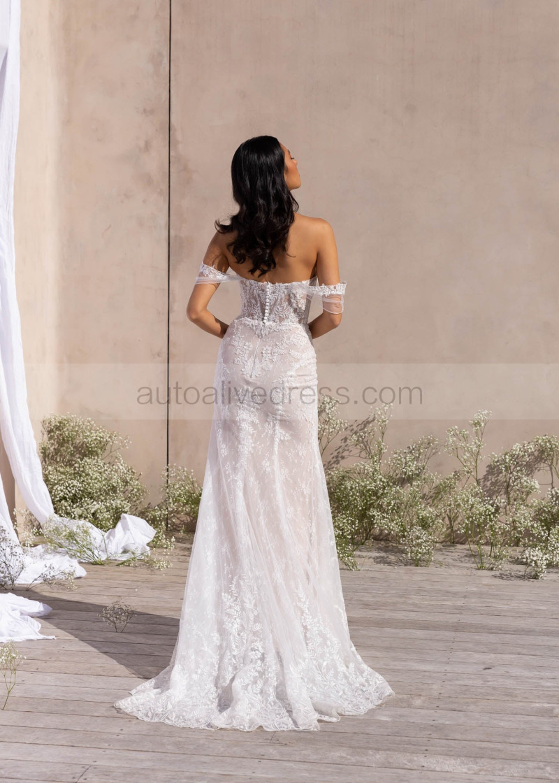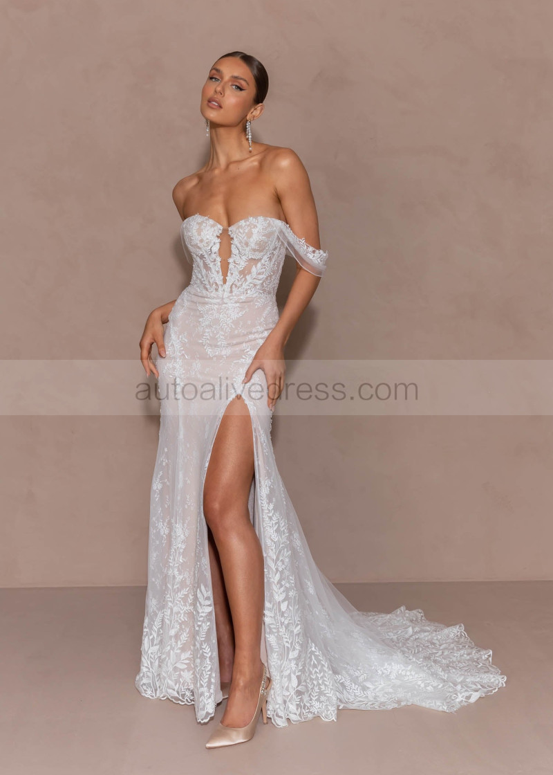 Ivory Lace Tulle Slit Fashionable Wedding Dress With Detachable Straps