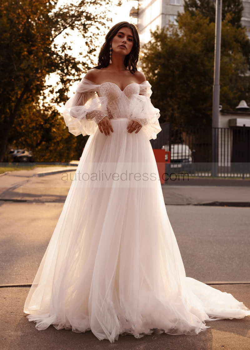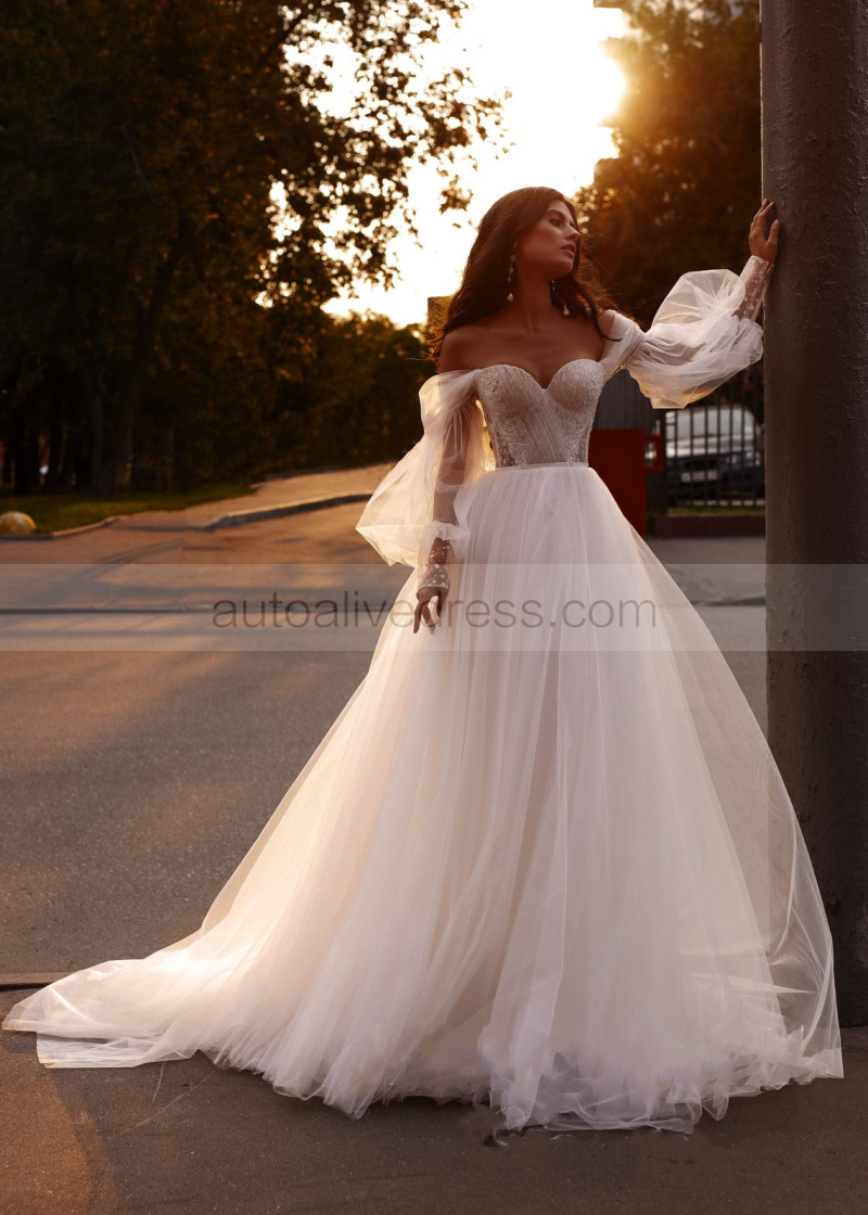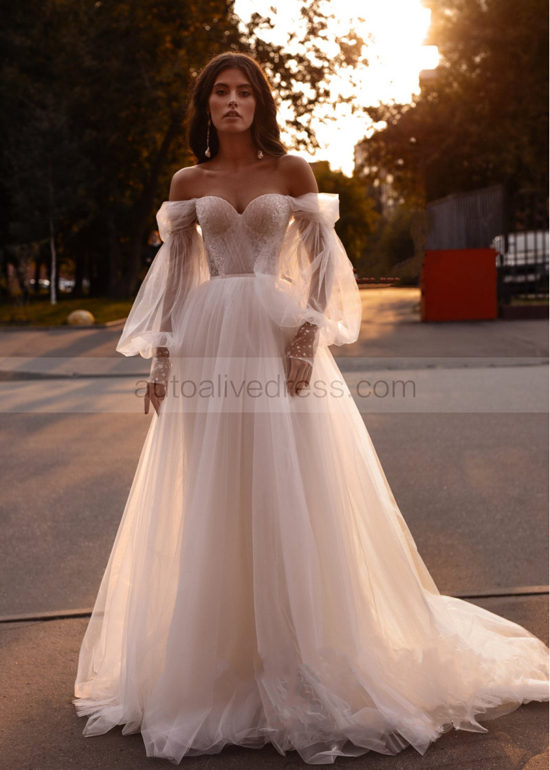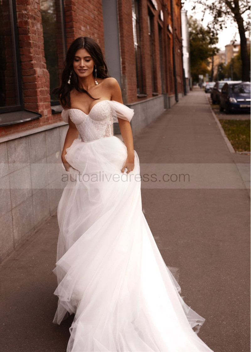 Ivory Lace Tulle Sparkle Beaded Wedding Dress