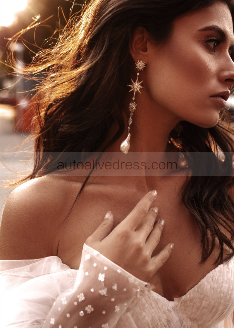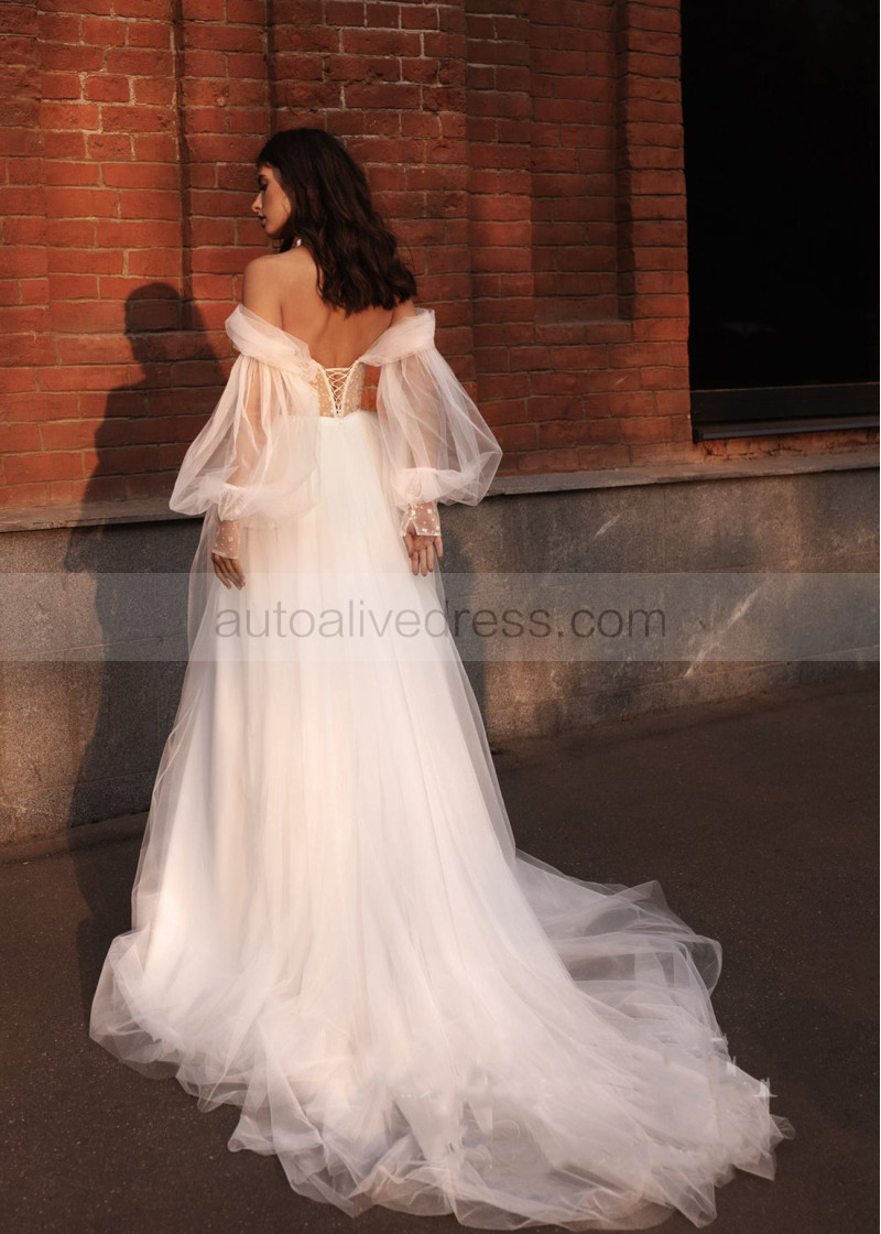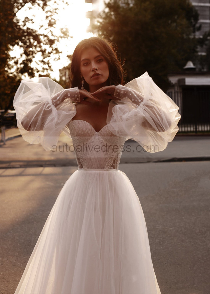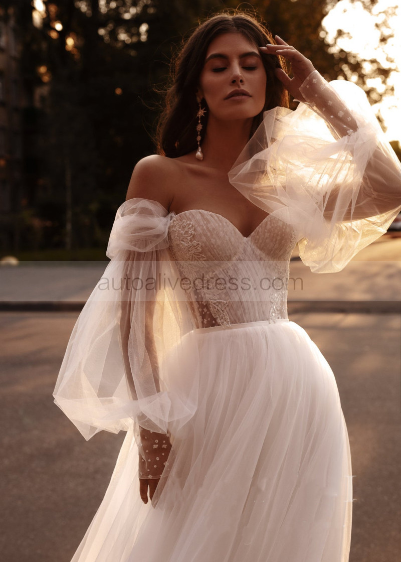 Ivory Lace Tulle Sparkle Beaded Wedding Dress