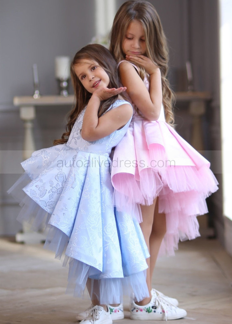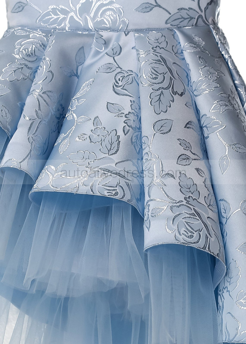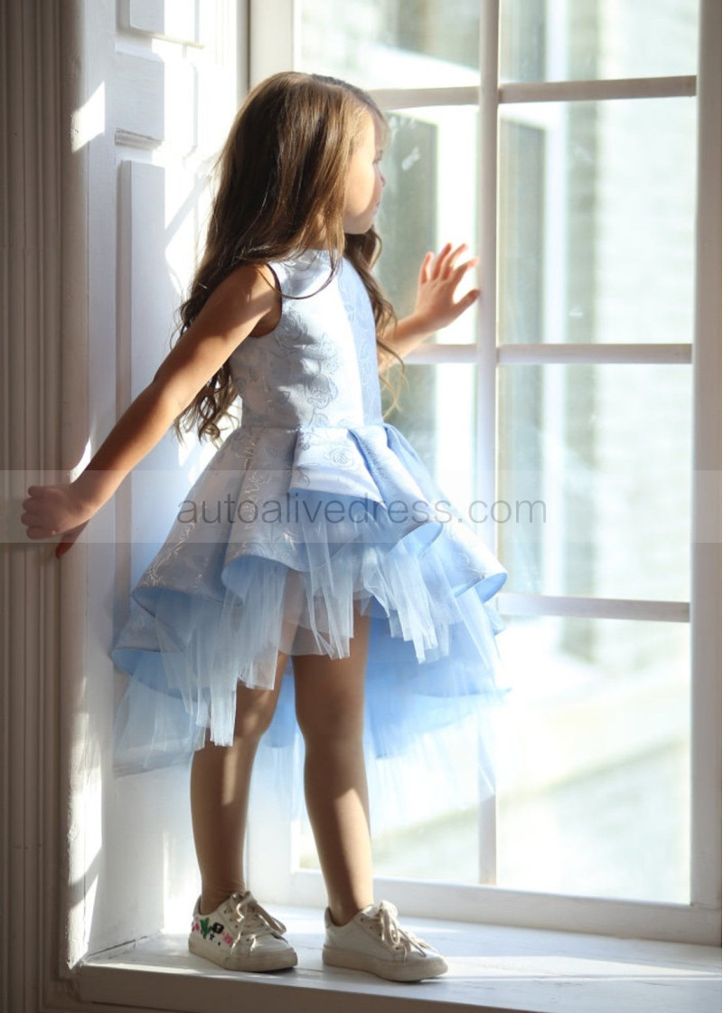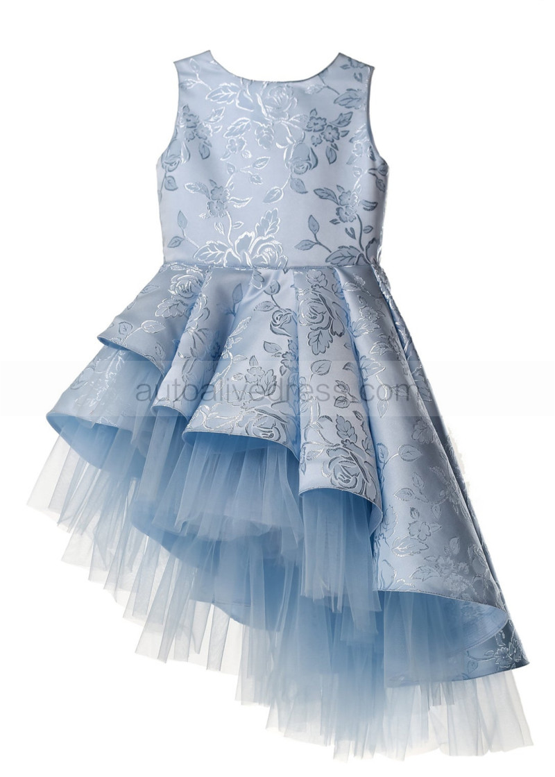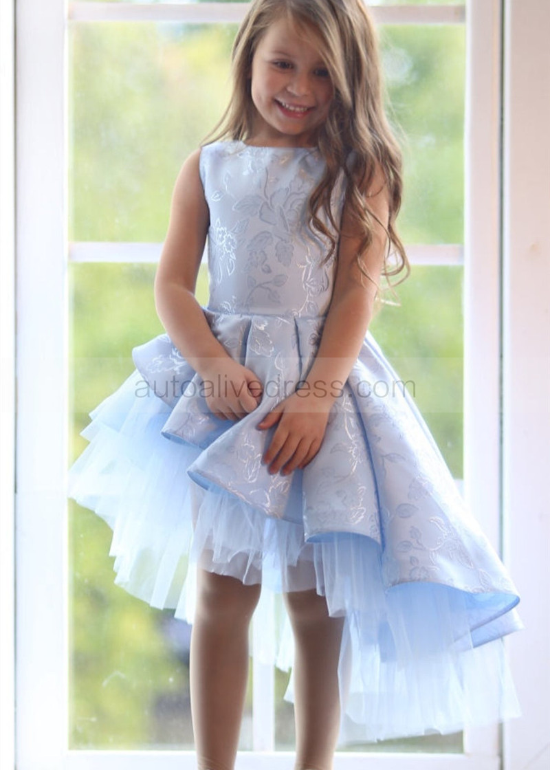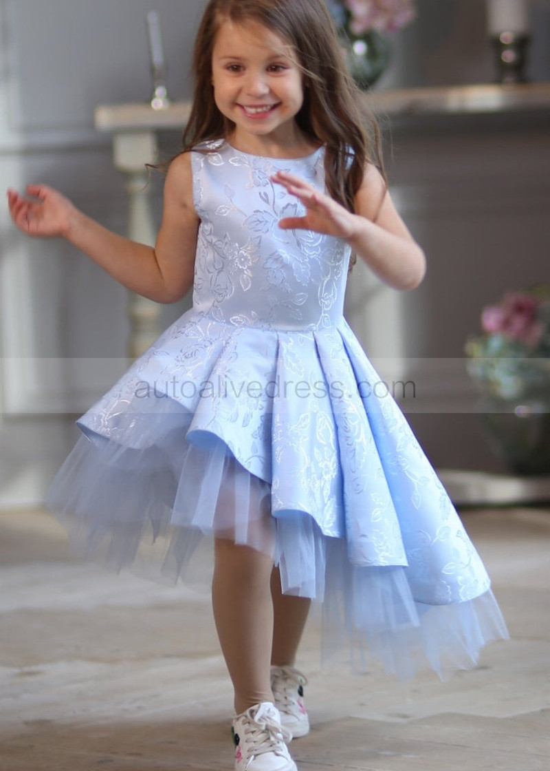 Light Blue Jacquard Asymmetrical Flower Girl Dress