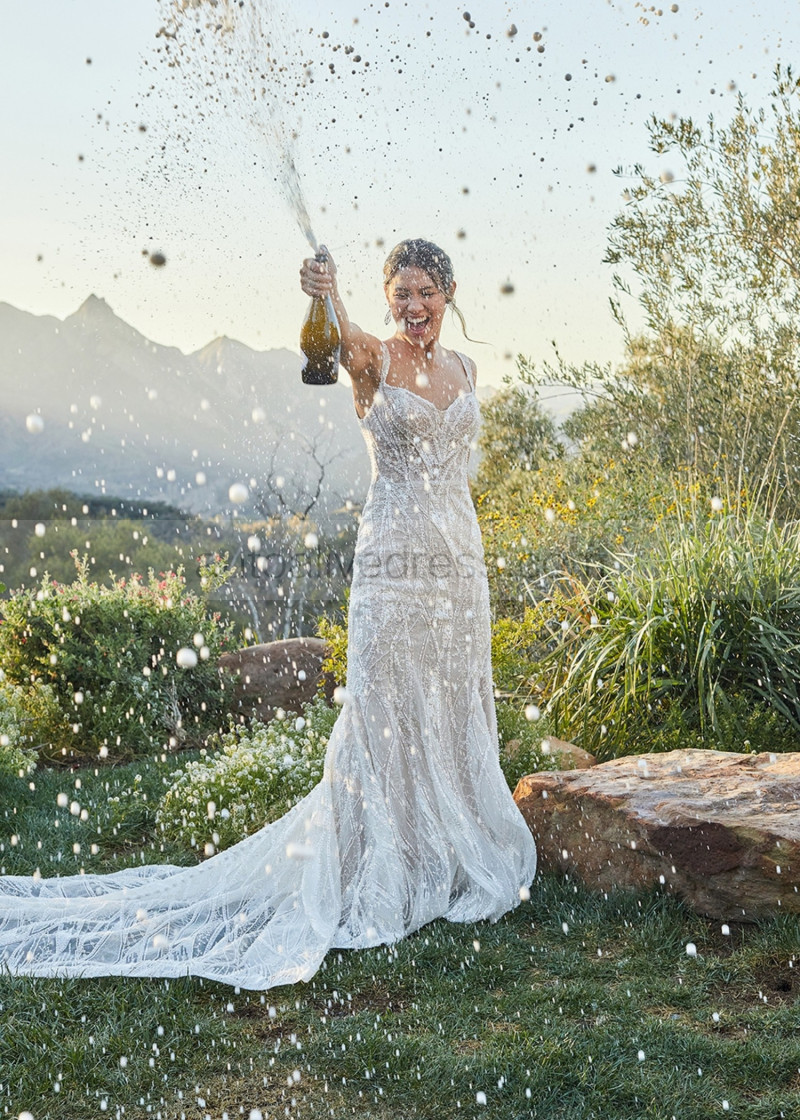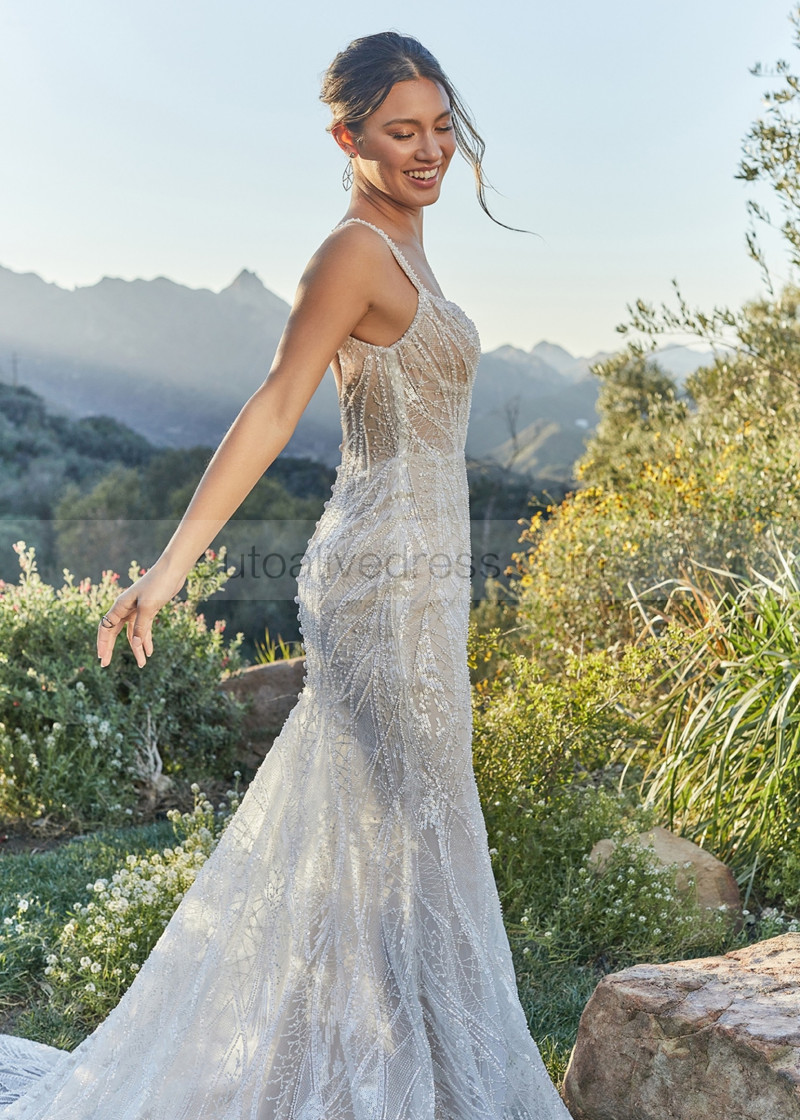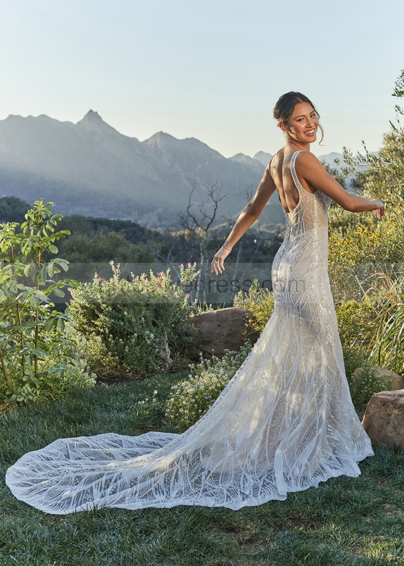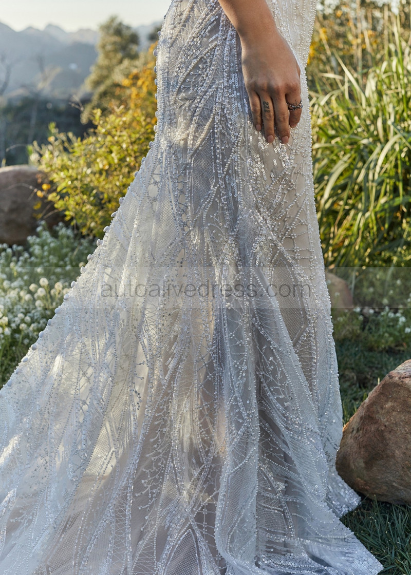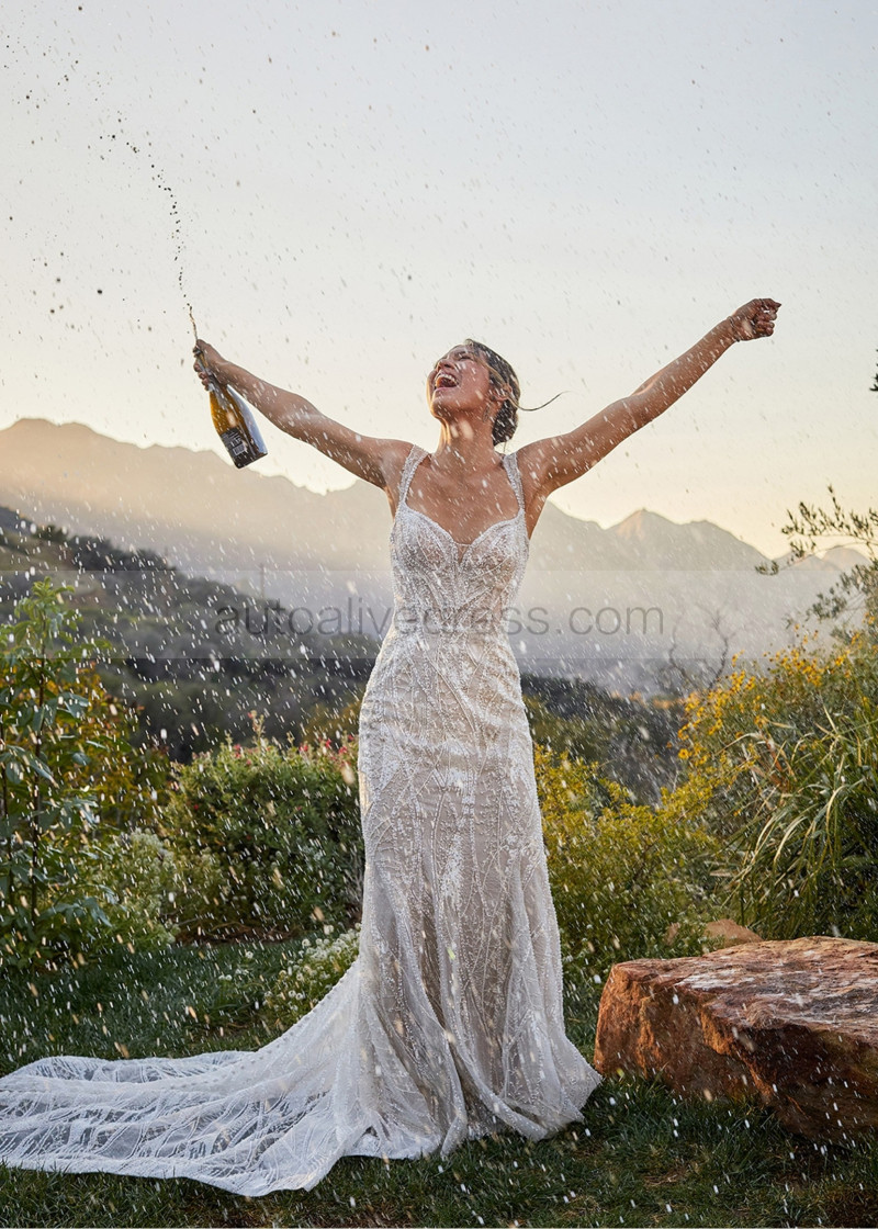 Luxury Beaded Ivory Lace Open Back Sparkling Wedding Dress
