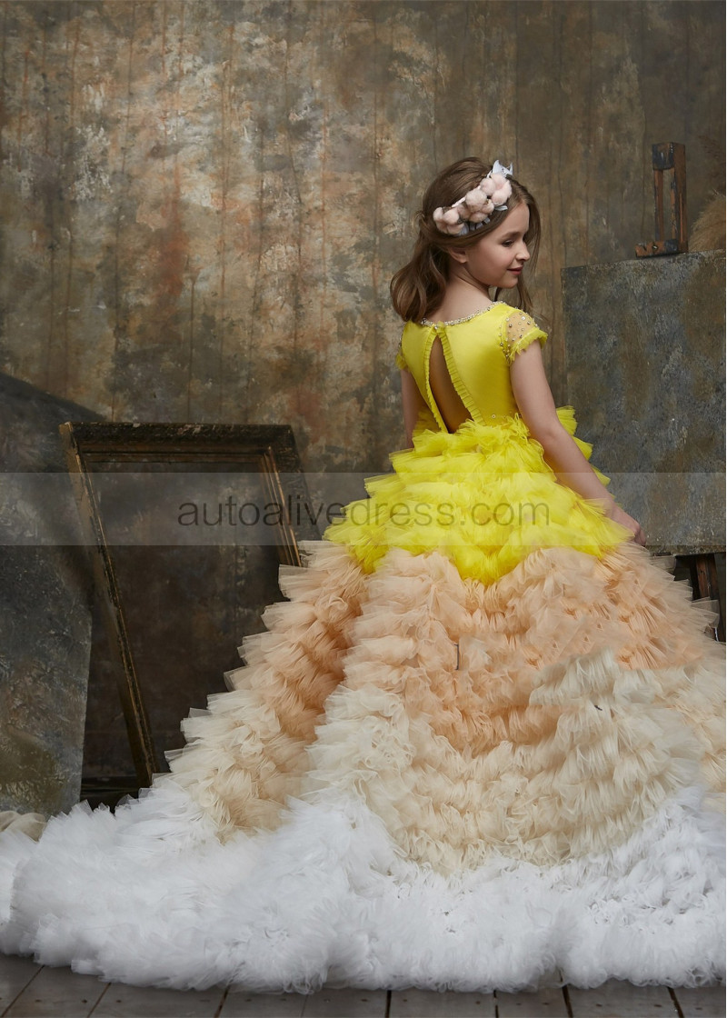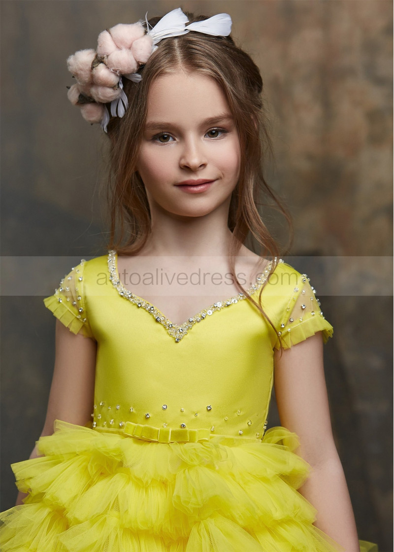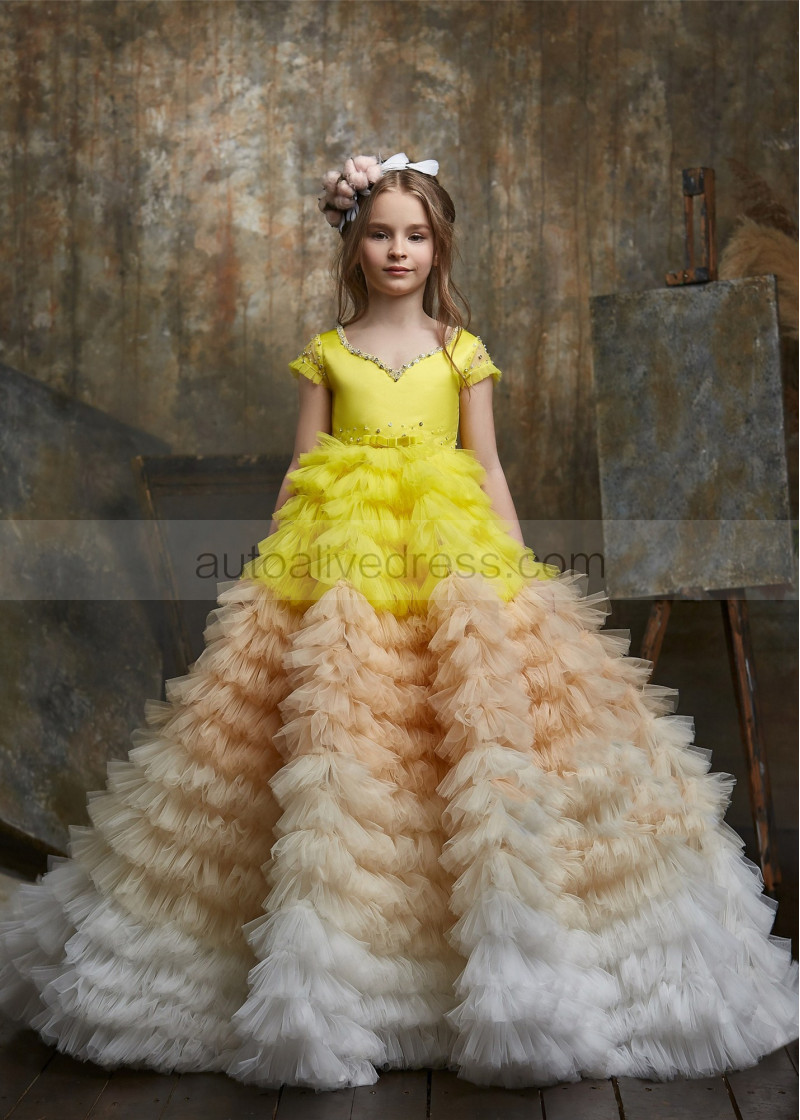Mixed Color Beaded Satin Tulle Ruffle Flower Girl Dress