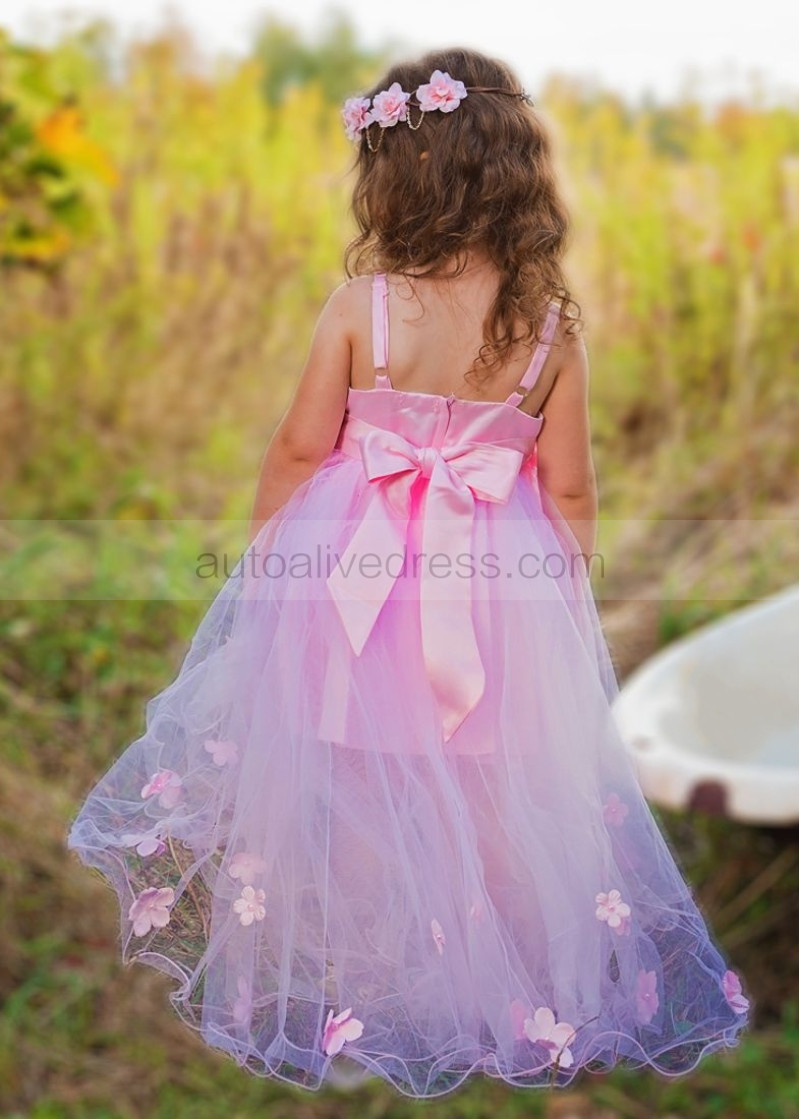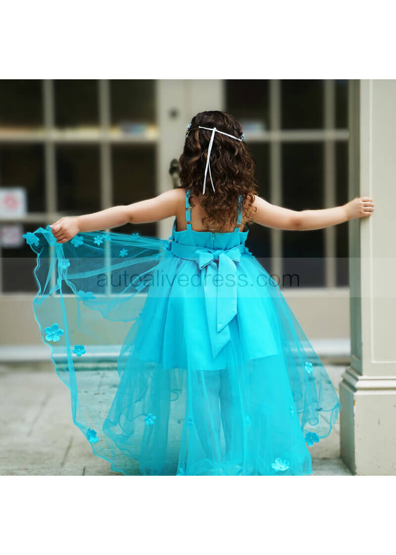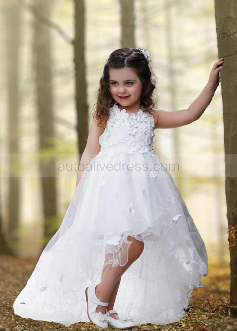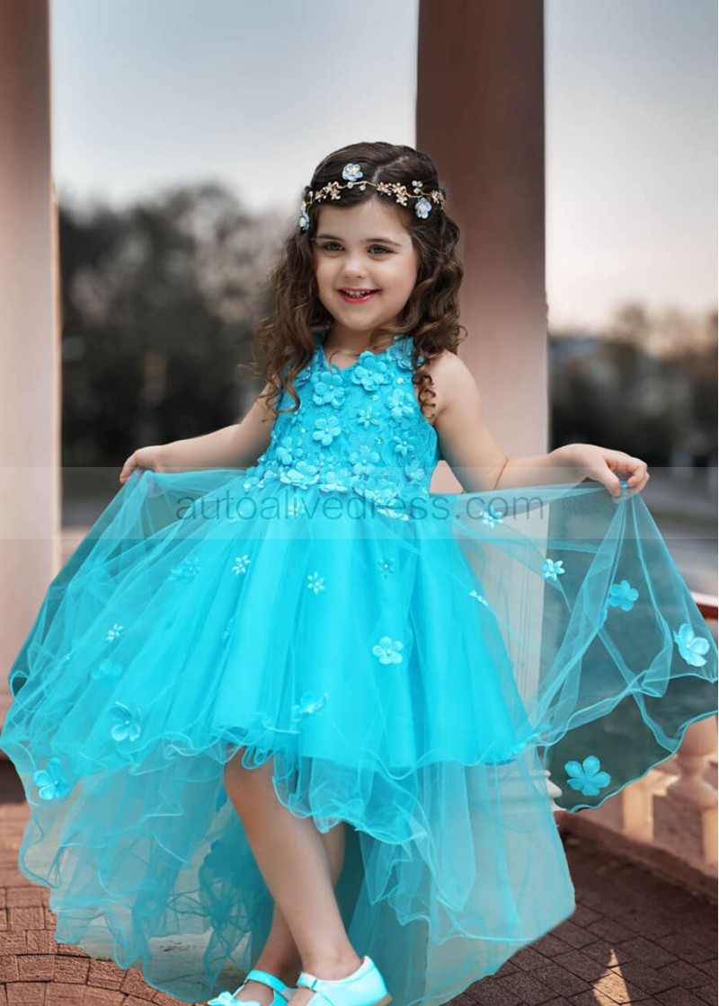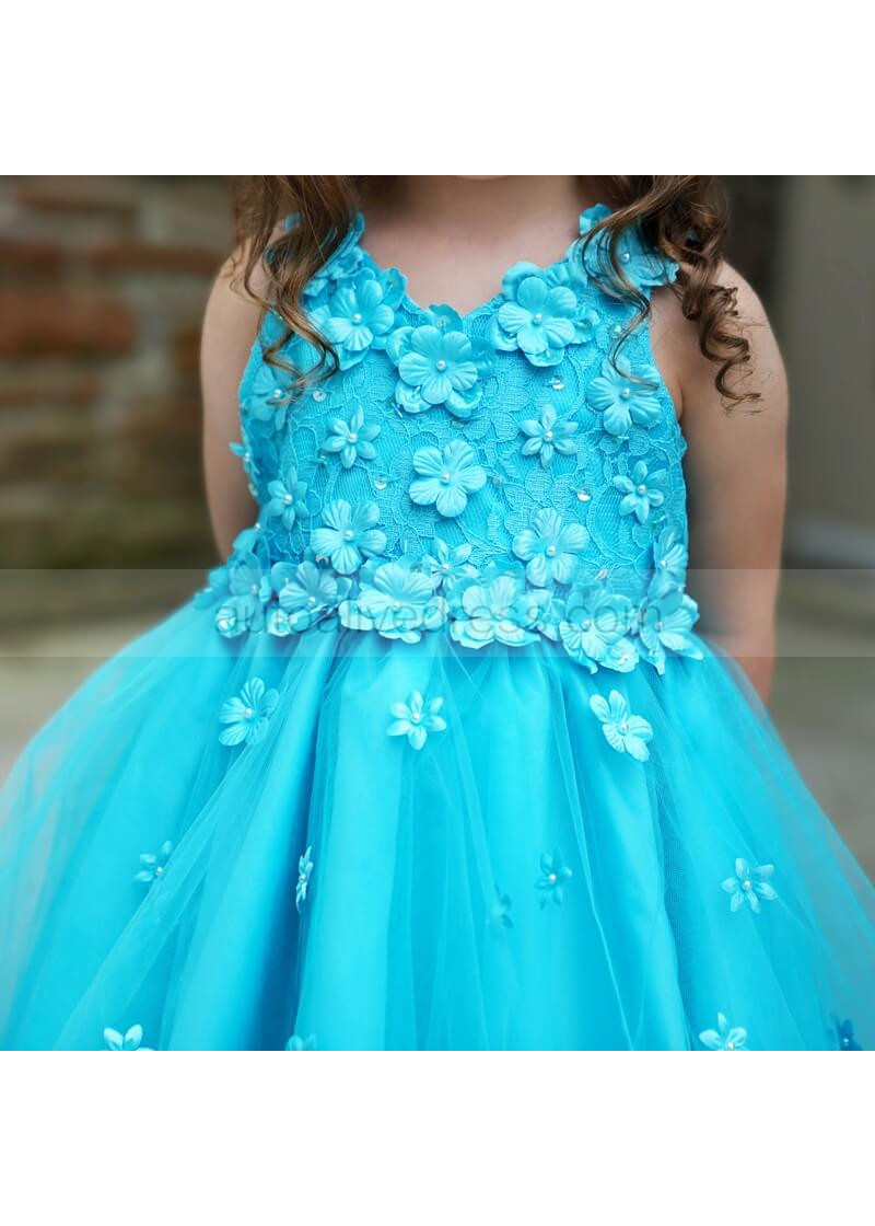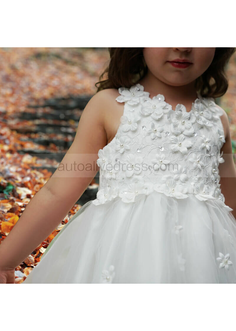 3D Flowers Blossom Tulle Curly Hem Fairy Flower Girl Dress