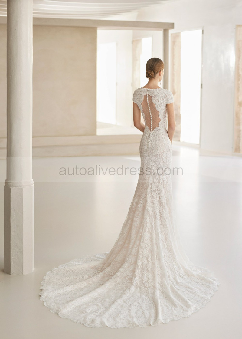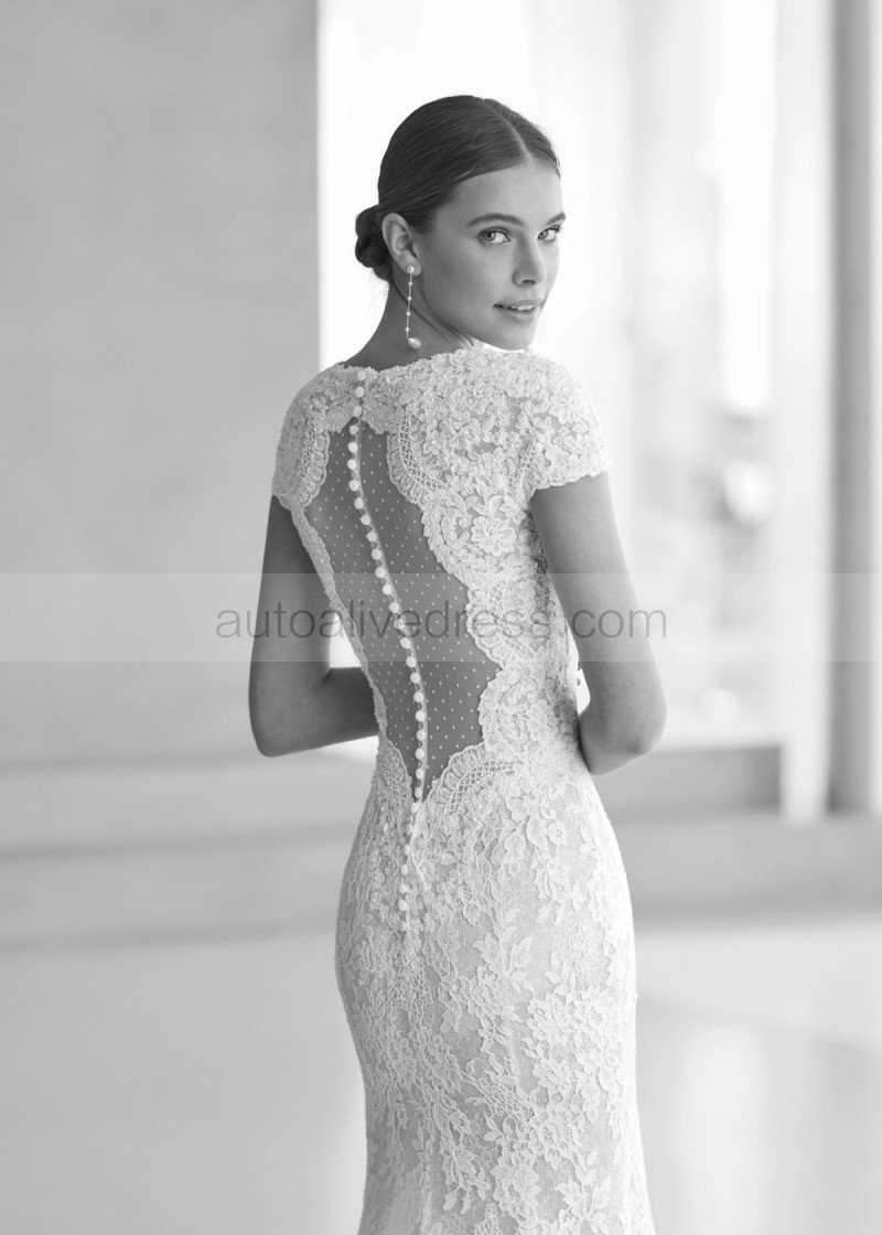 Beaded Exquisite Lace Dotted Tulle High Slit Sexy Wedding Dress