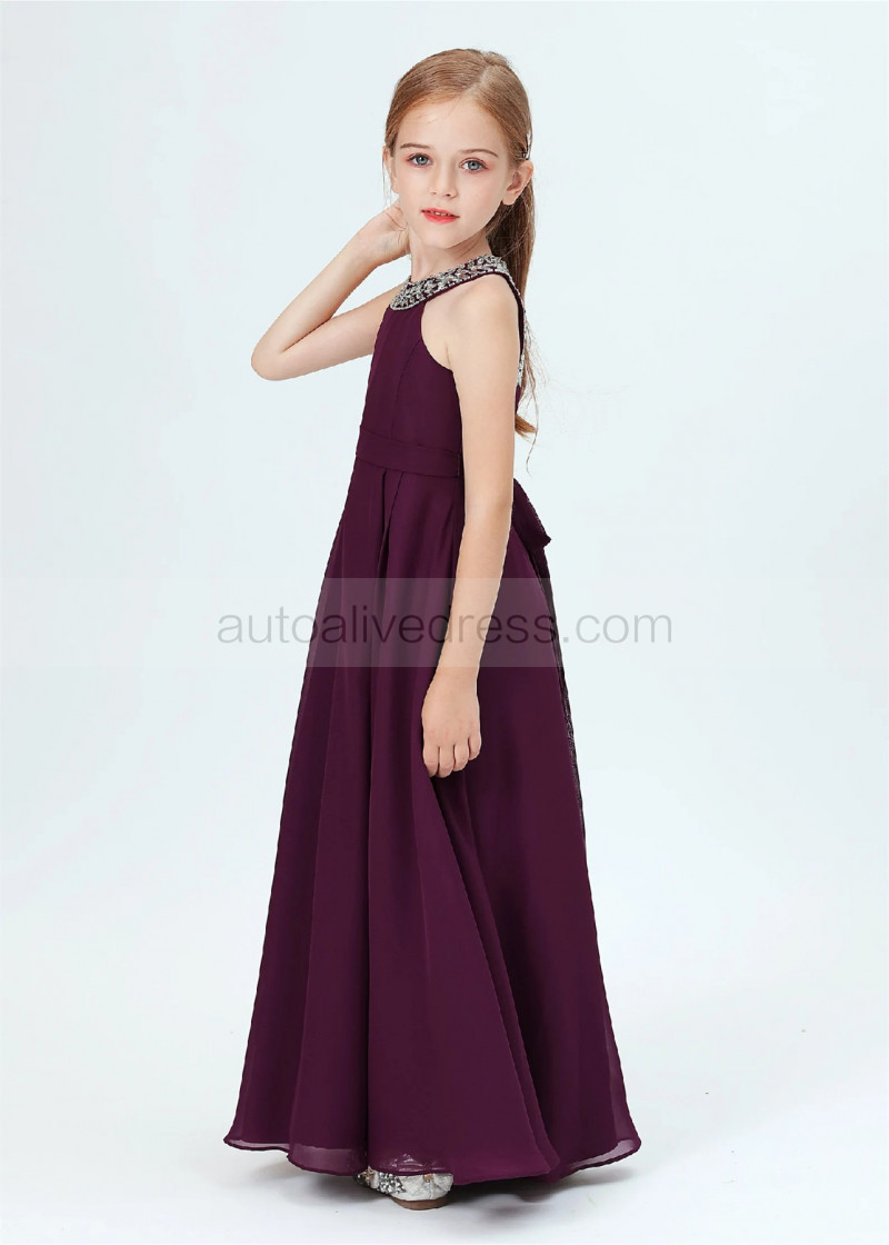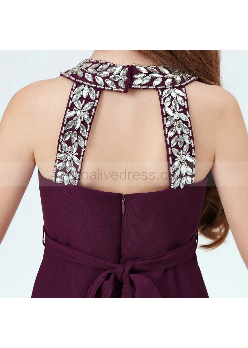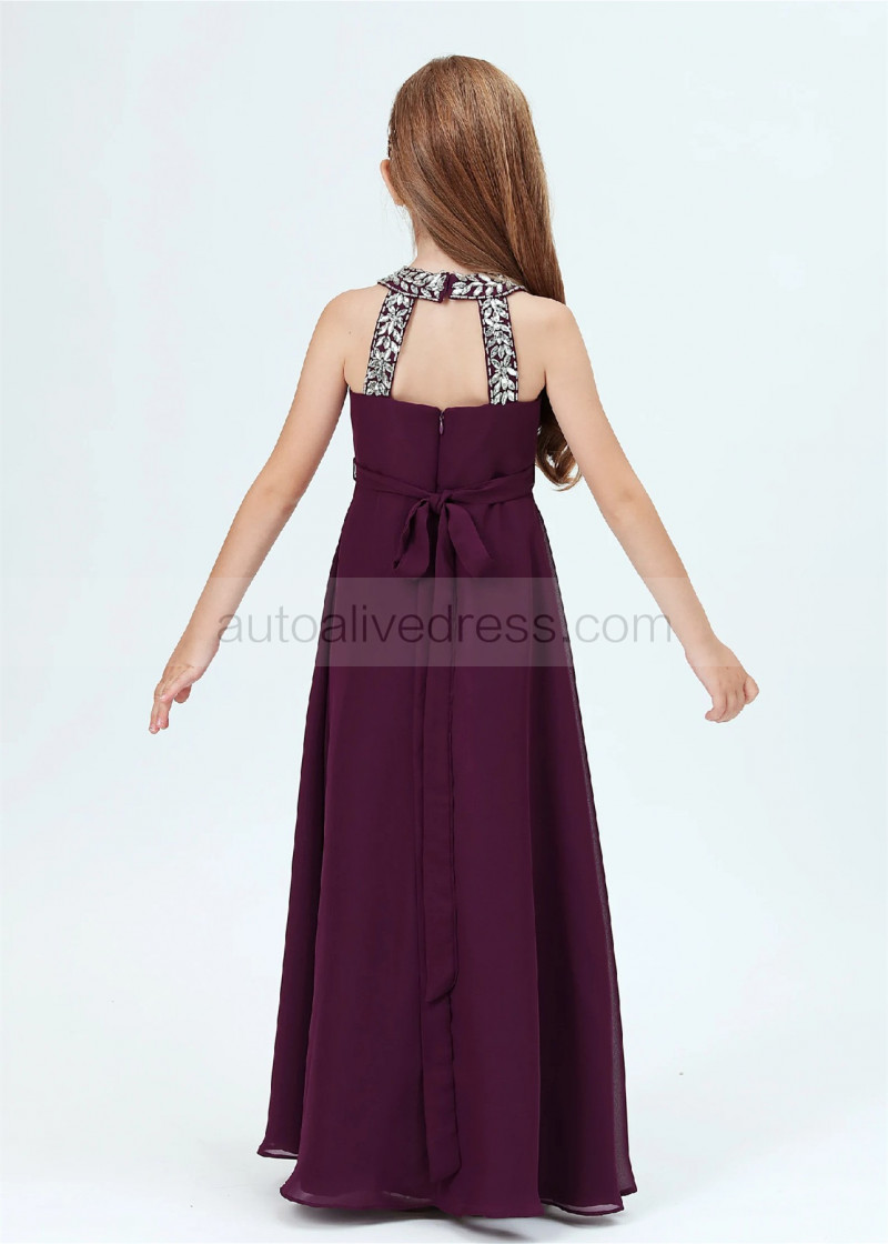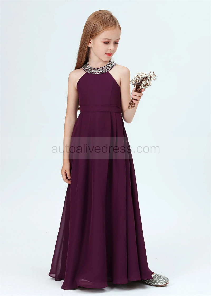 Beaded Halter Purple Chiffon Junior Bridesmaid Dress