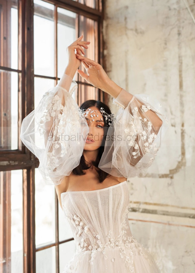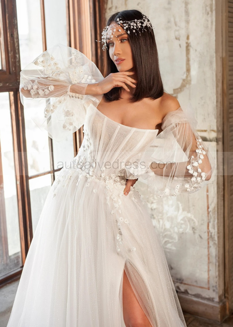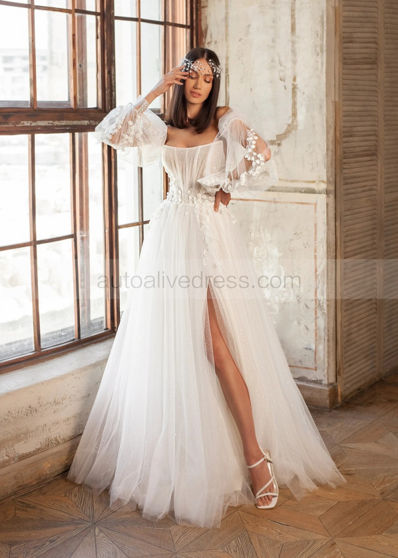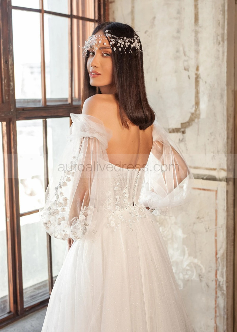 Beaded Ivory 3D Lace Glitter Tulle Lightweight Wedding Dress