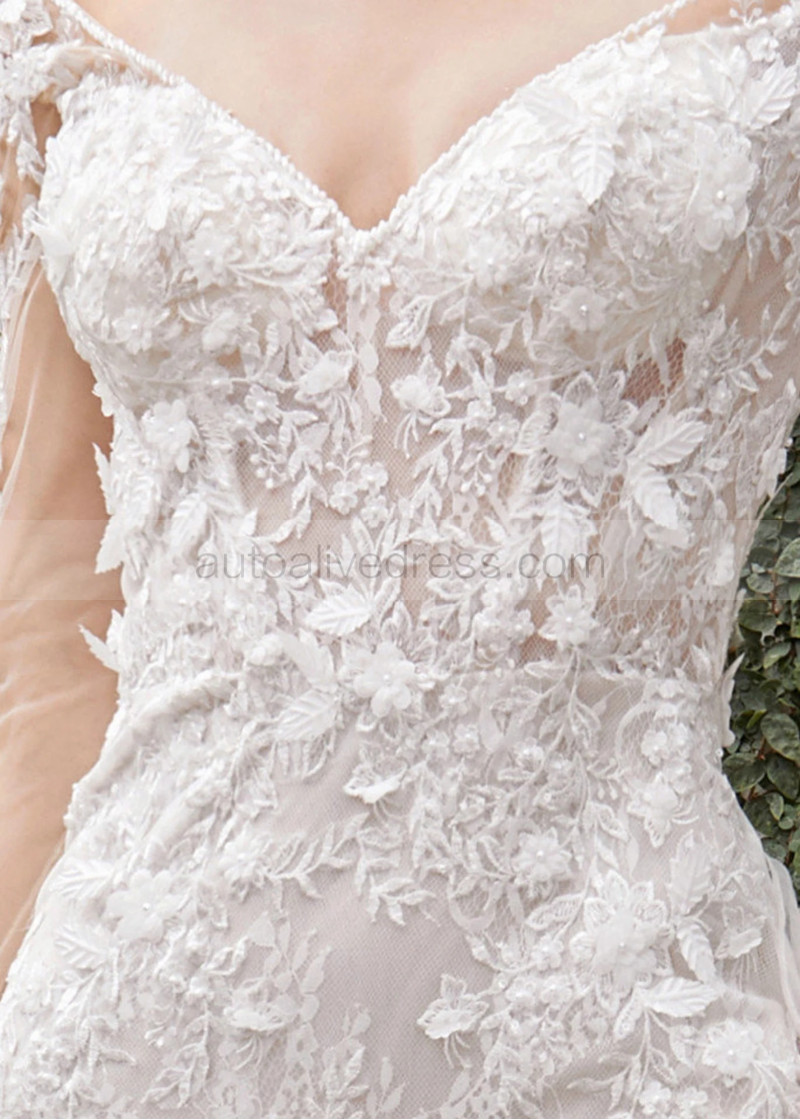 Beaded Ivory 3D Lace Tulle Amazing Wedding Dress