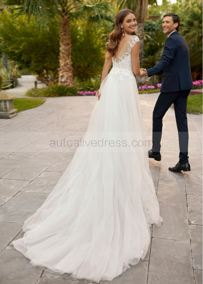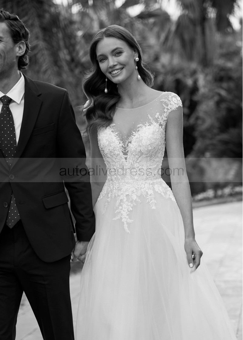 Beaded Ivory Embroidered Lace Tulle Glitter Wedding Dress