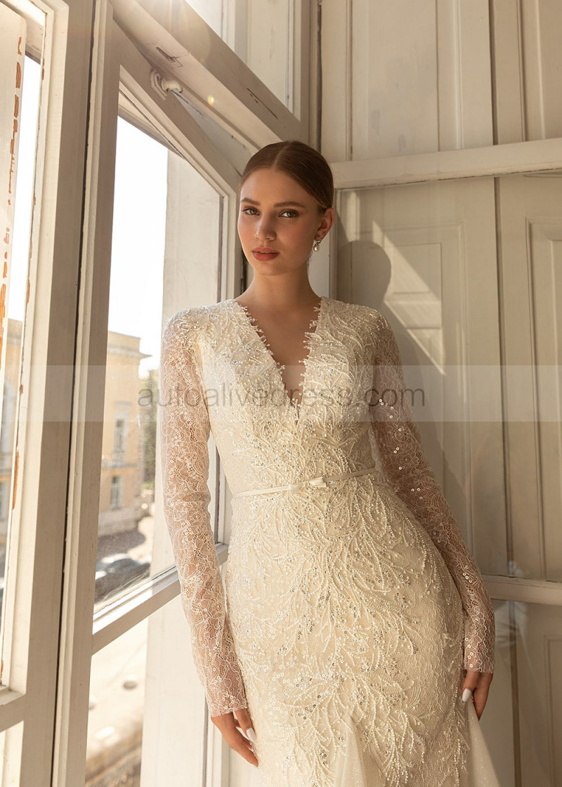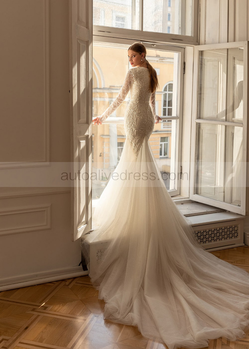 Beaded Ivory Lace Glitter Tulle Timeless Wedding Dress