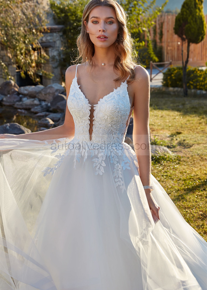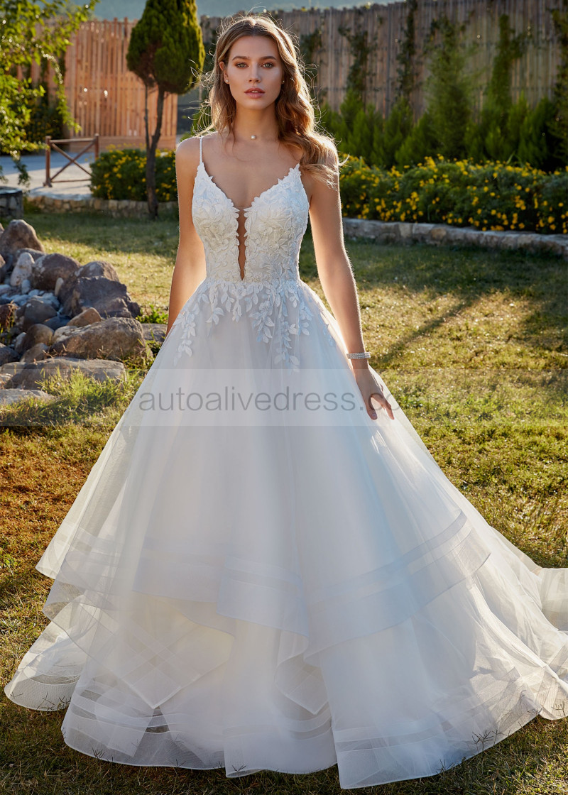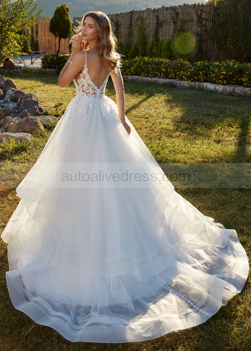 Beaded Ivory Lace Layered Tulle Fantastic Wedding Dress