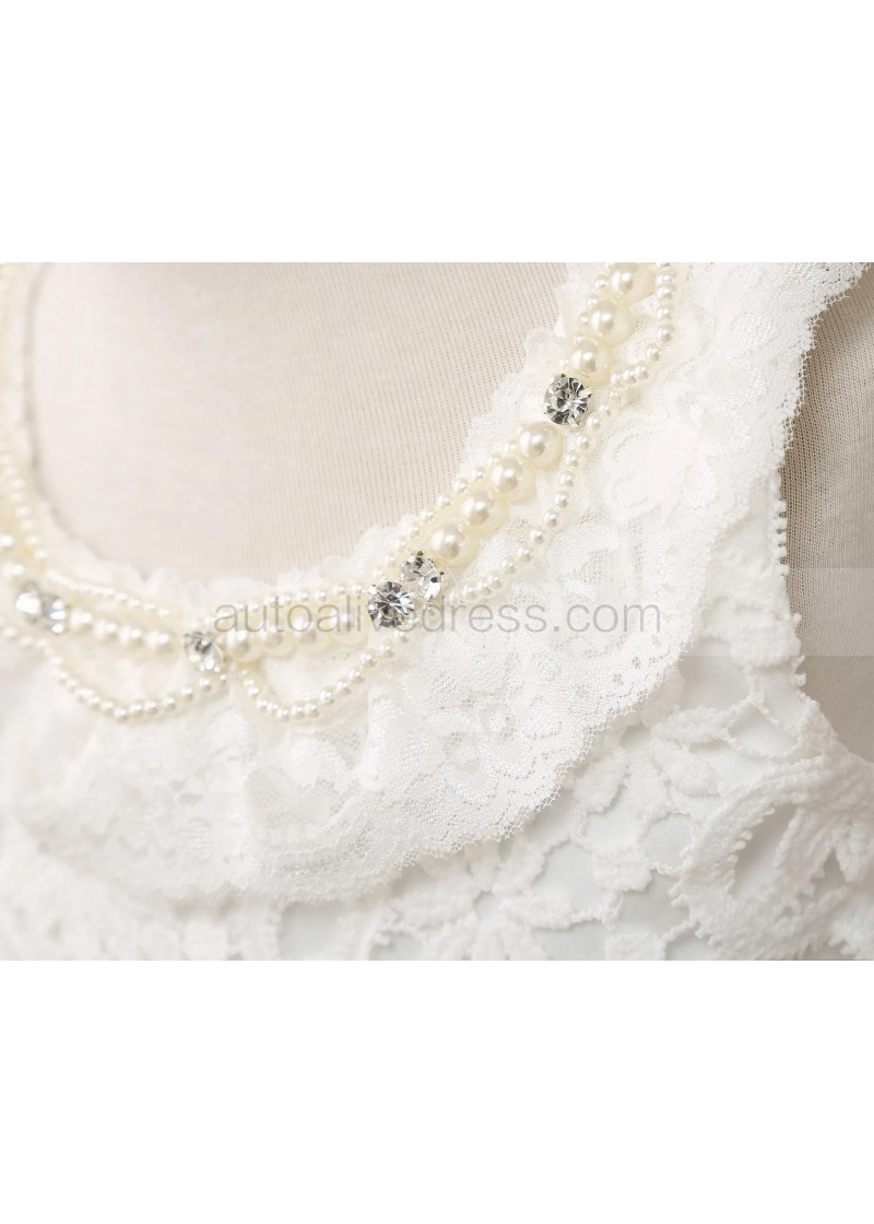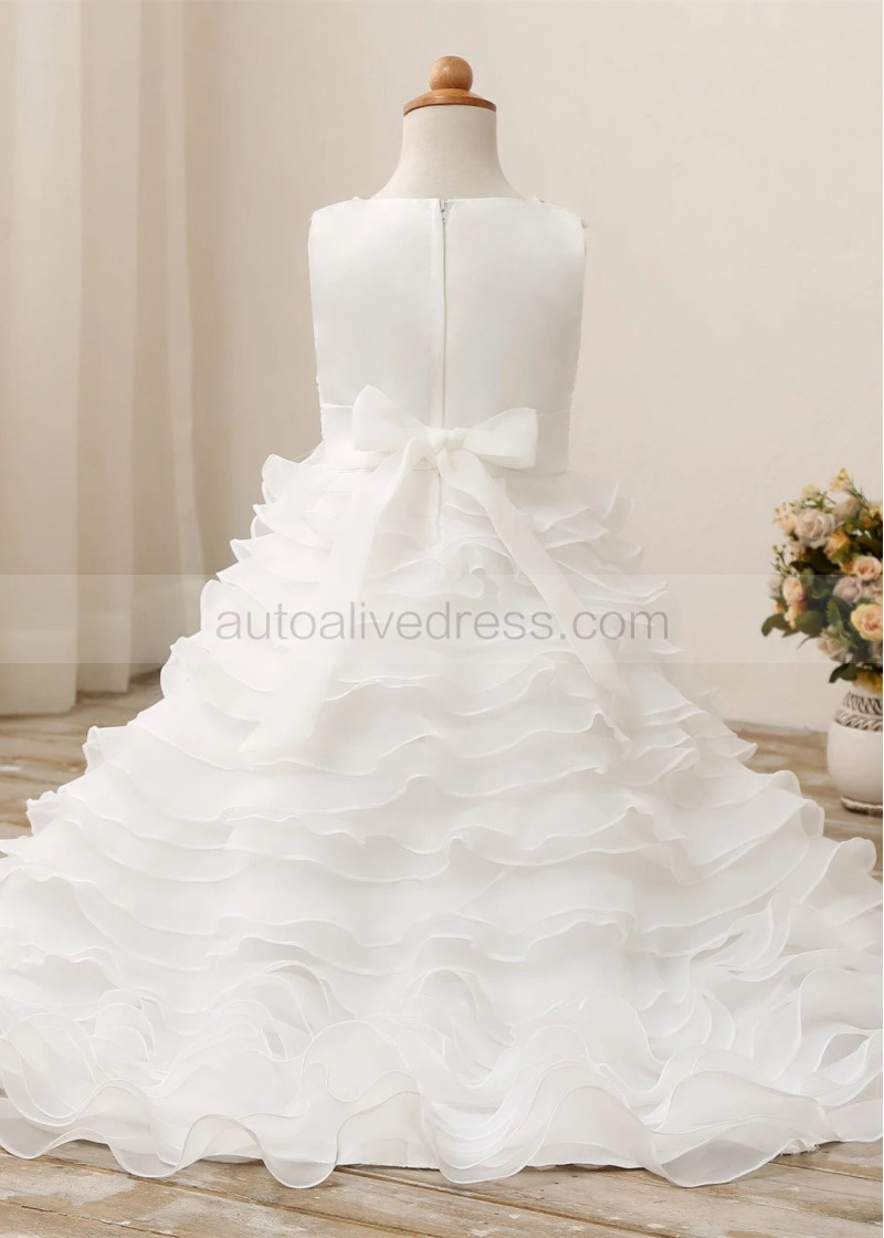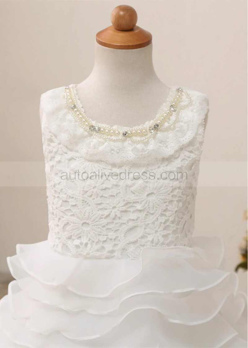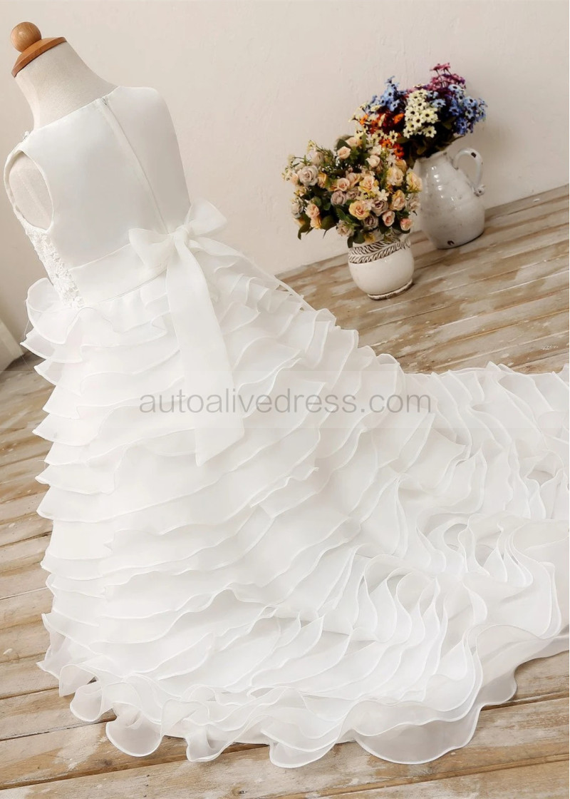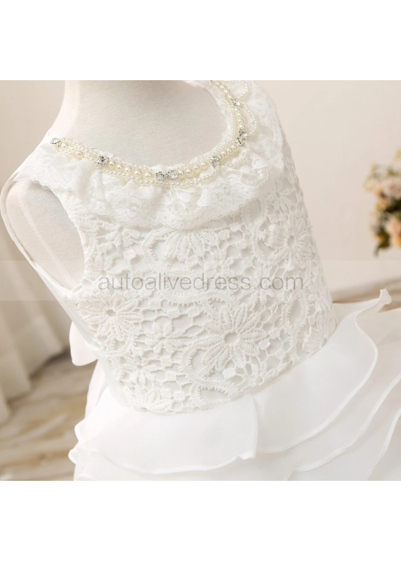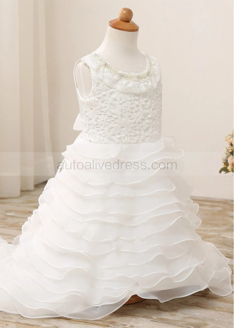 Beaded Ivory Lace Organza Tiered Flower Girl Dress