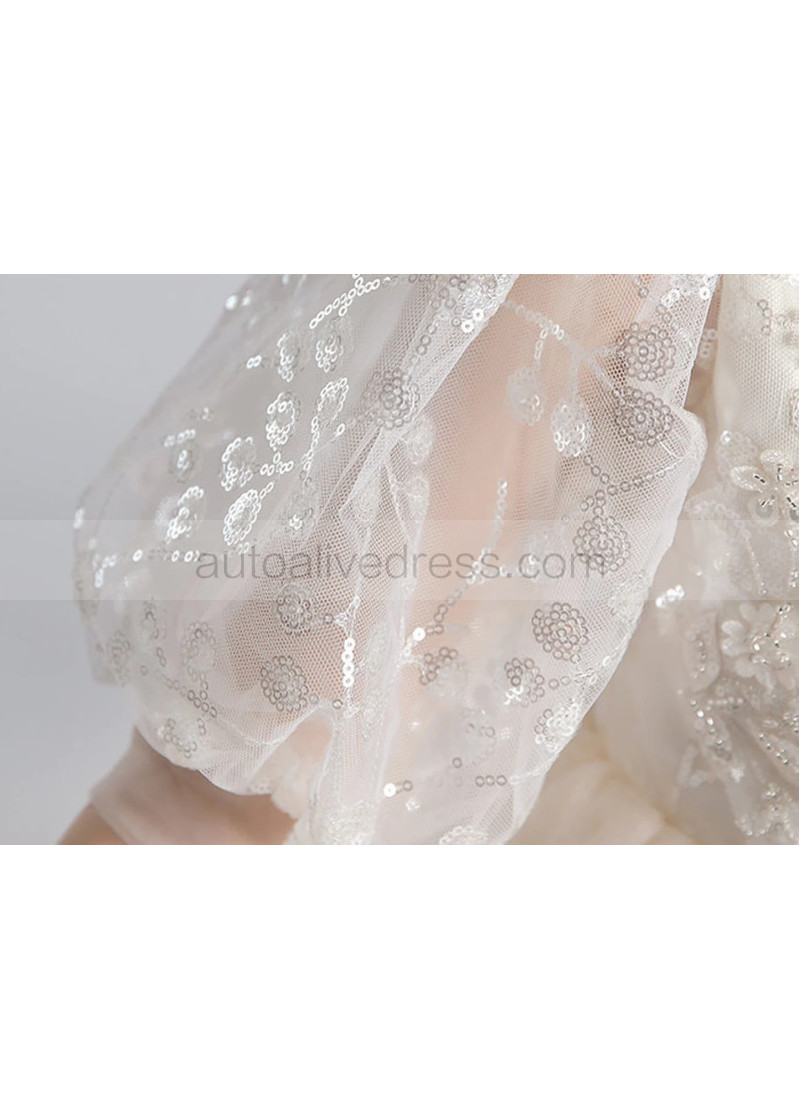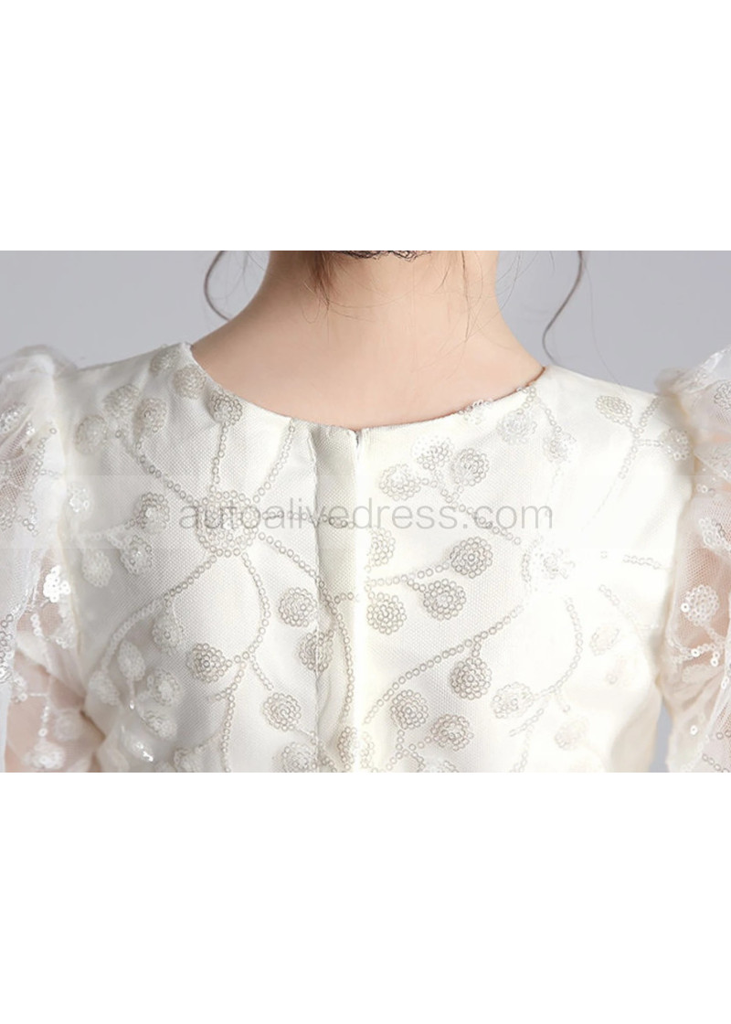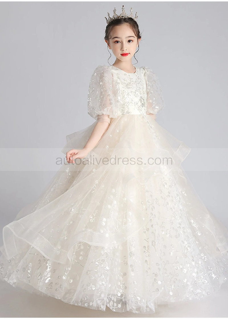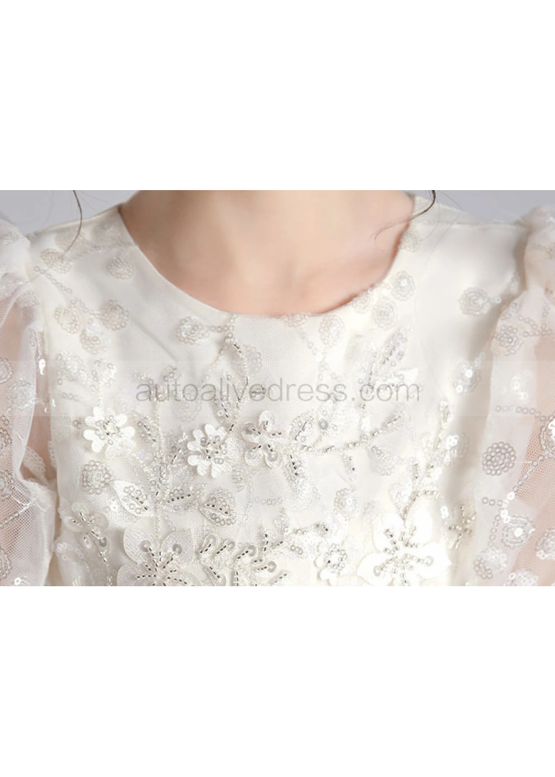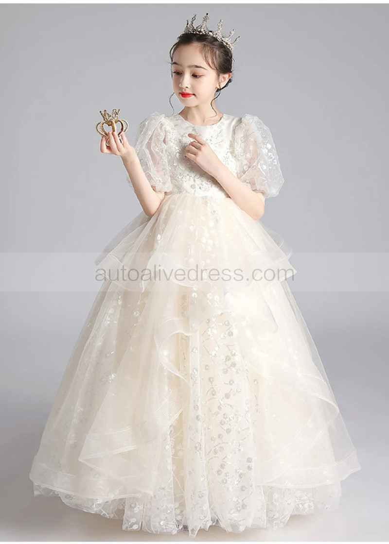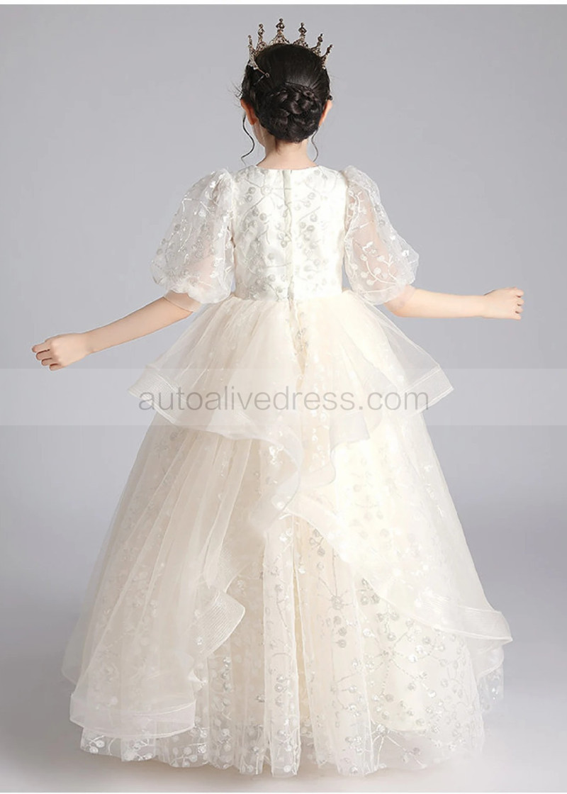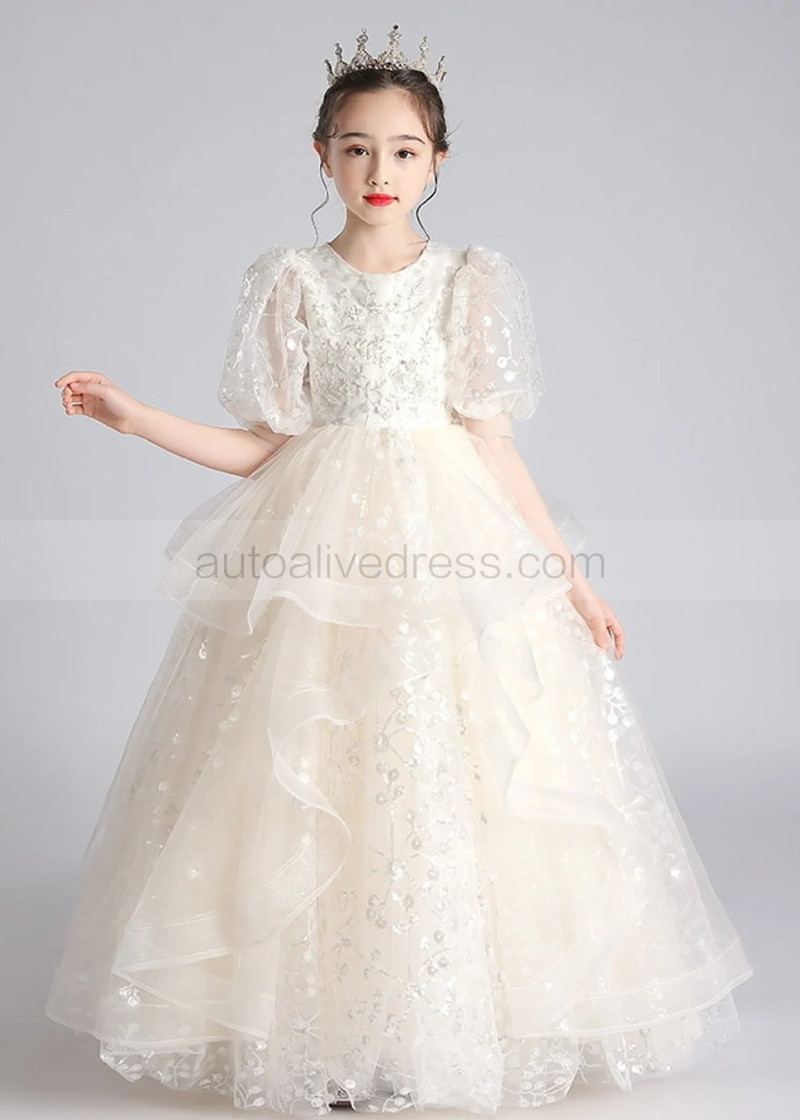 Beaded Ivory Lace Tulle Chic Flower Girl Dress