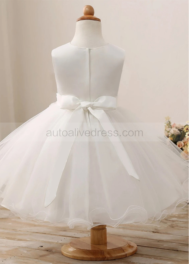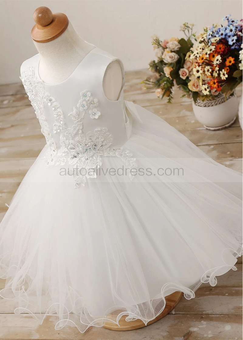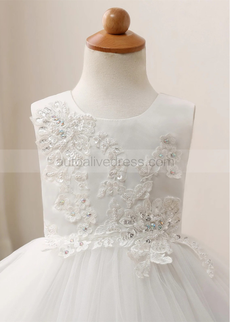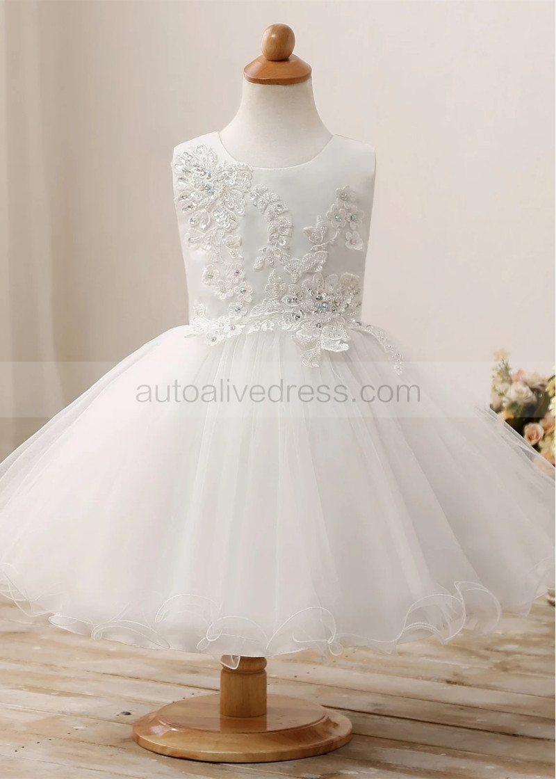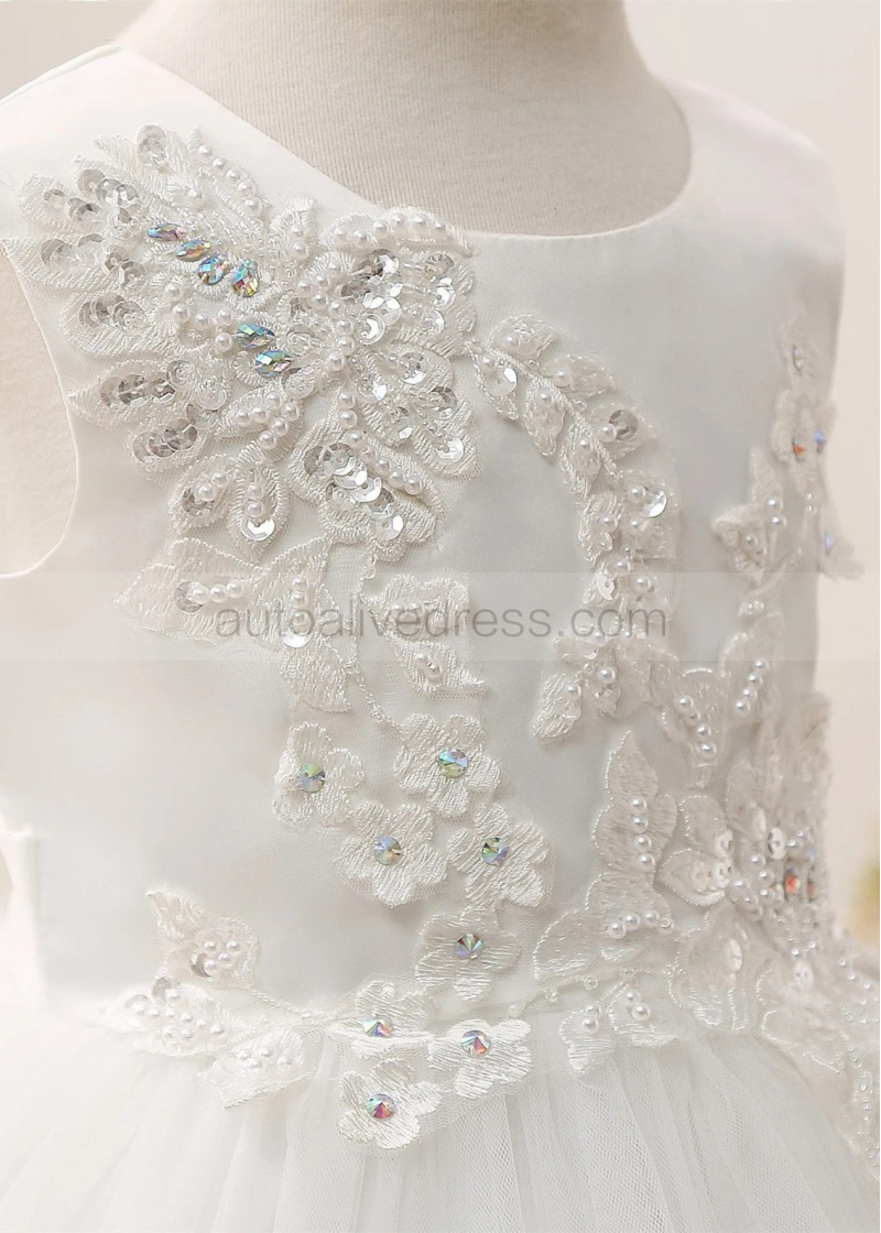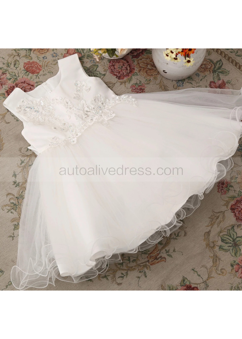 Beaded Ivory Lace Tulle Curly Hem Flower Girl Dress