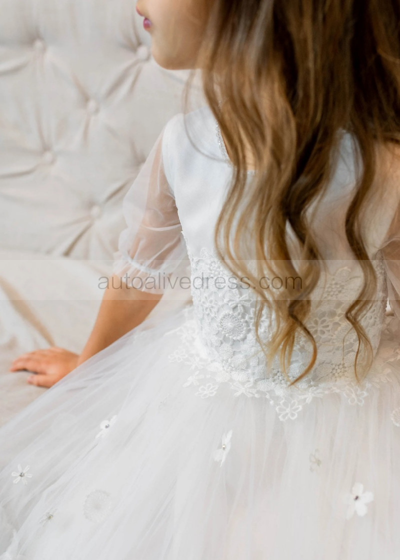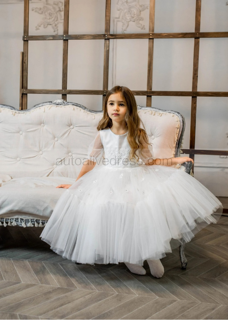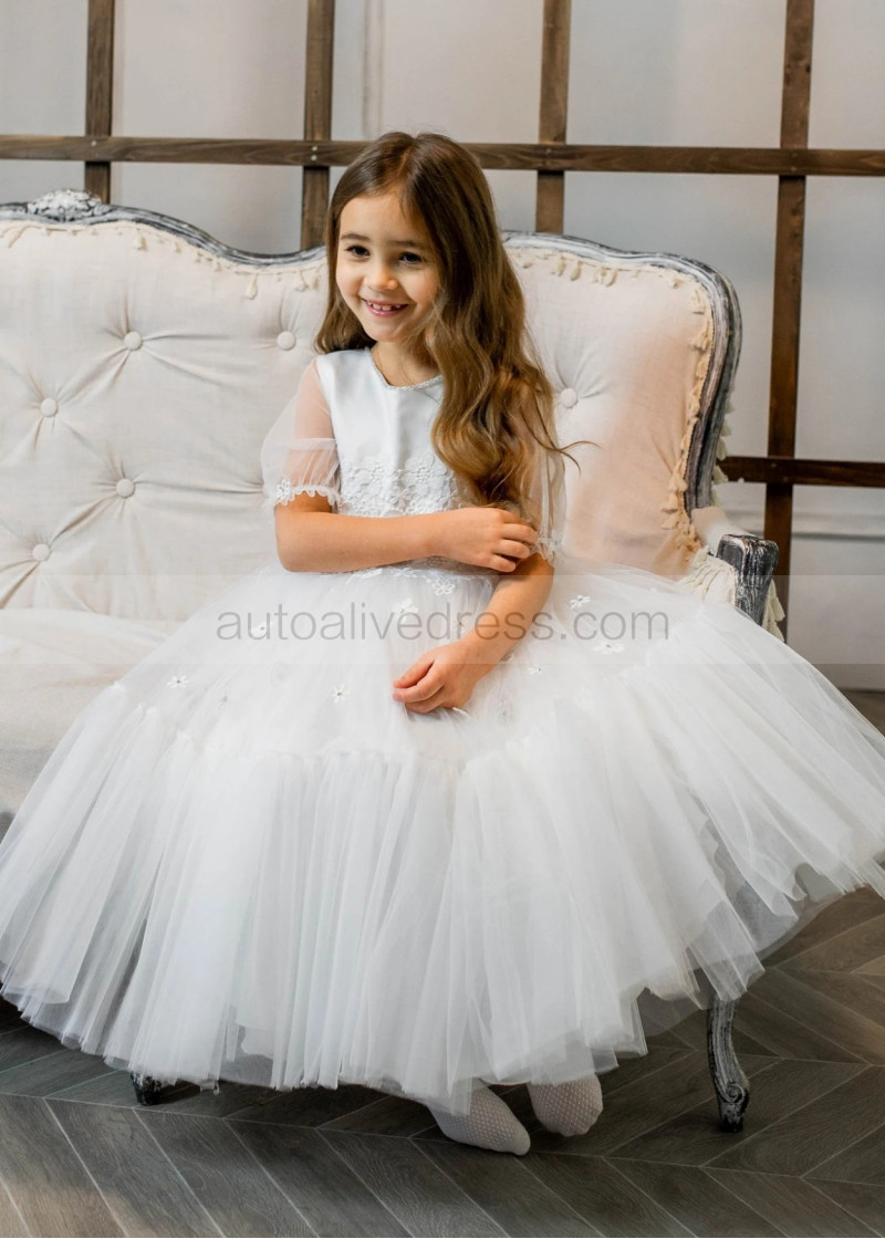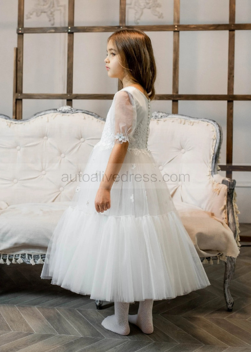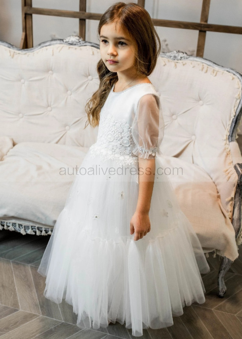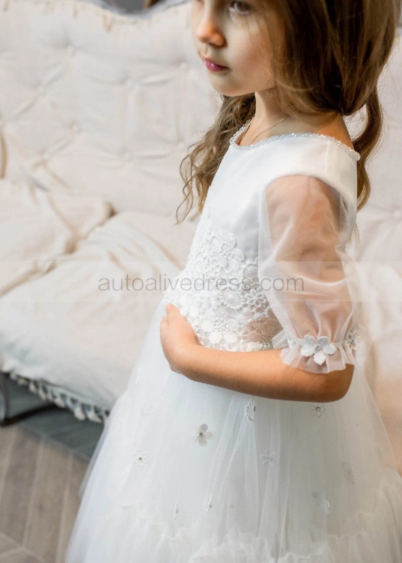 Beaded Ivory Lace Tulle Fairy Flower Girl Dress