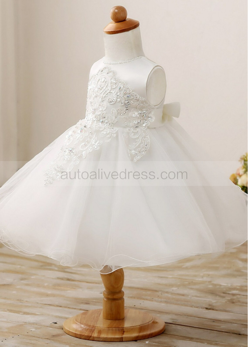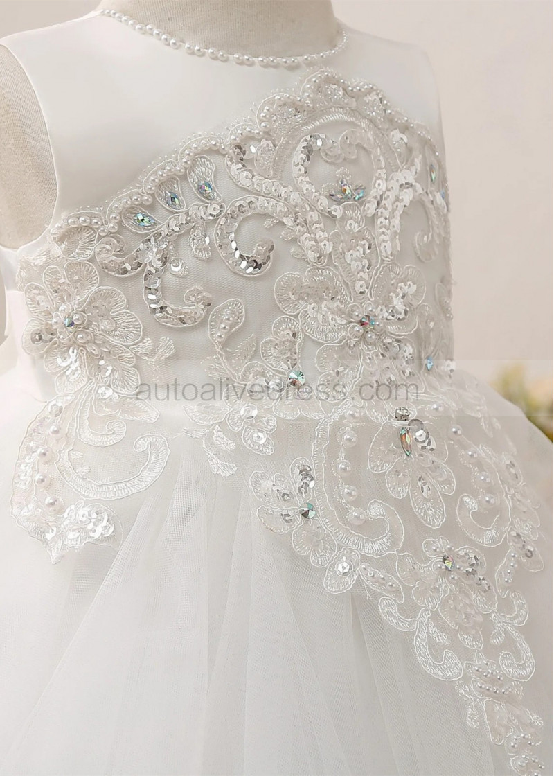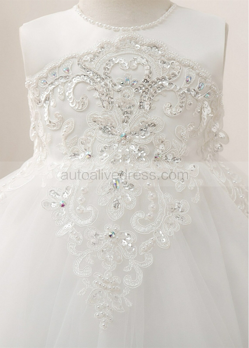 Beaded Ivory Lace Tulle Flower Girl Dress Special Occasion Dress