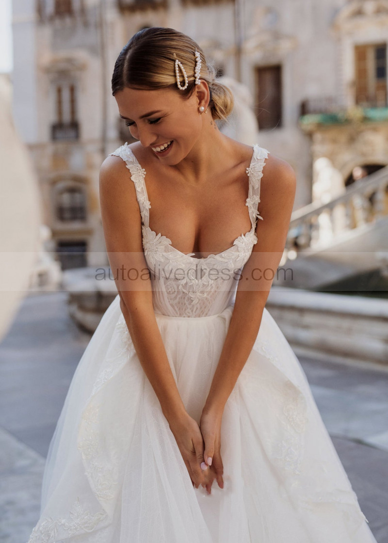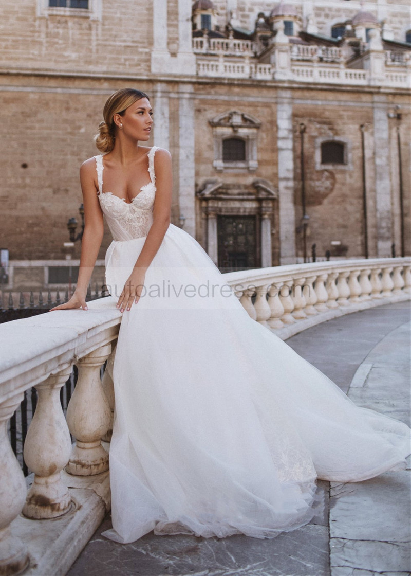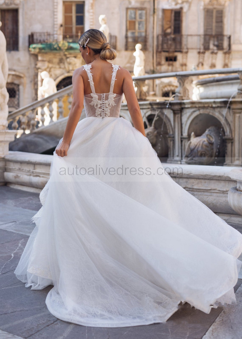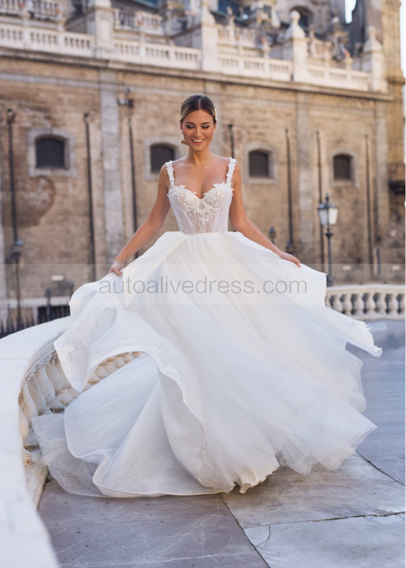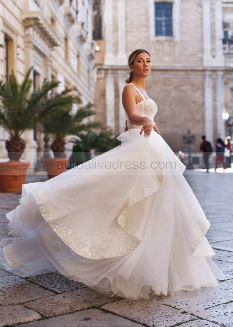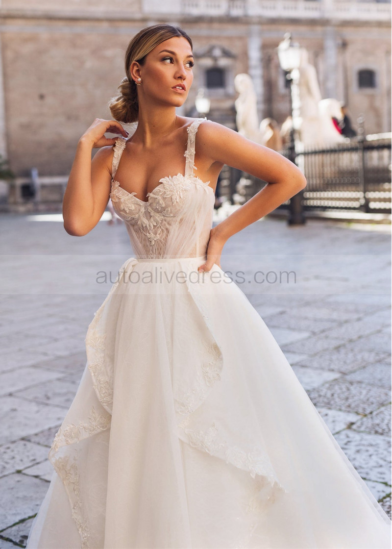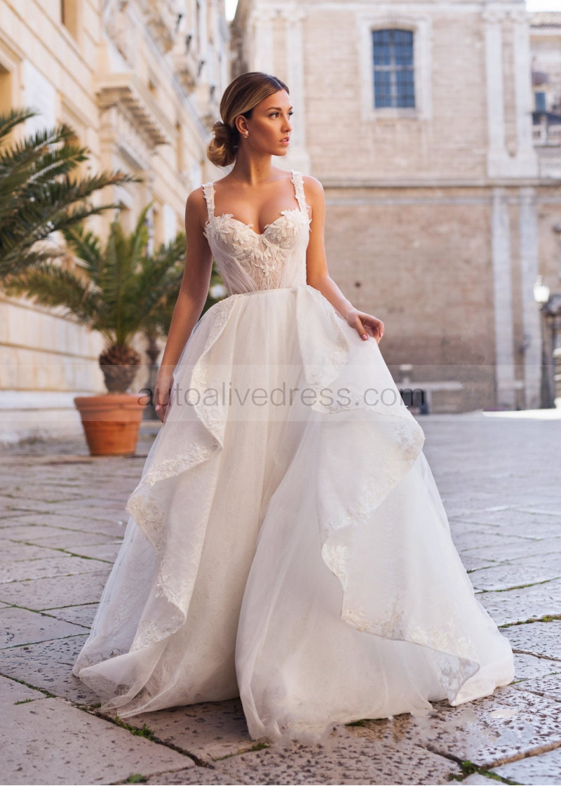 Beaded Ivory Lace Tulle Ruffle Wedding Dress