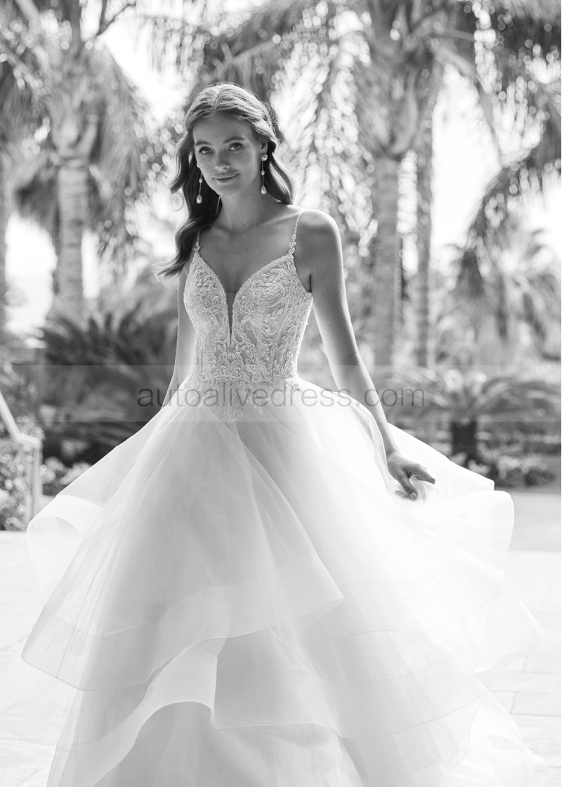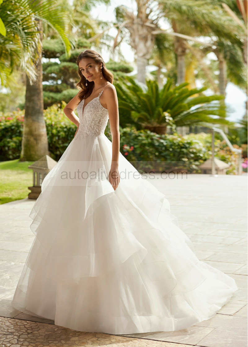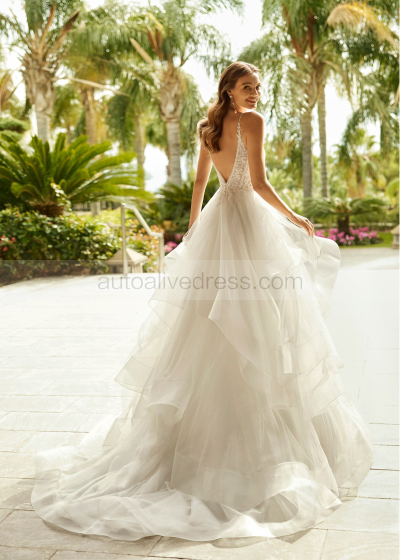 Beaded Ivory Lace Tulle Ruffled Princess Wedding Dress