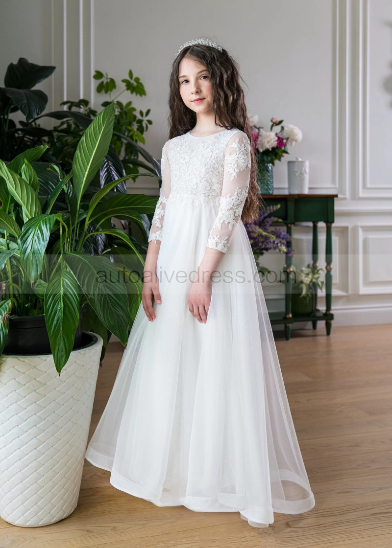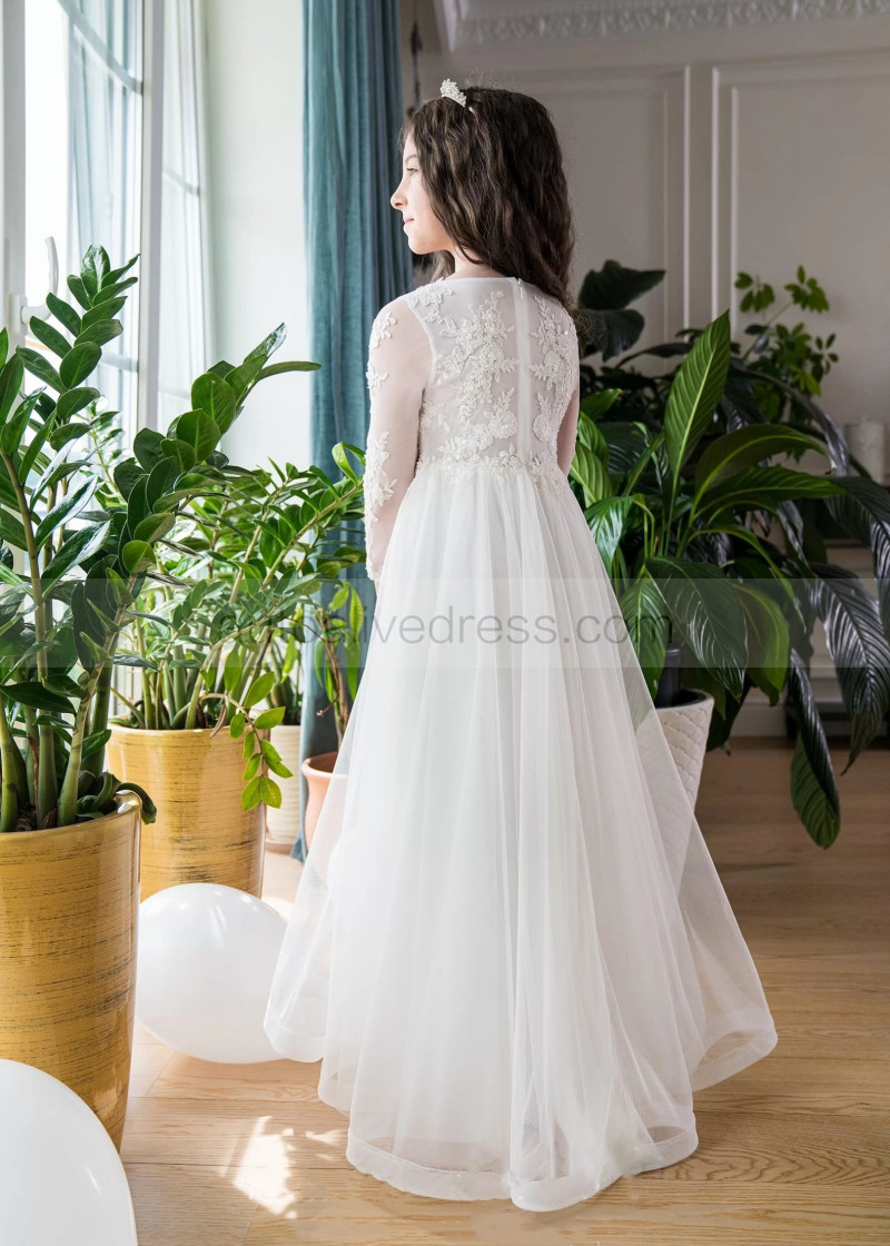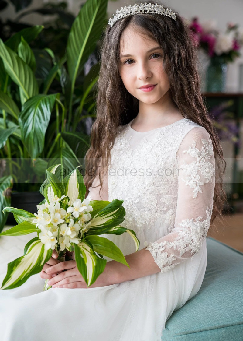Beaded Ivory Lace Tulle Simple Flower Girl Dress