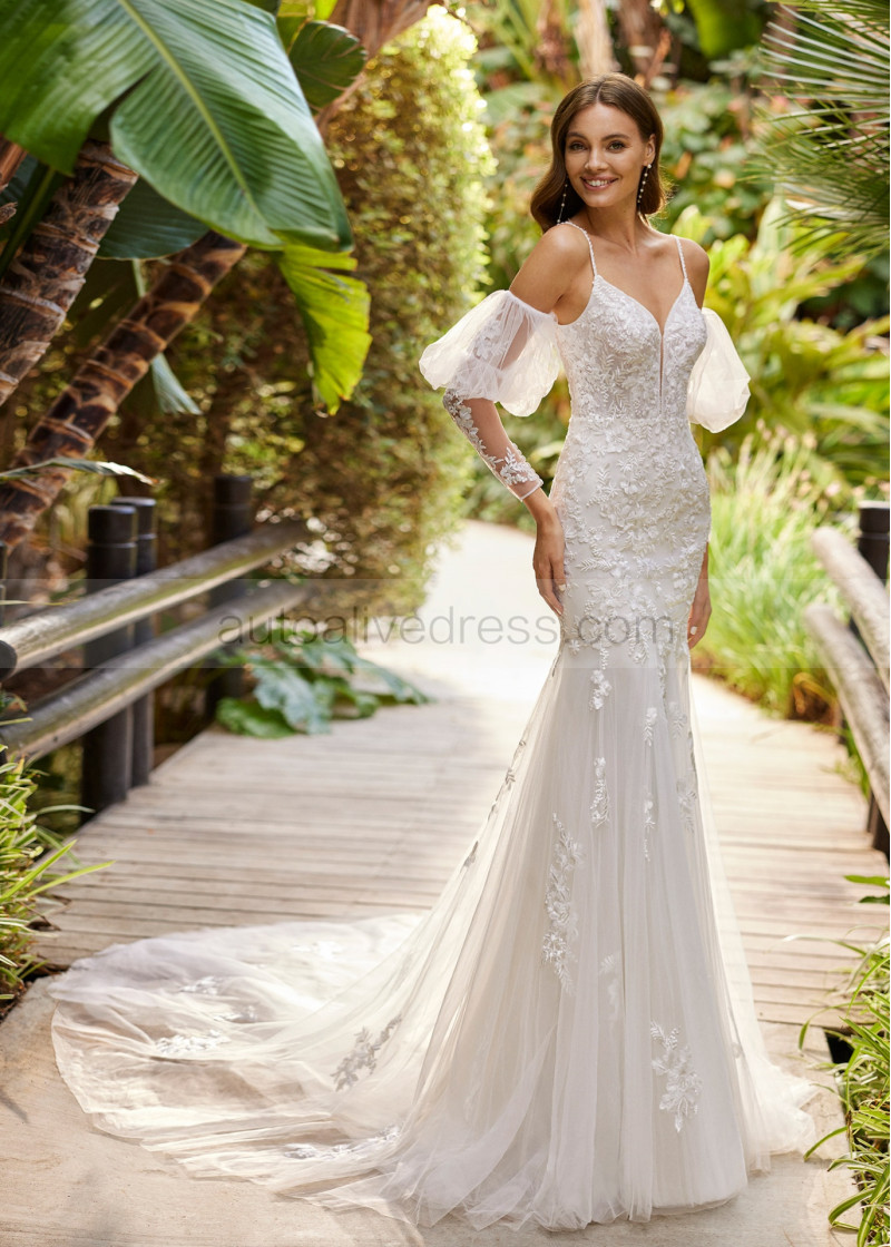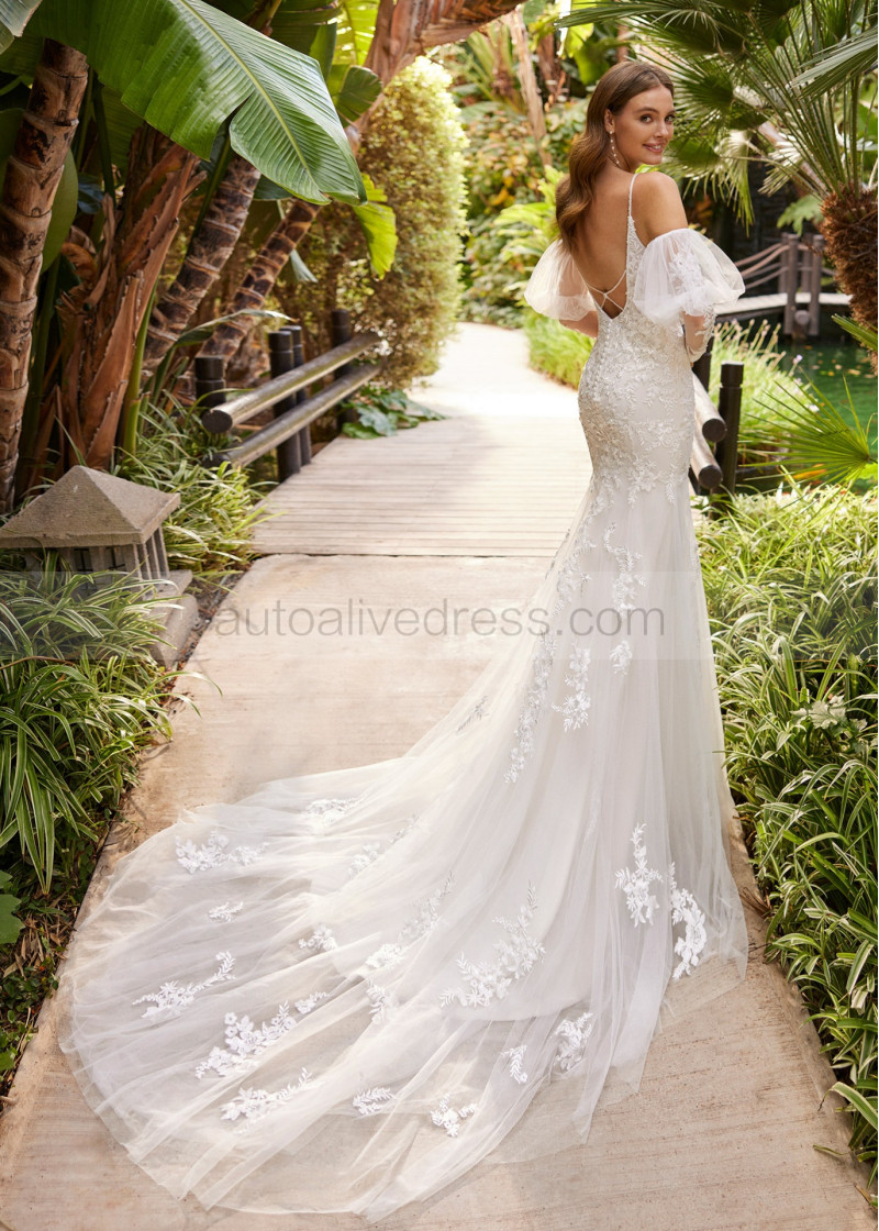 Beaded Ivory Lace Tulle Timeless Beautiful Wedding Dress
