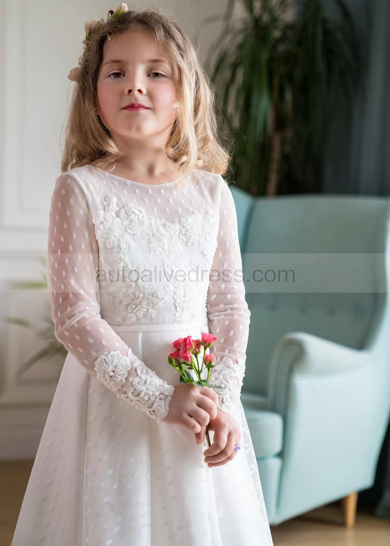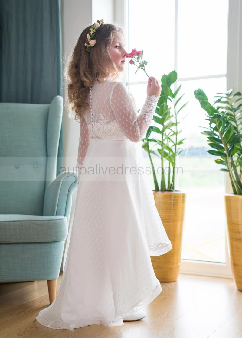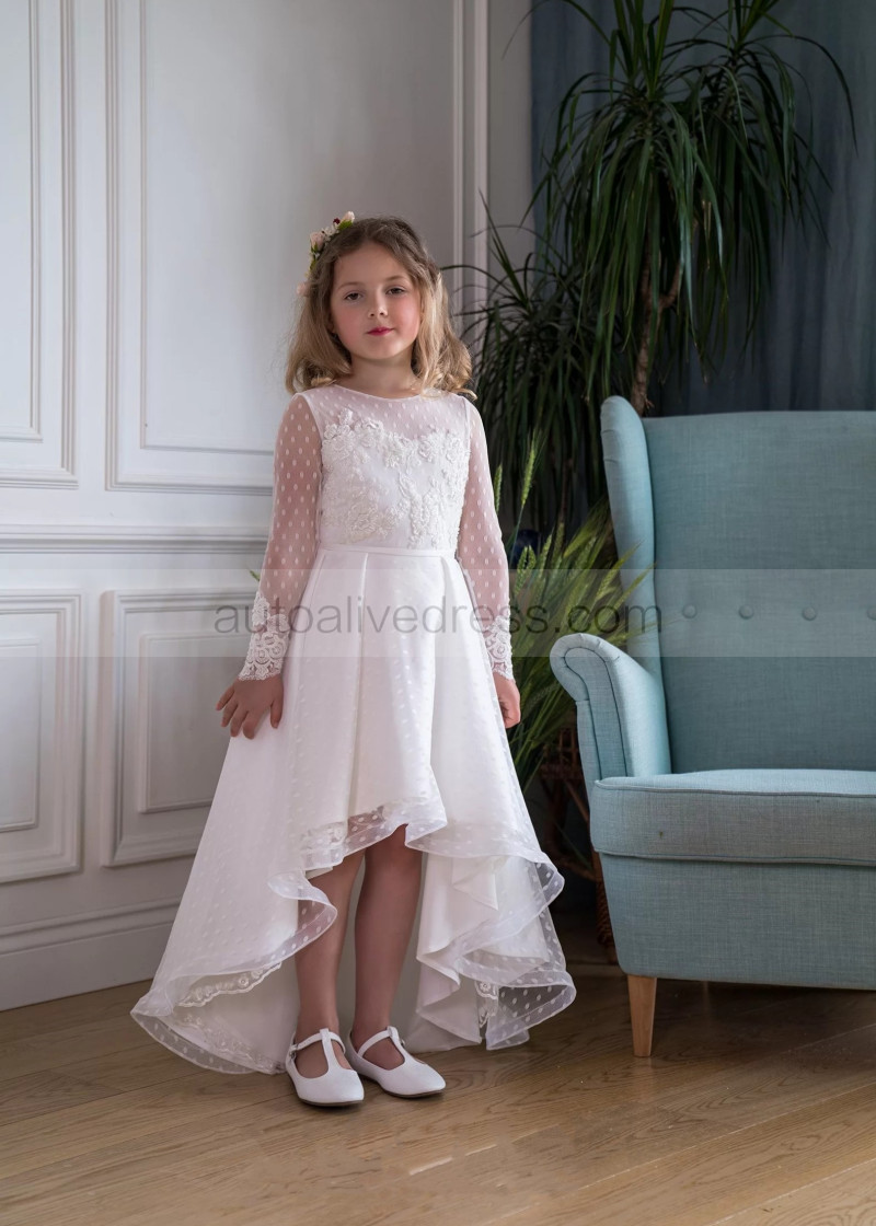 Beaded Ivory Polka Dots Tulle Lace High Low Flower Girl Dress
