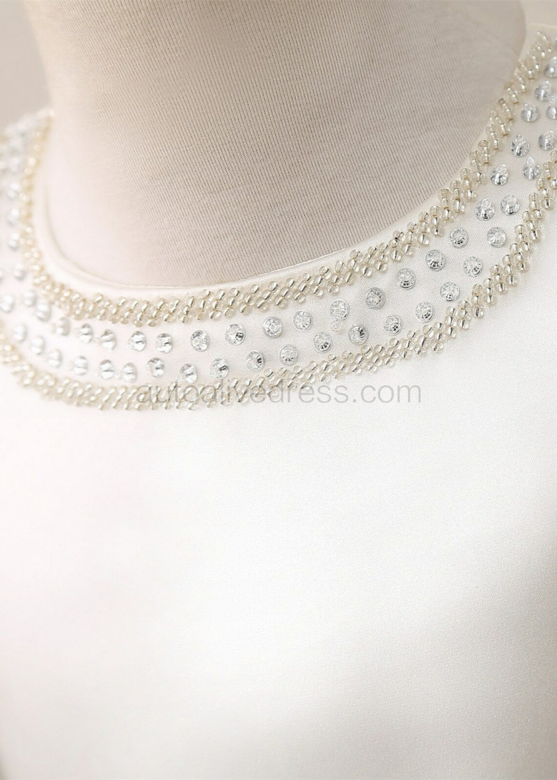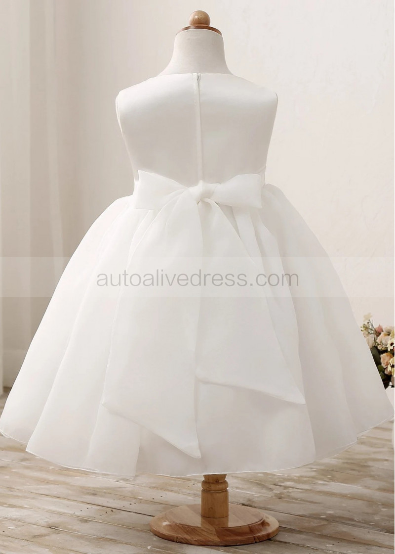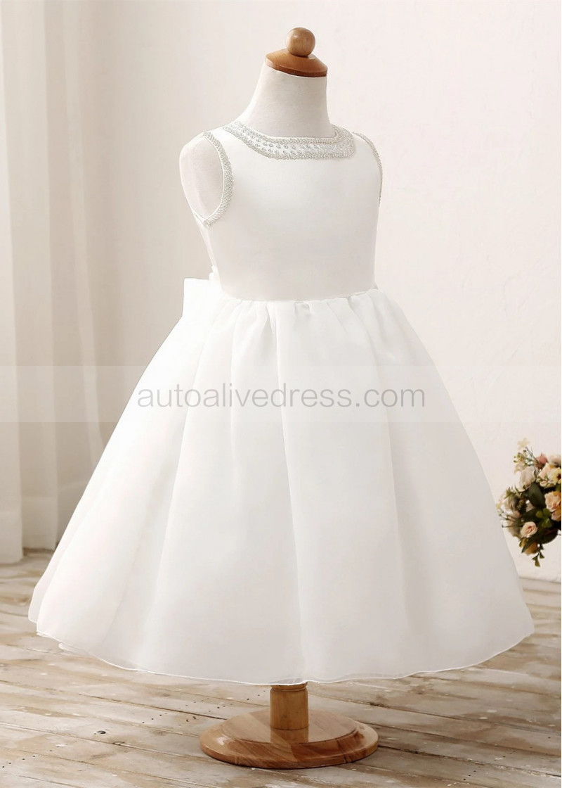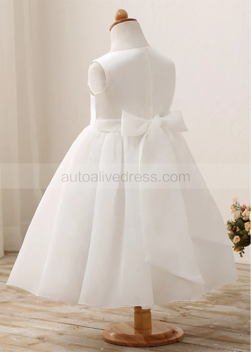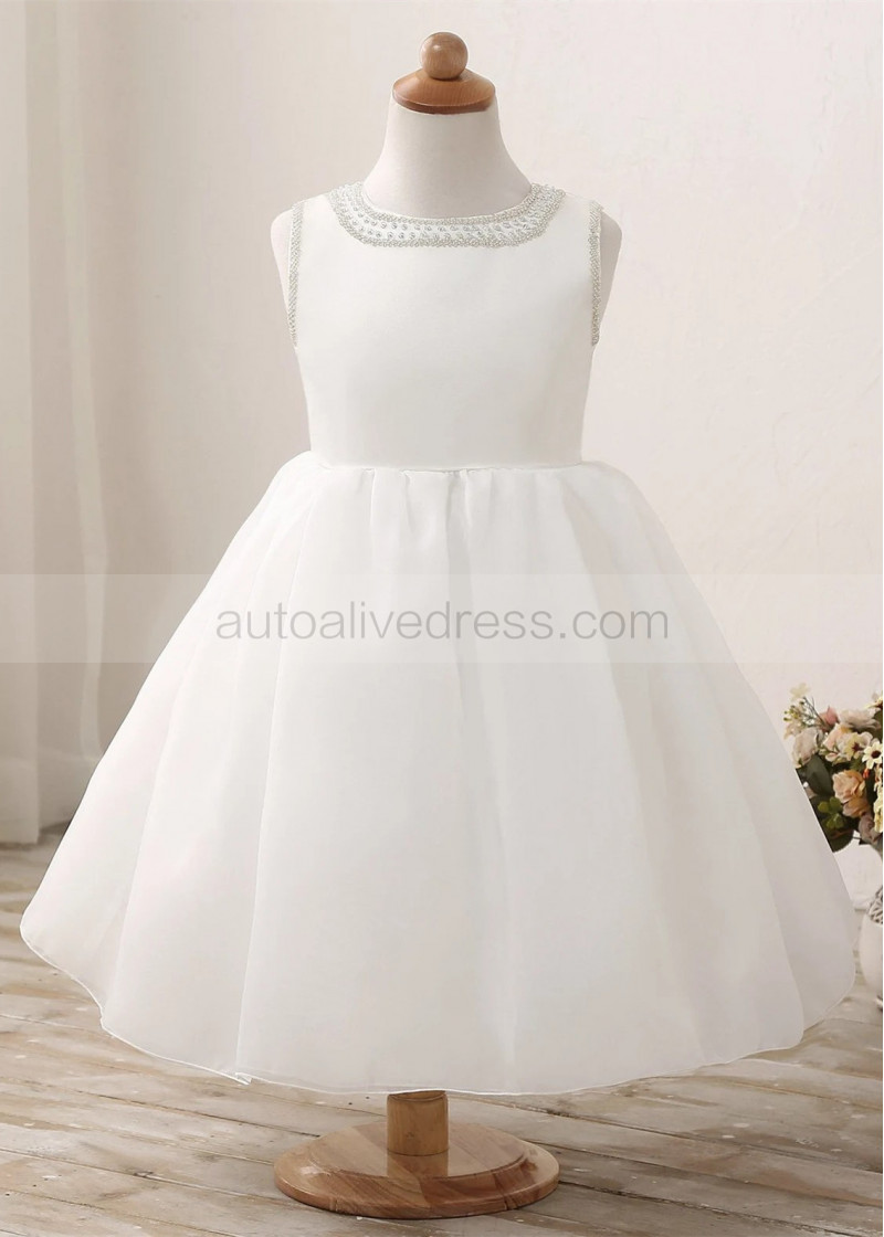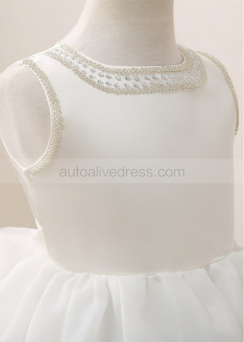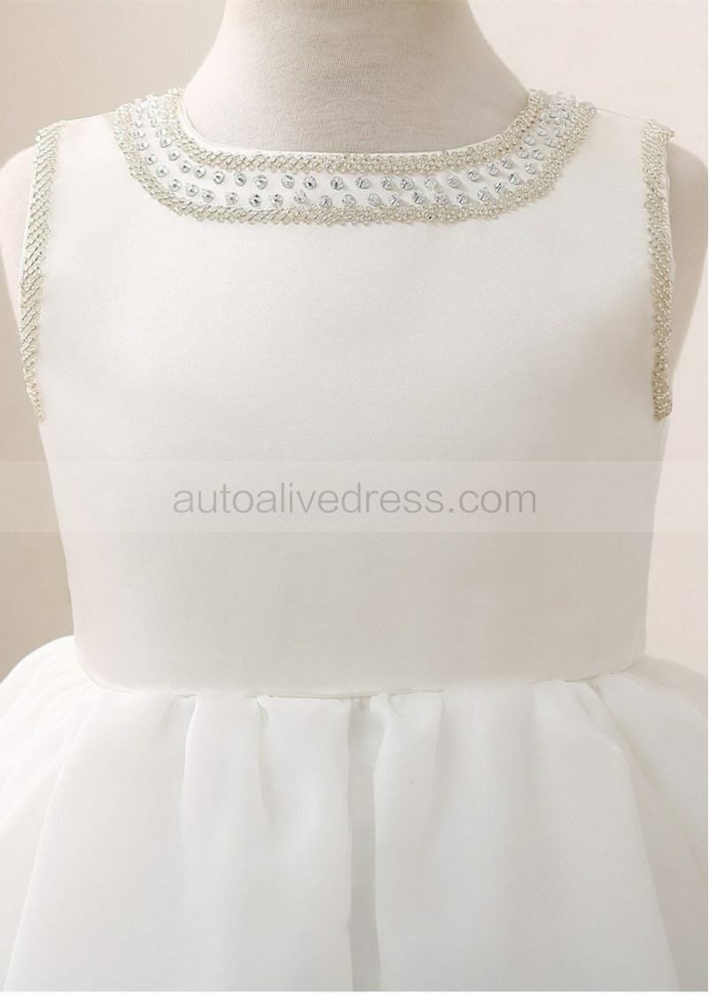 Beaded Ivory Satin Organza Simple Flower Girl Dress