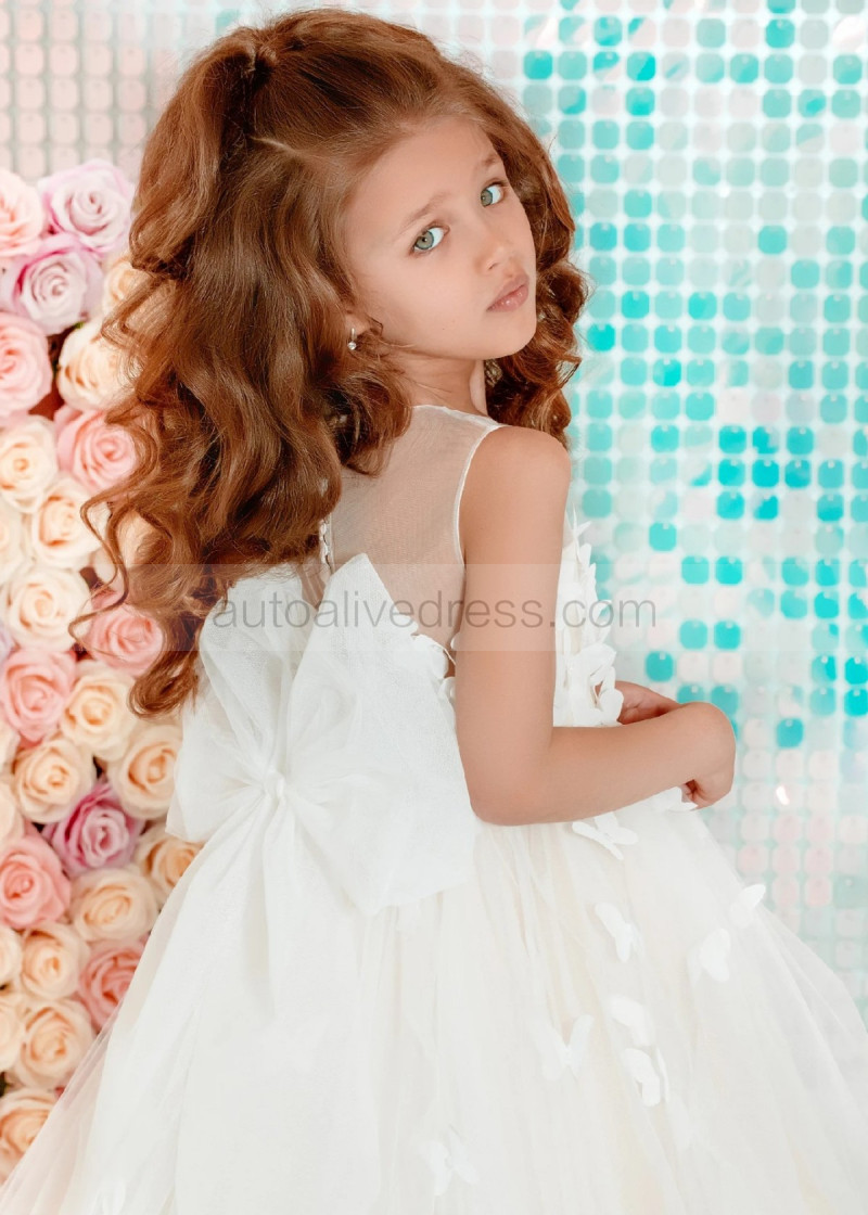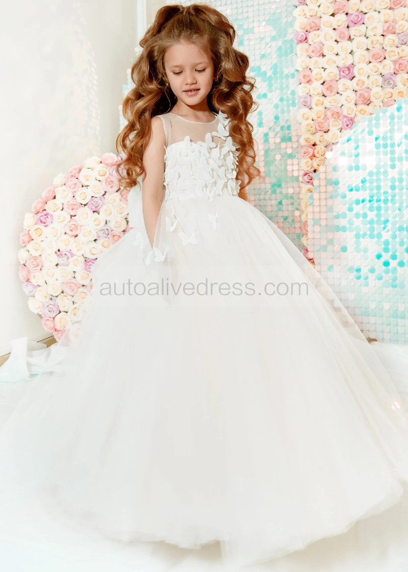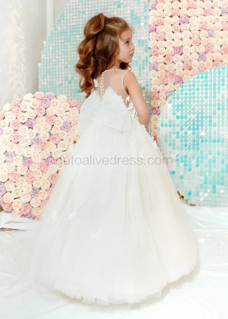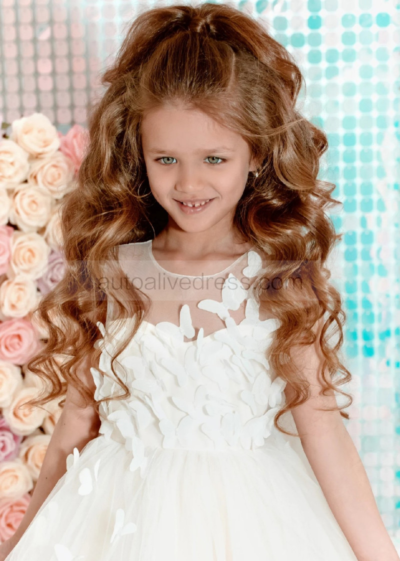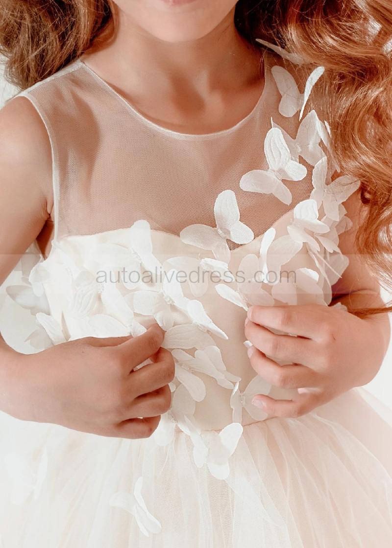 Beaded Ivory Tulle Butterfly Flower Girl Dress