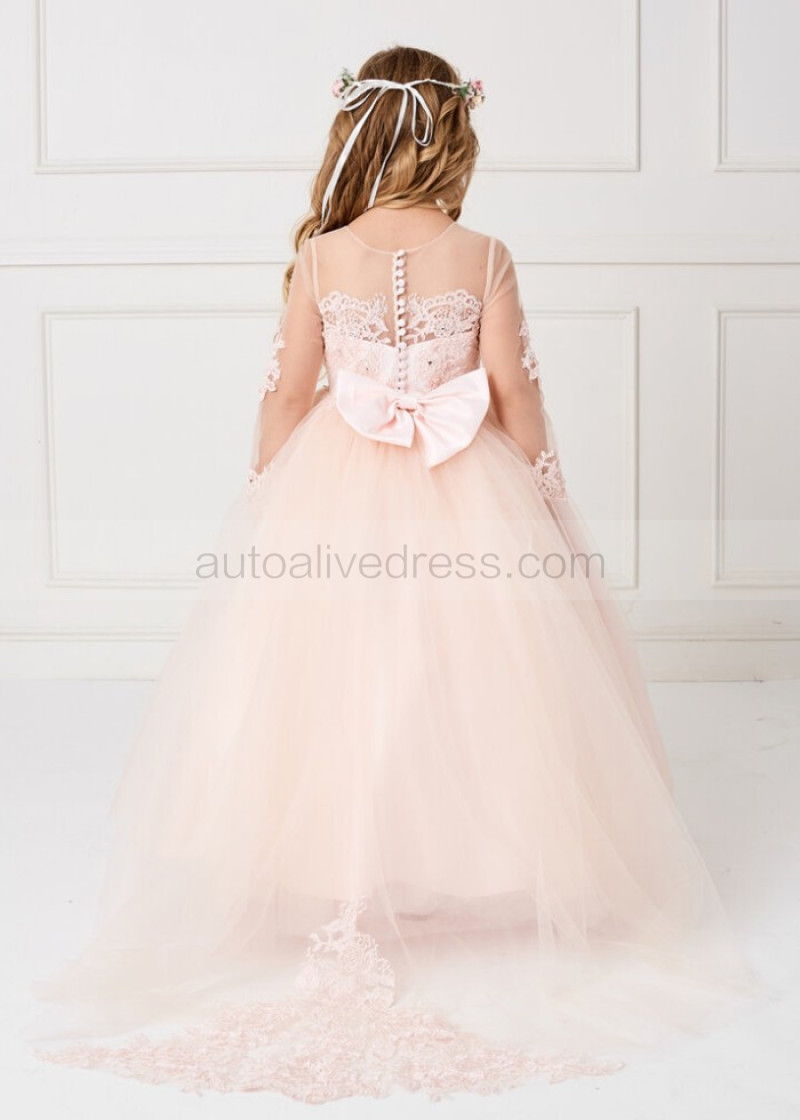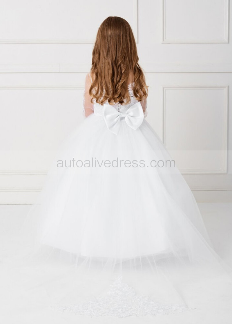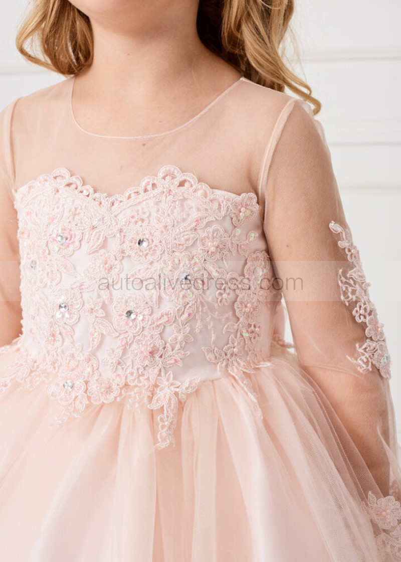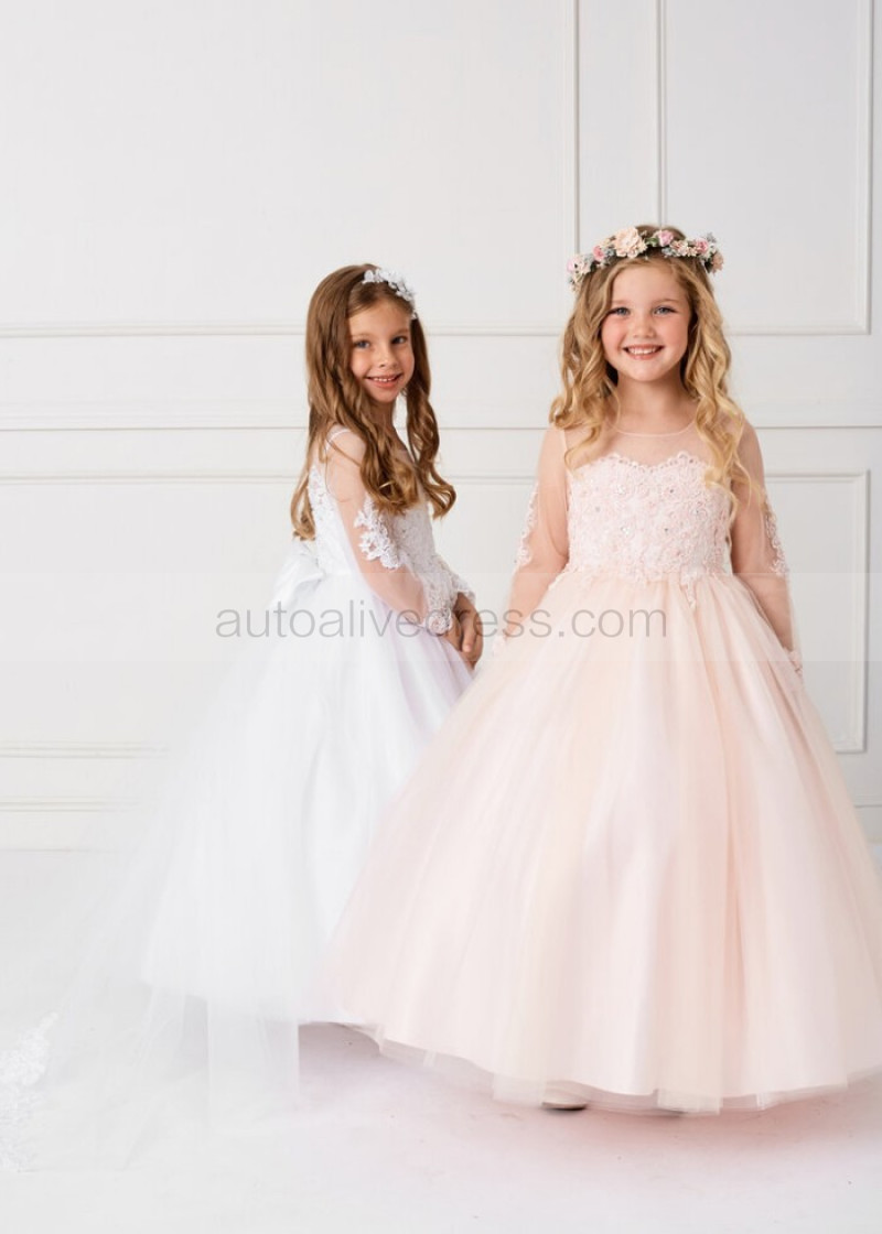 Beaded Lace Tulle Flower Girl Dress With Detachable Train