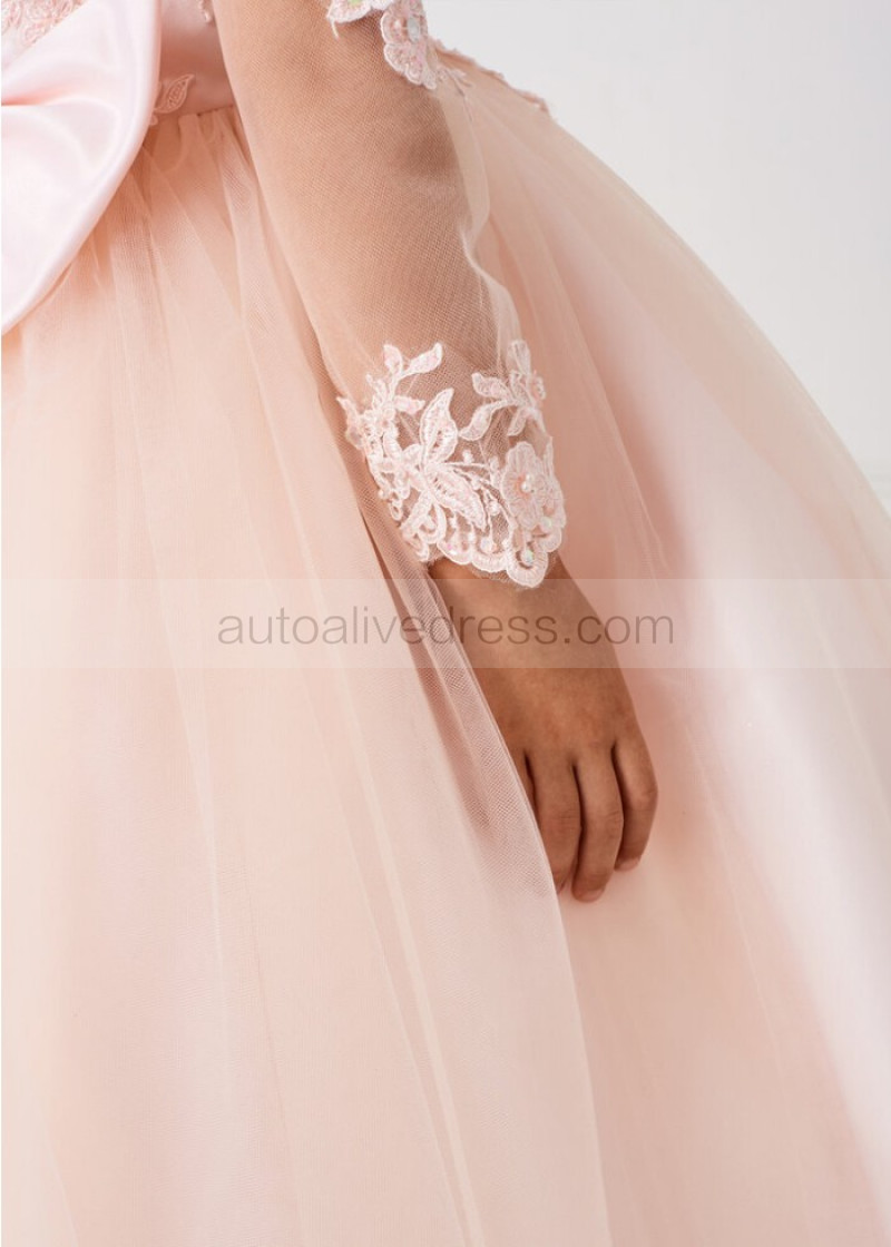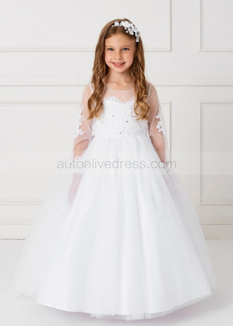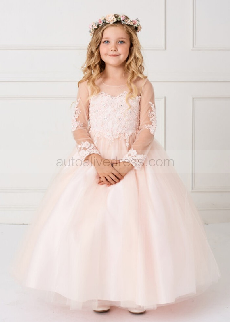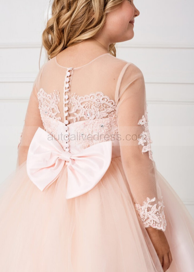 Beaded Lace Tulle Flower Girl Dress With Detachable Train
