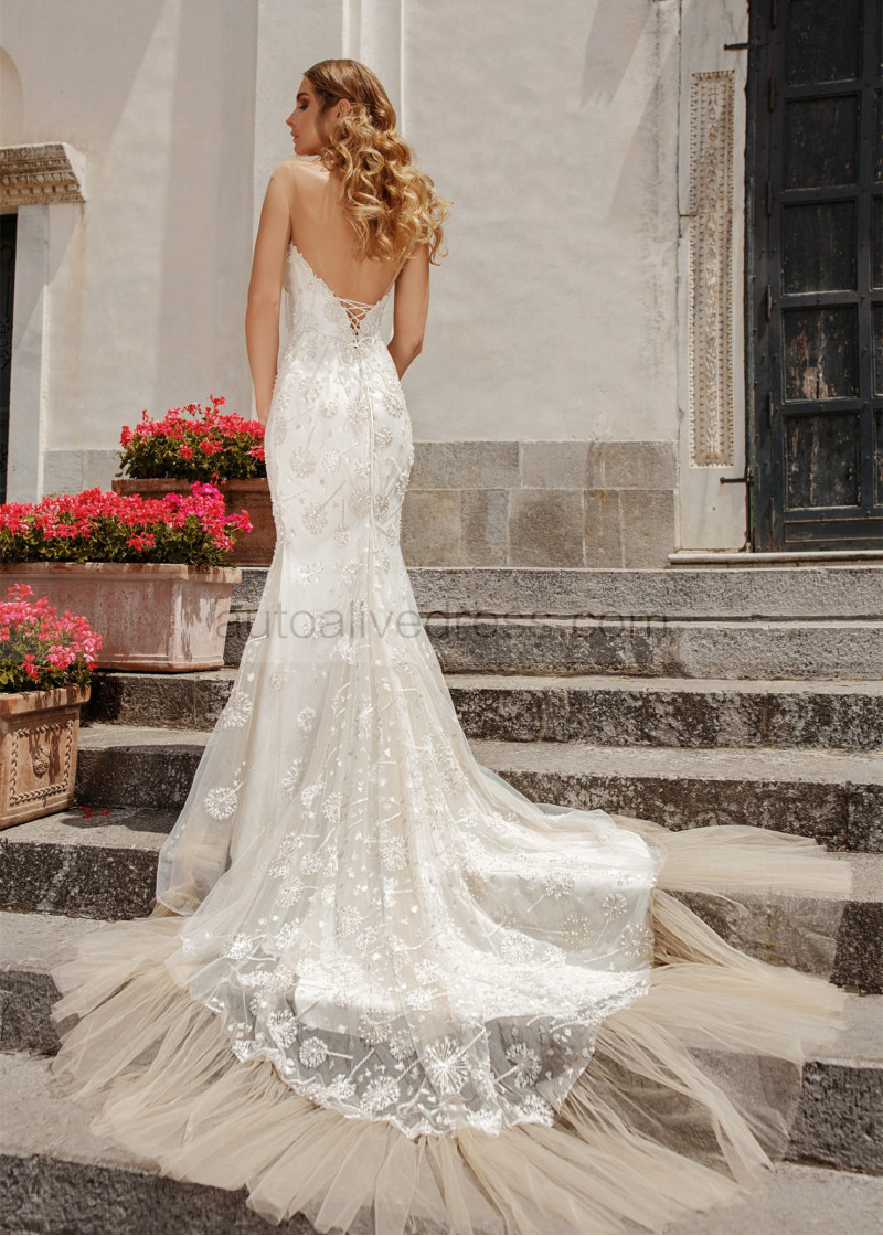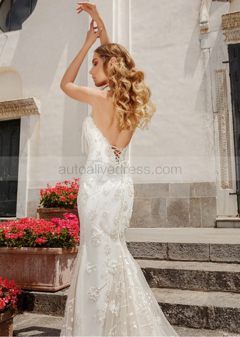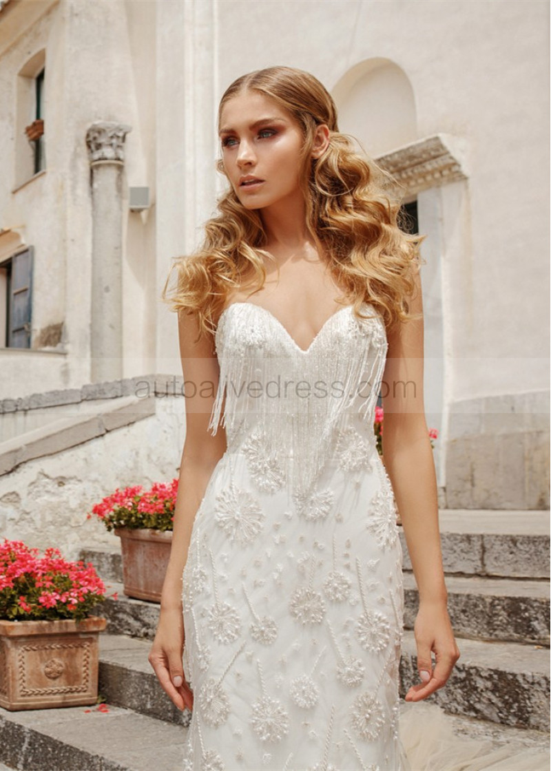 Beaded Lace Tulle Fringe Fashion Wedding Dress