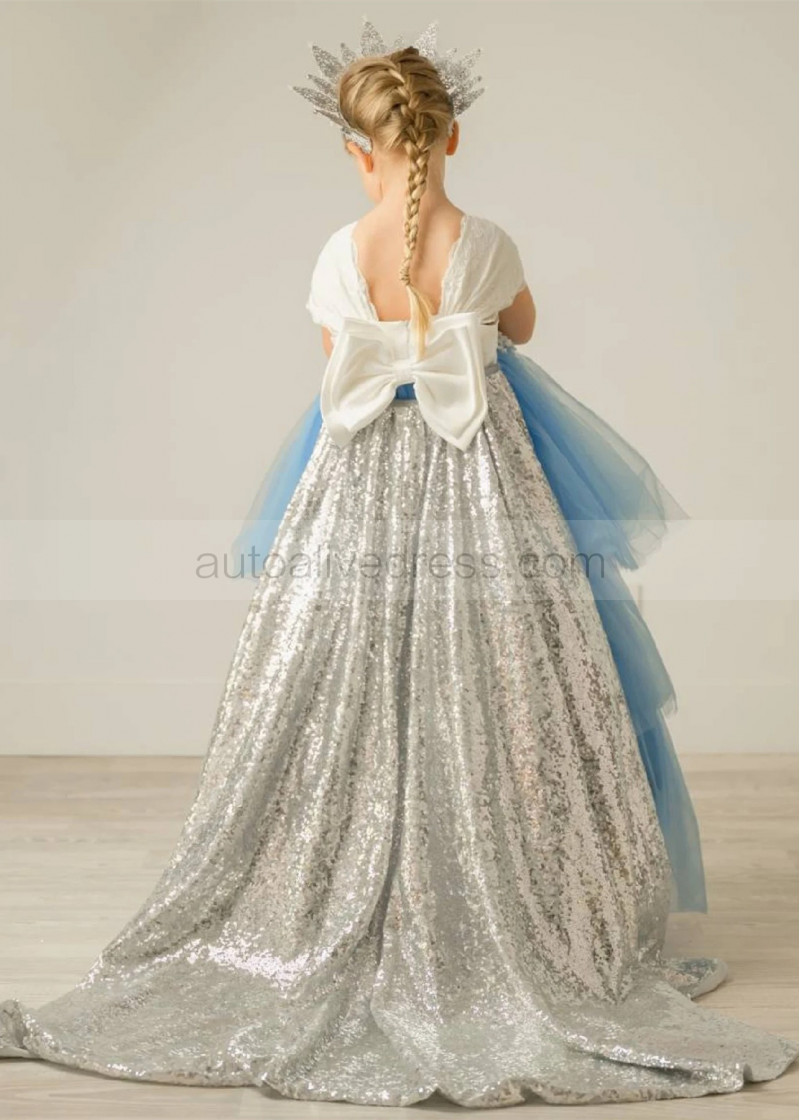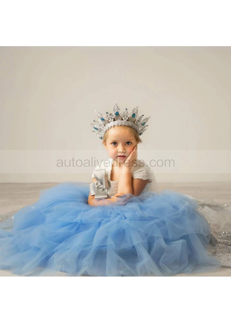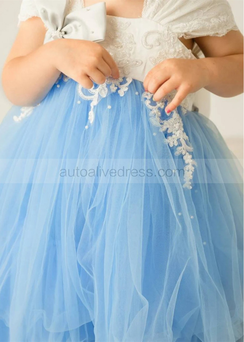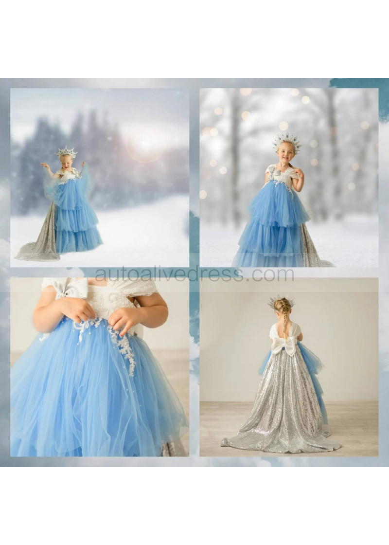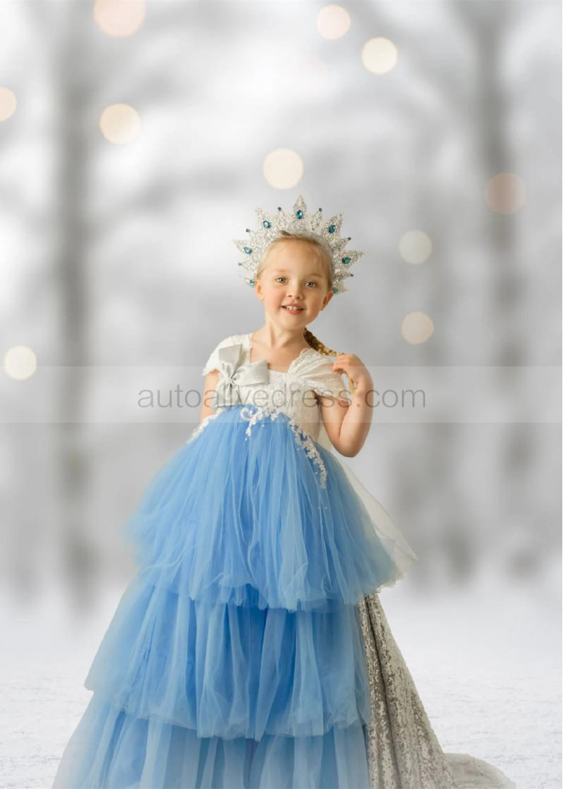 Beaded Lace Tulle Tiered Flower Girl Dress With Removable Train