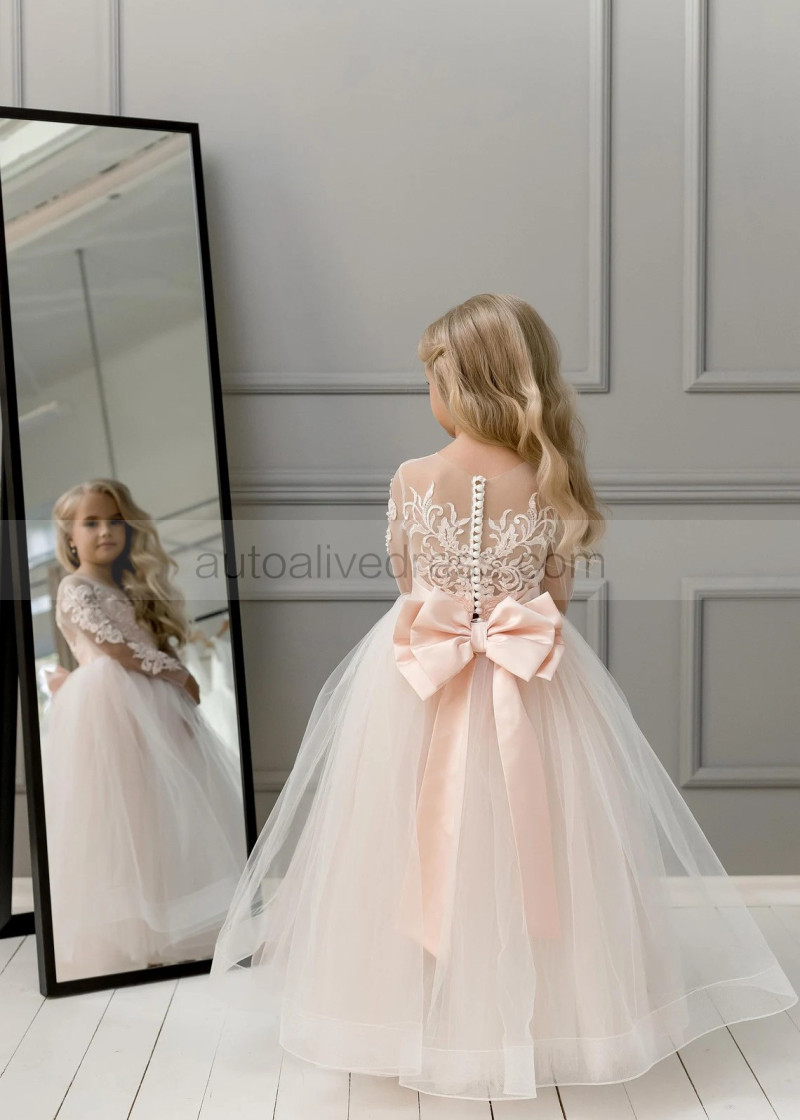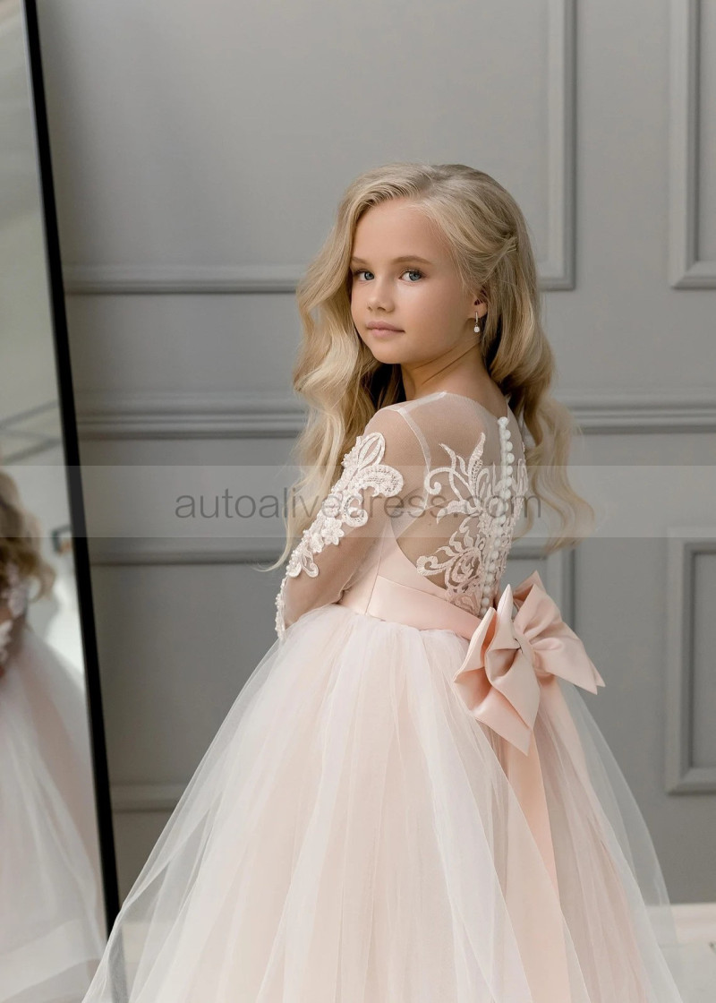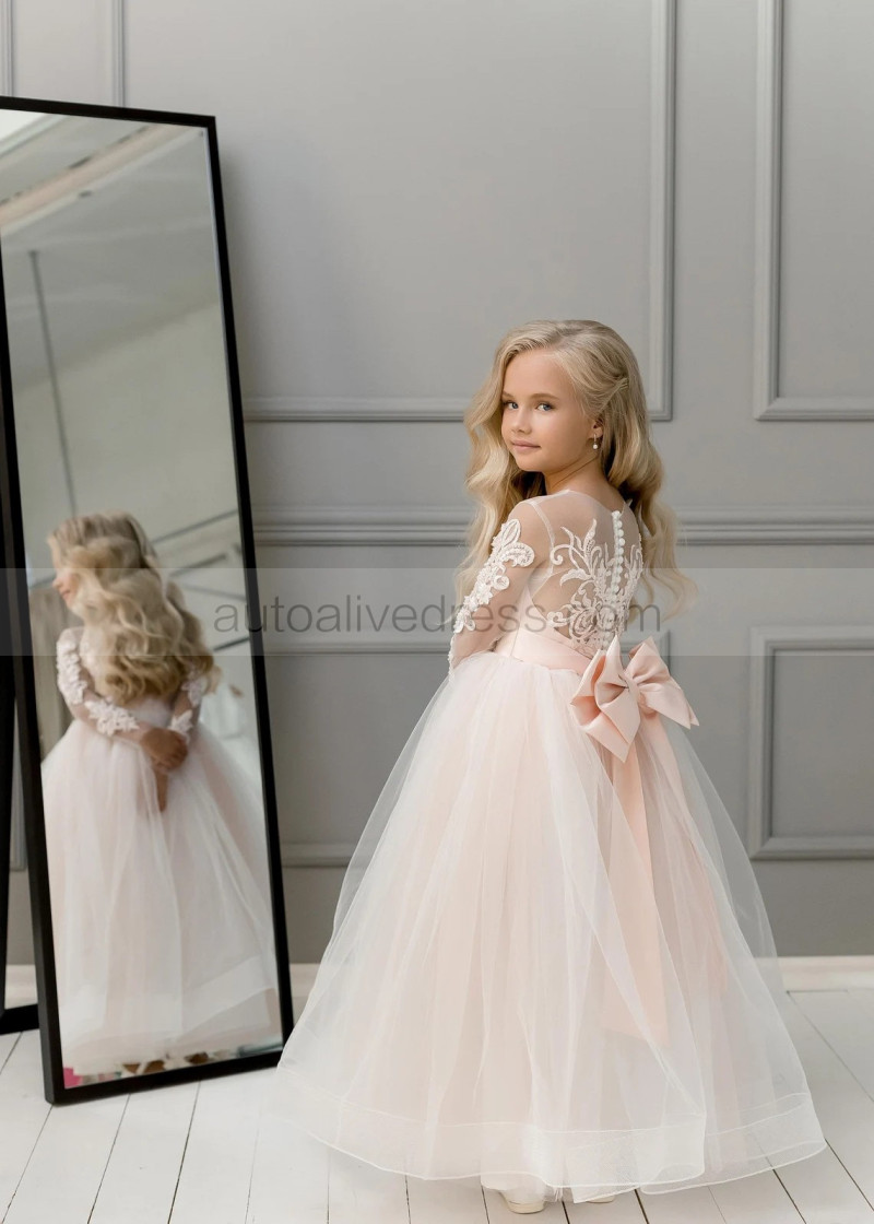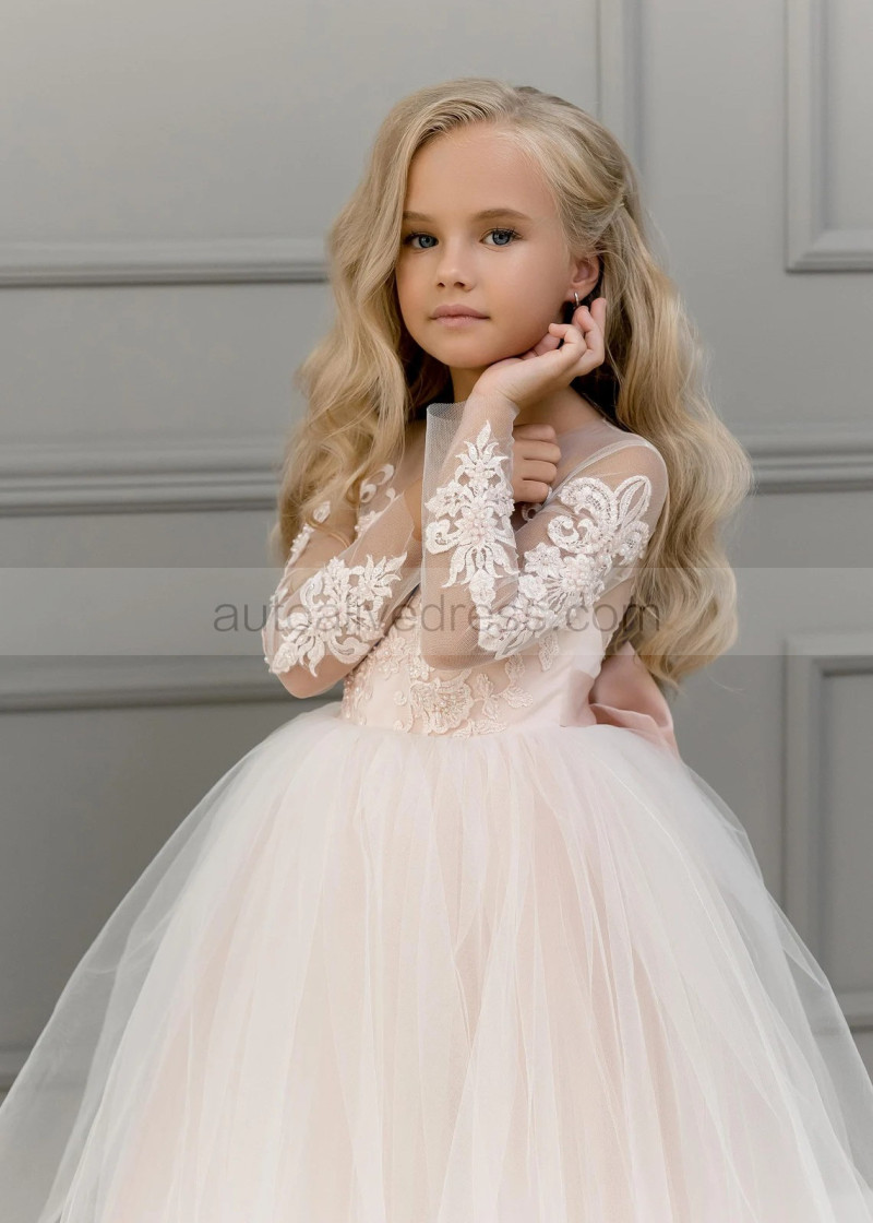 Beaded Long Sleeves Lace Tulle Flower Girl Dress