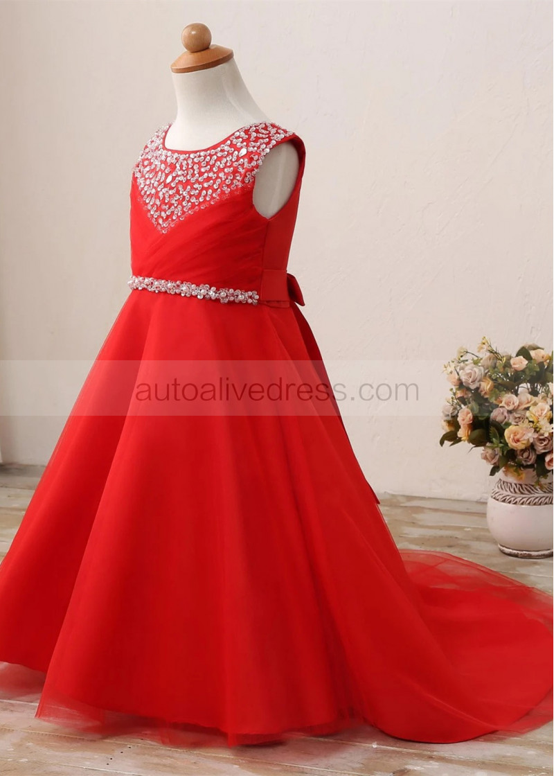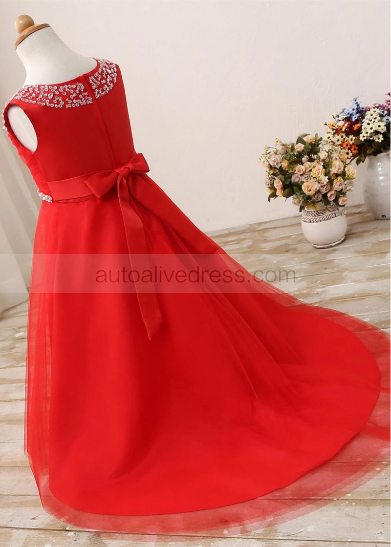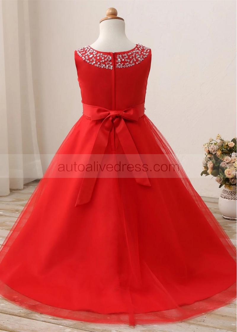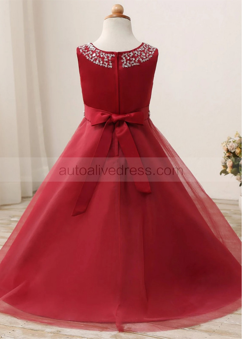 Beaded Satin Tulle Floor Length Flower Girl Dress