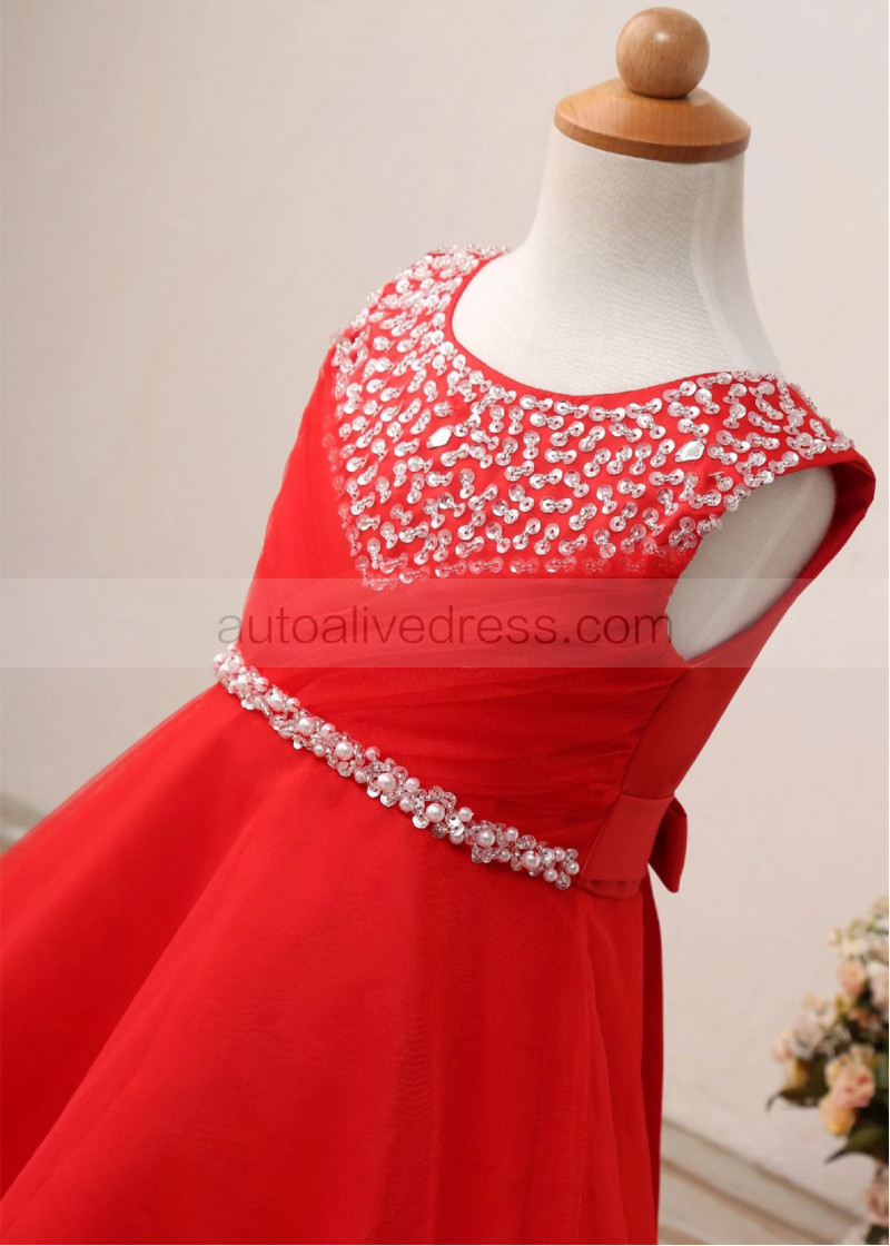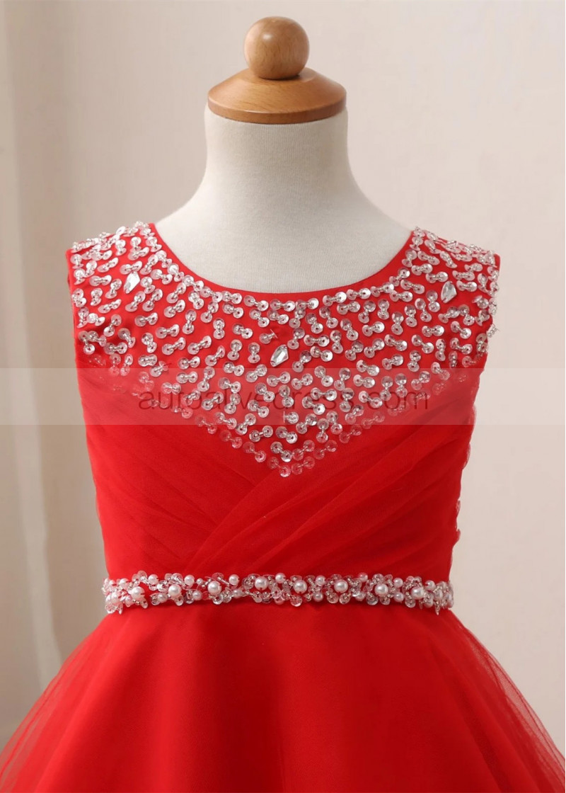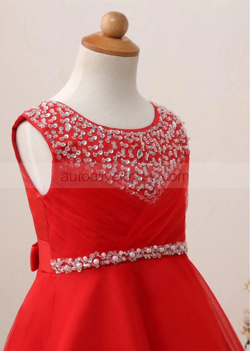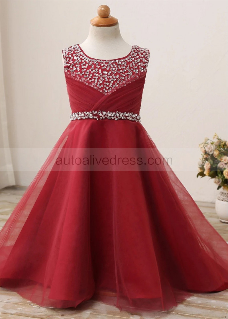 Beaded Satin Tulle Floor Length Flower Girl Dress
