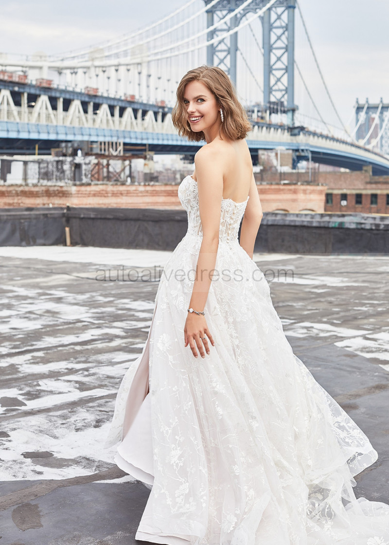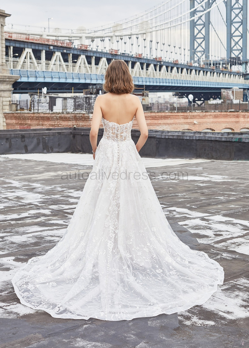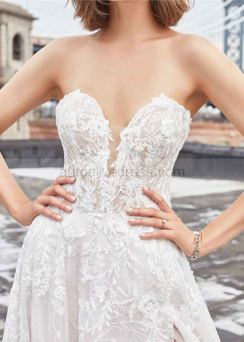 Beaded Strapless Ivory Lace Tulle Elegant Wedding Dress