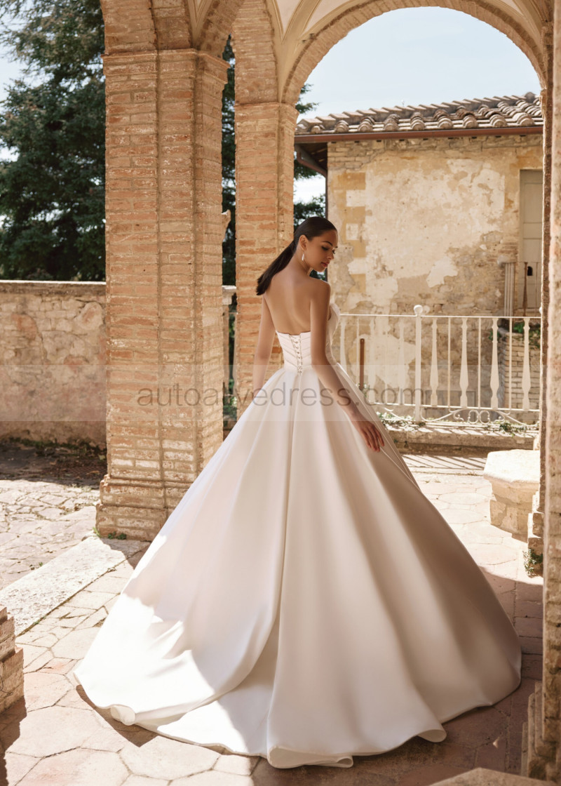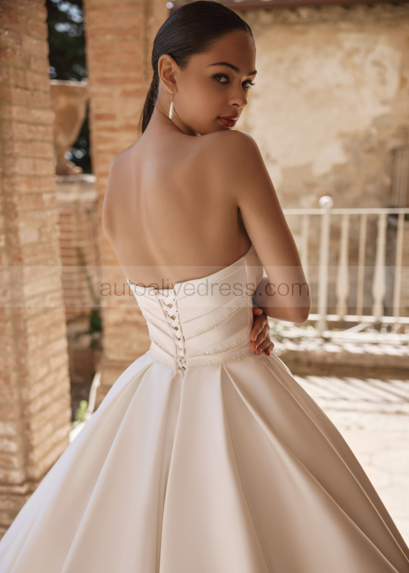Beaded Strapless Ivory Satin Corset Back Unique Wedding Dress