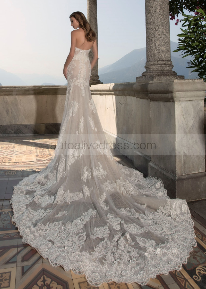 Beaded Strapless Lace Tulle Glitter Wedding Dress
