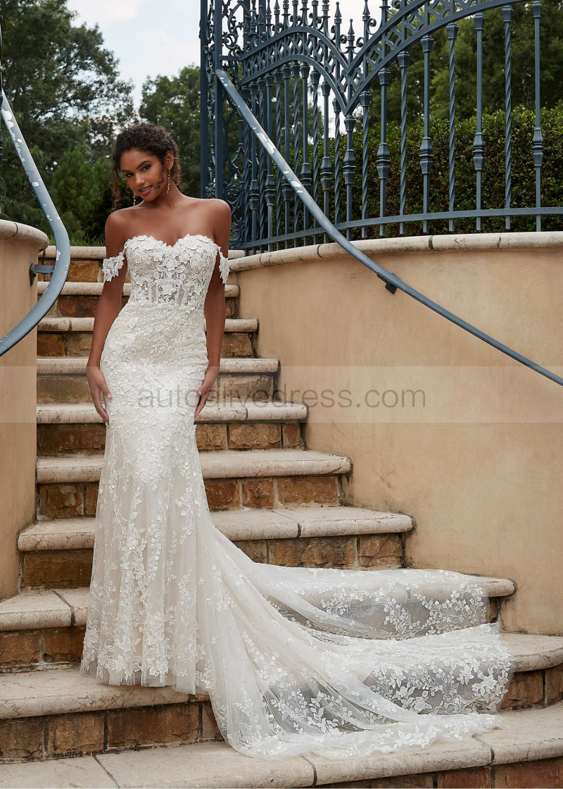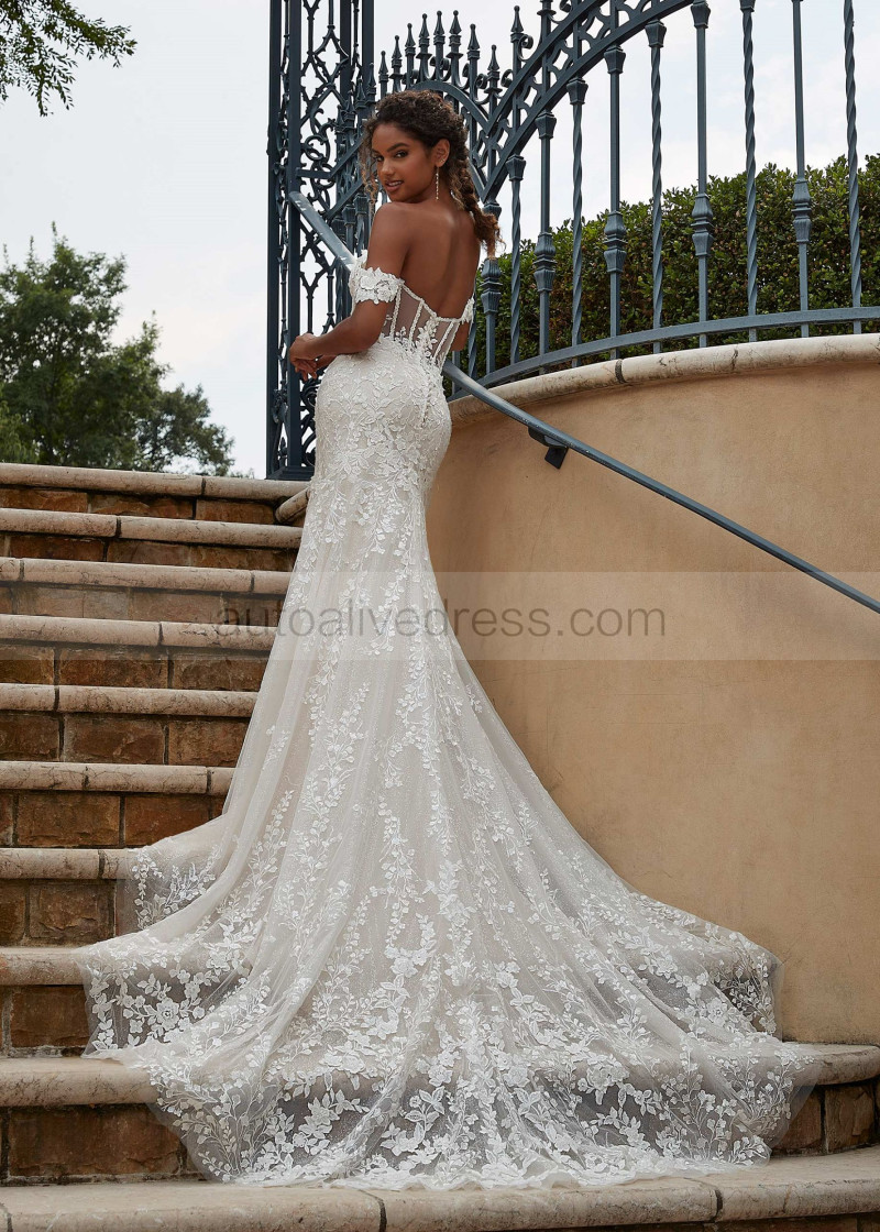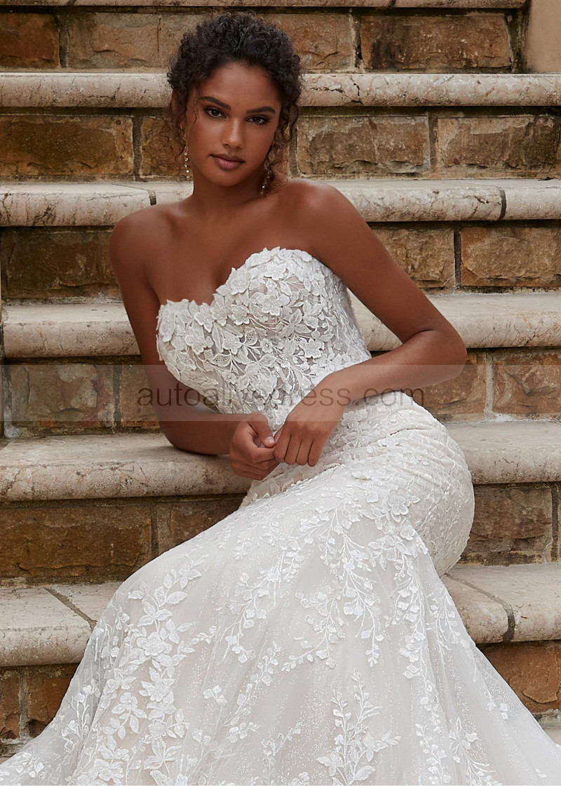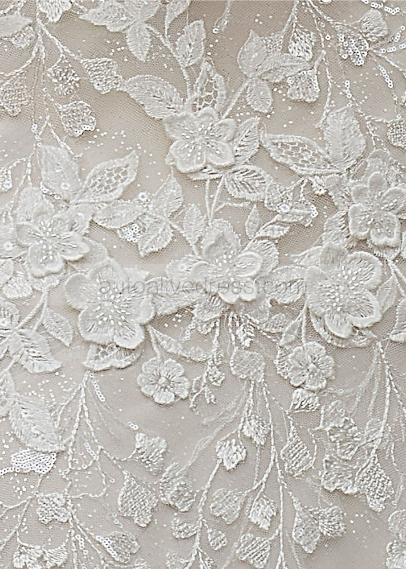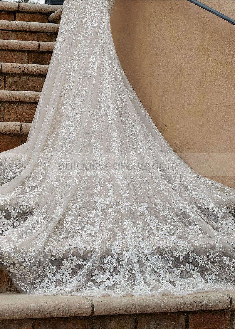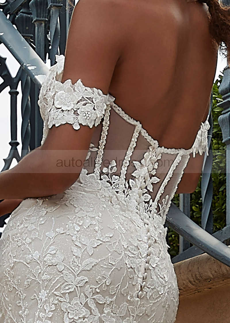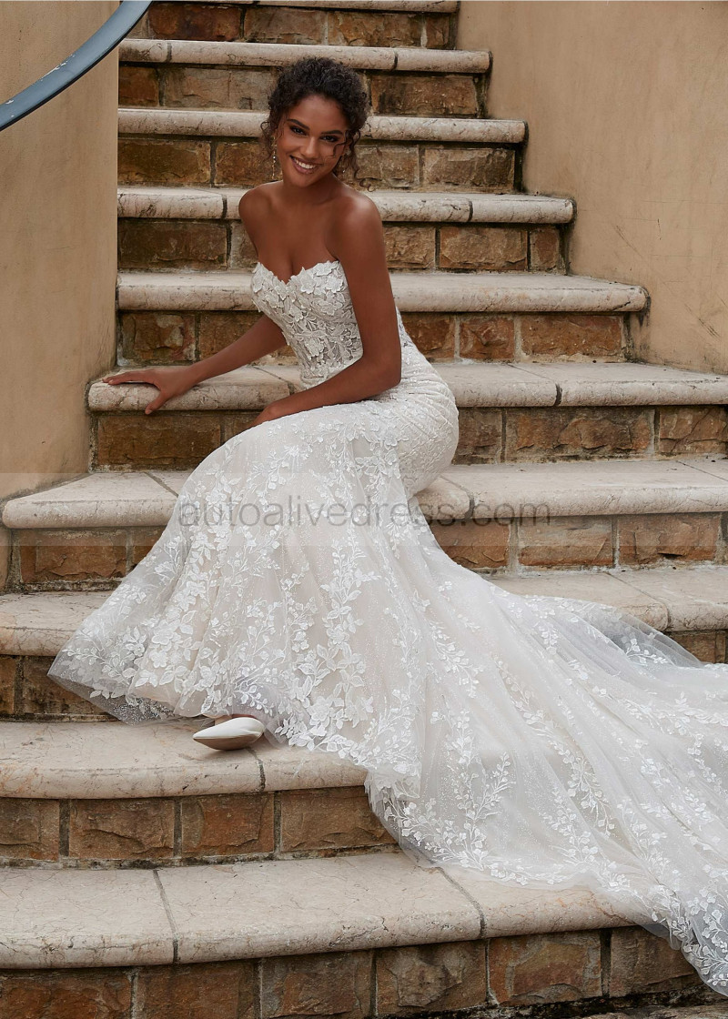 Beaded Sweetheart Neck Ivory Lace Tulle Open Back Wedding Dress