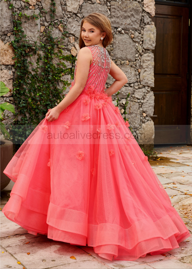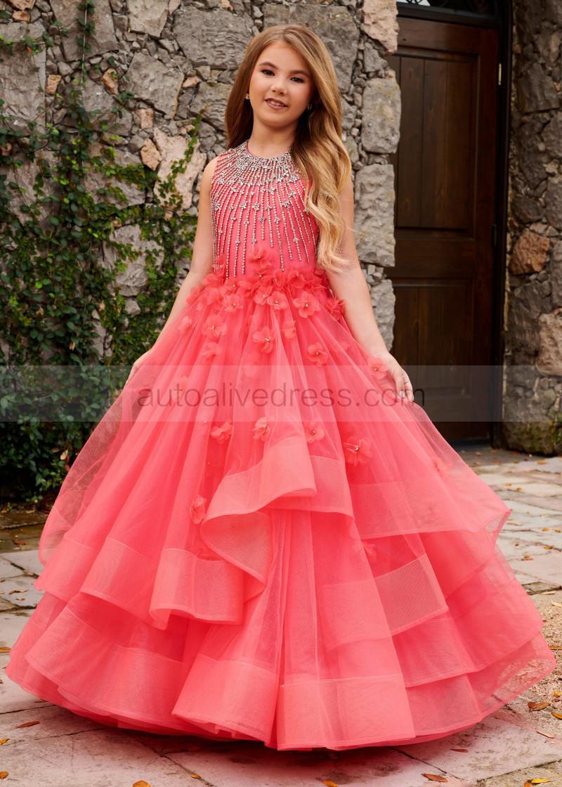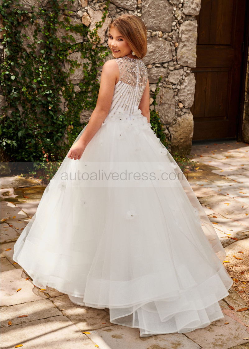 Beaded Tulle 3D Flowers Luxury Flower Girl Dress