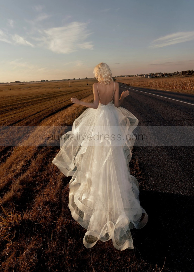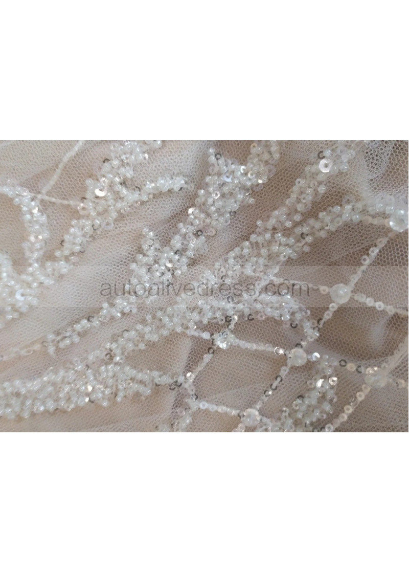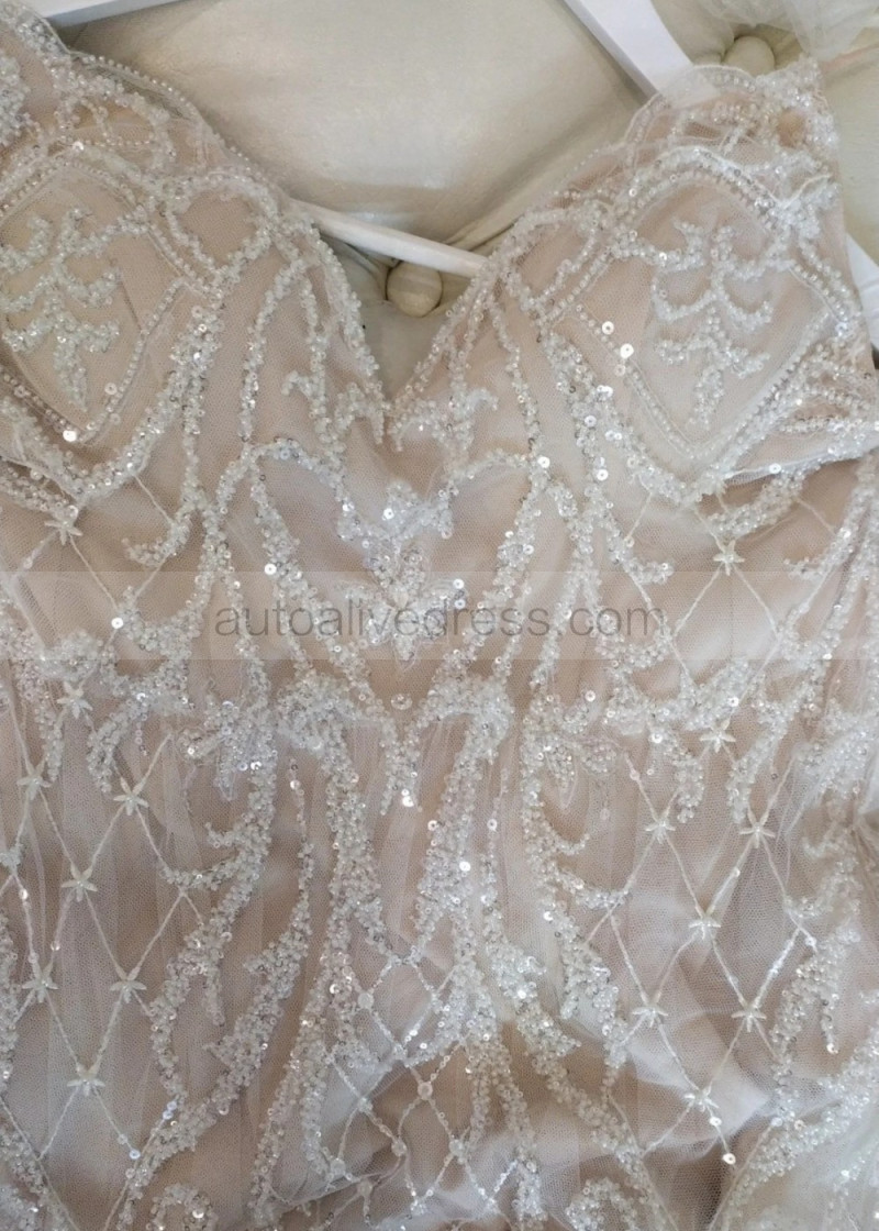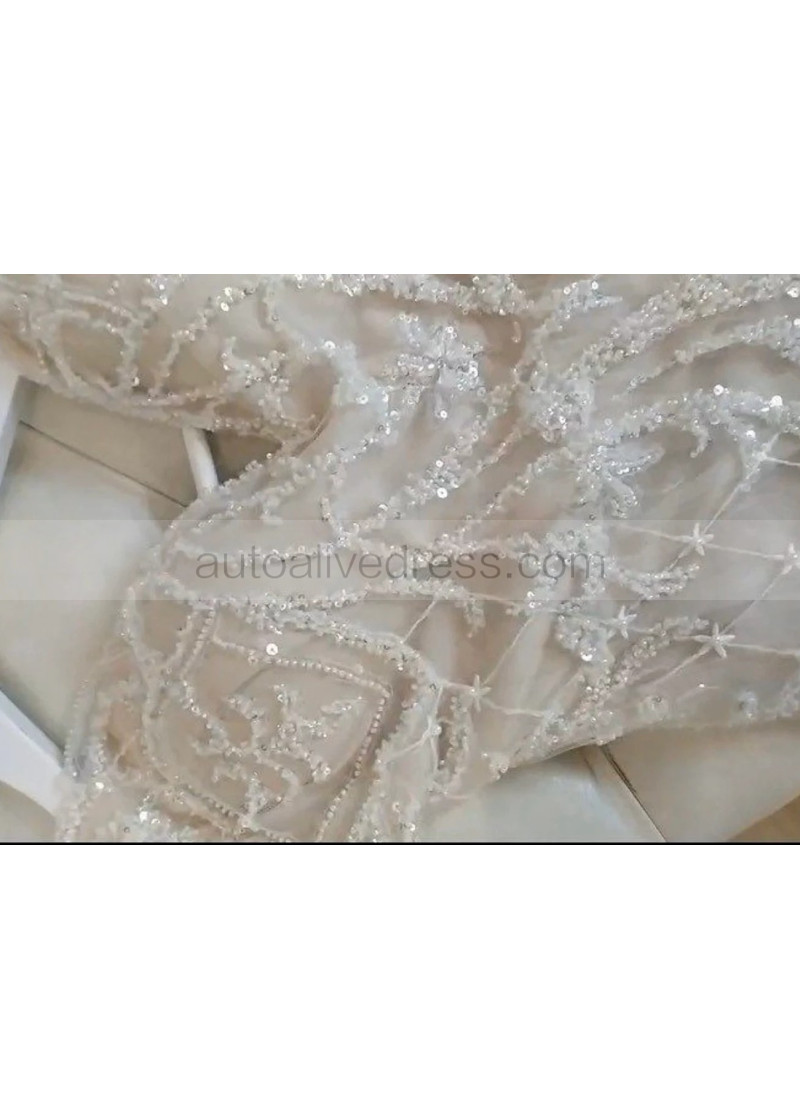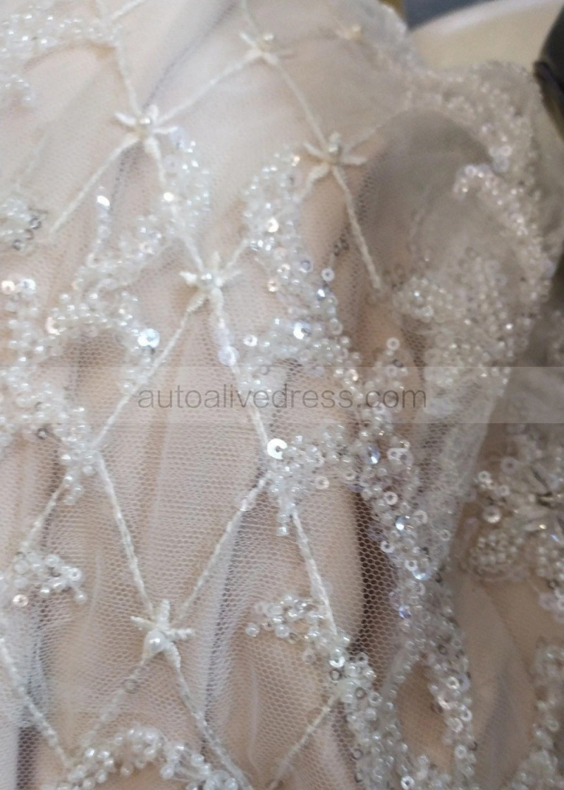 Beaded Tulle Luxury Wedding Dress With Detachable Train