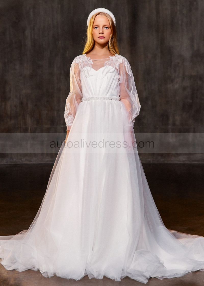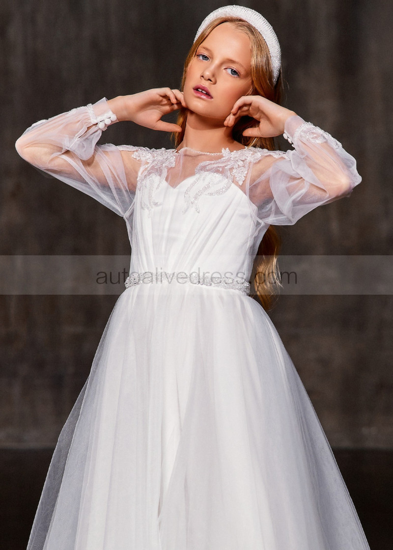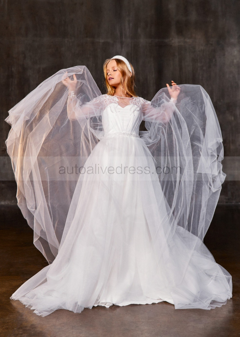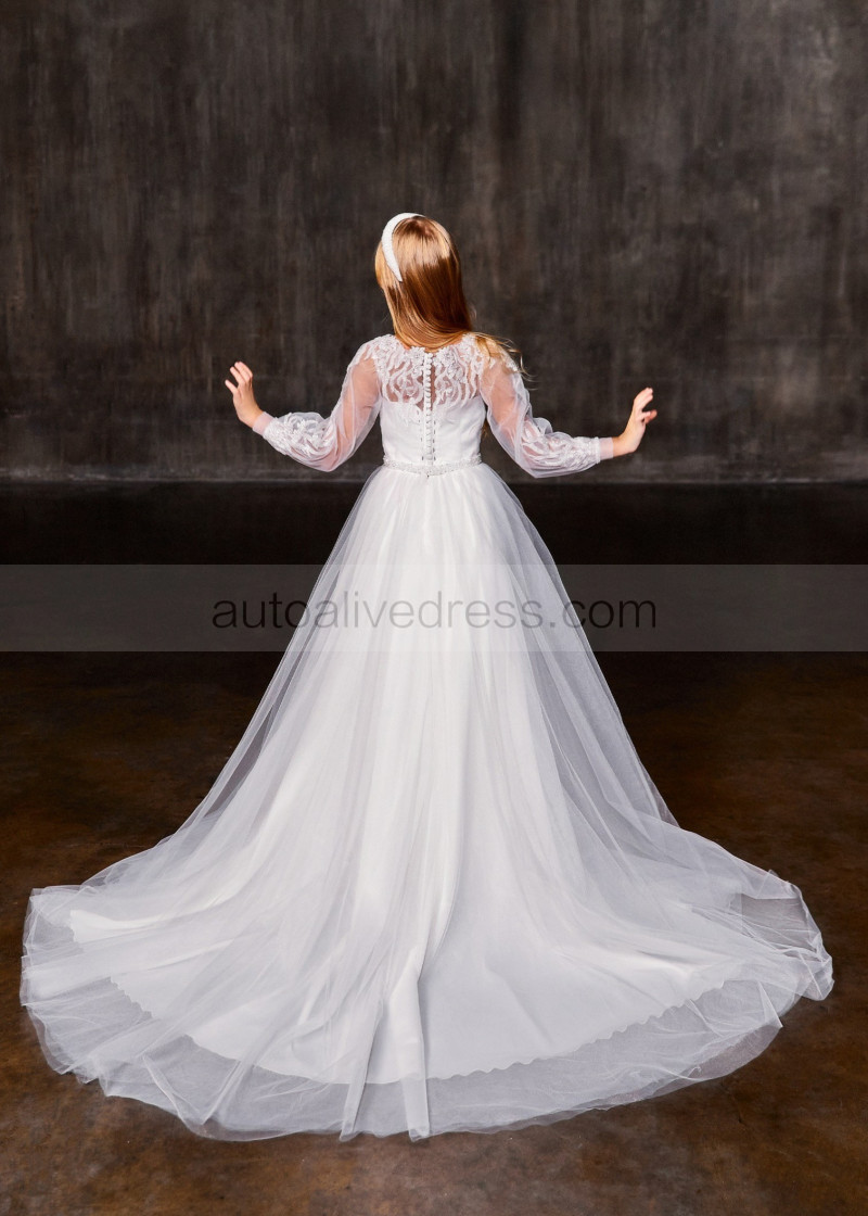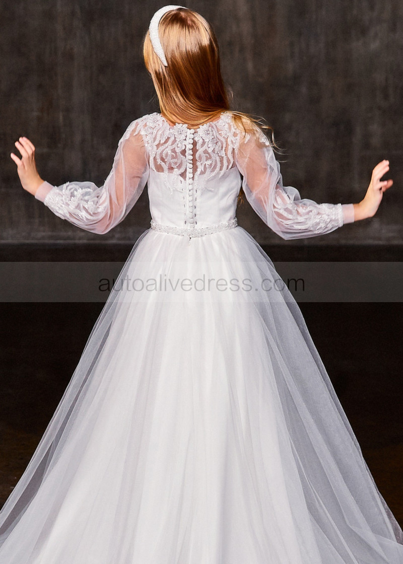 Beaded White Lace Organza Fancy Flower Girl Dress