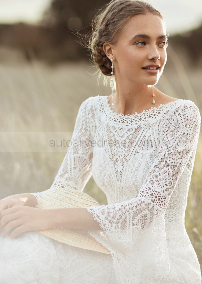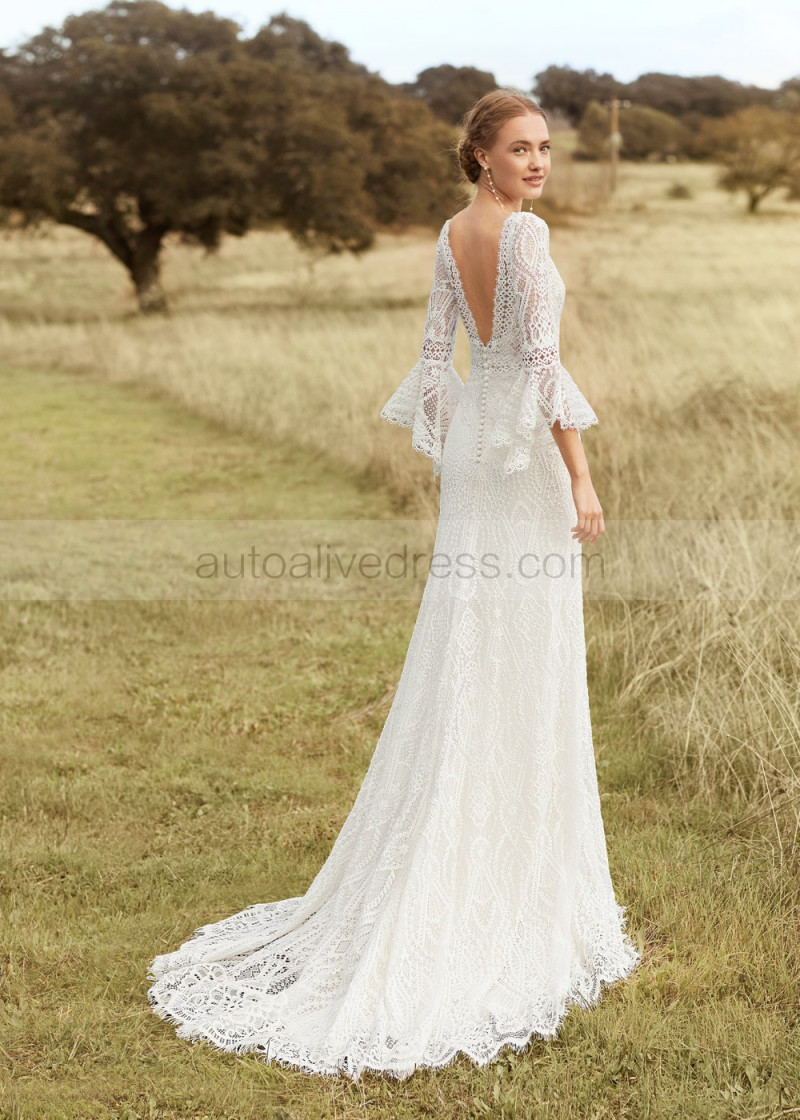 Bell Sleeves Ivory Lace Over Boho Chic Wedding Dress