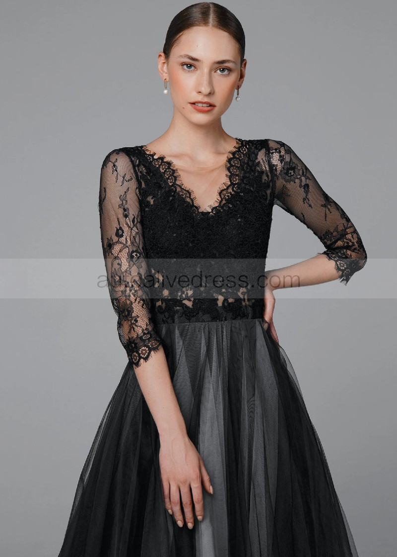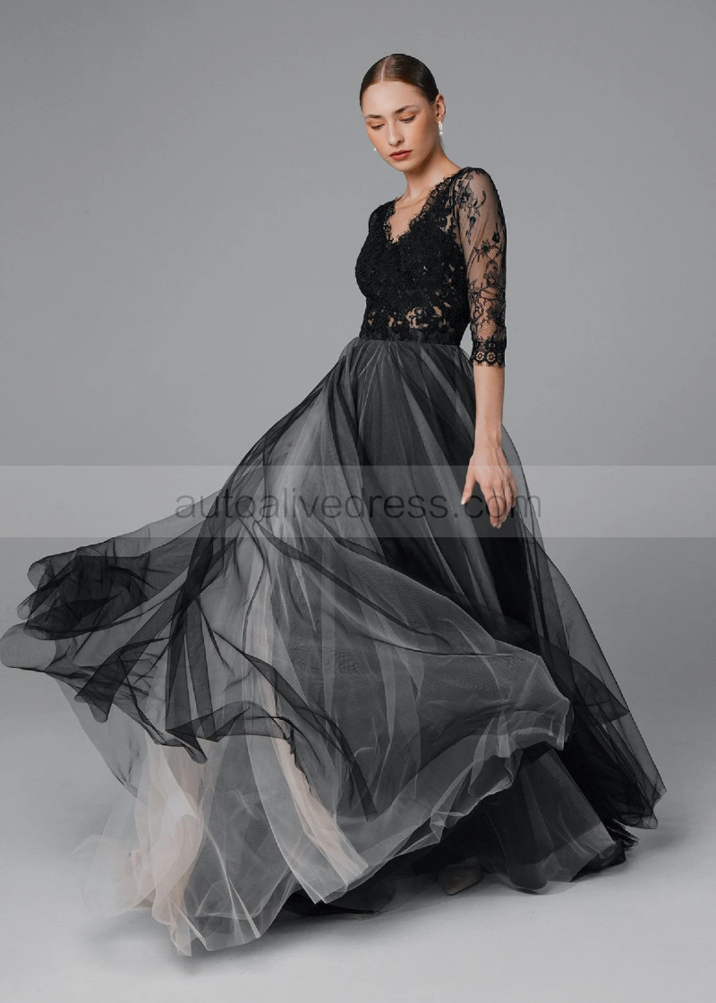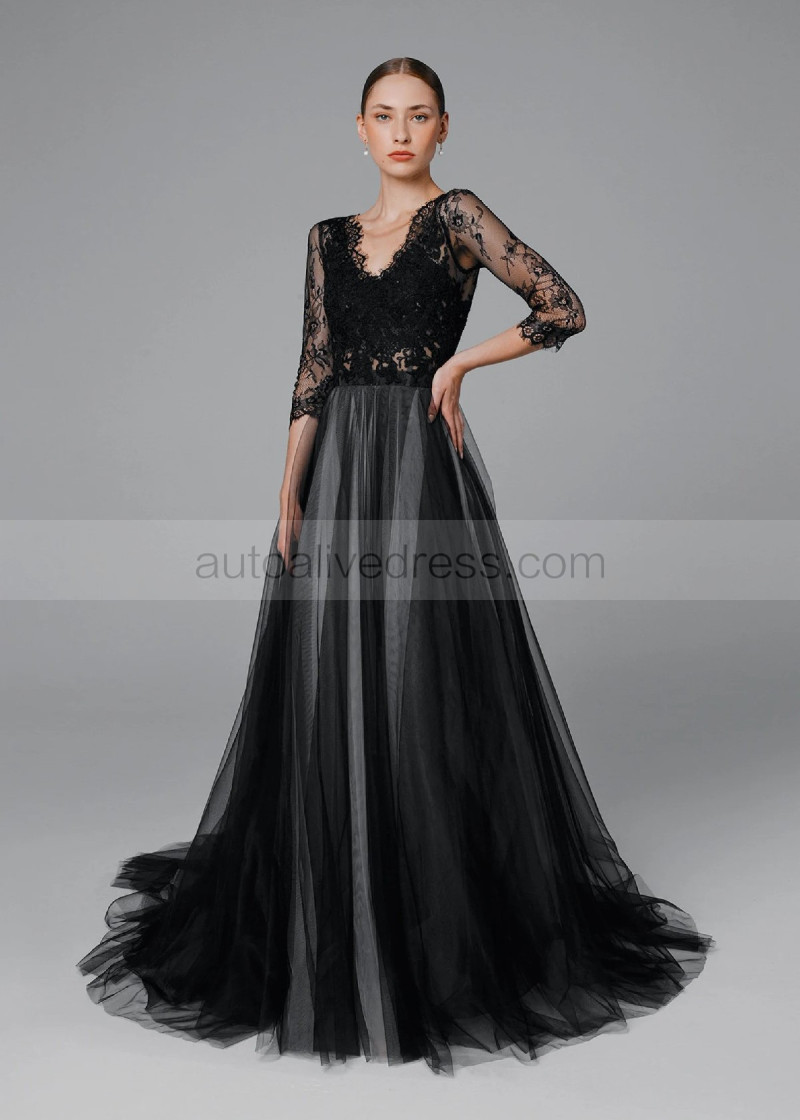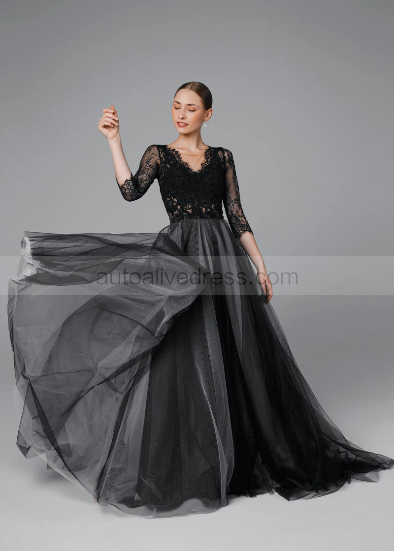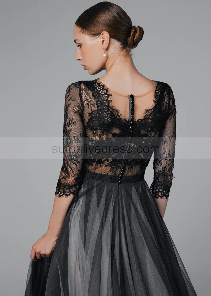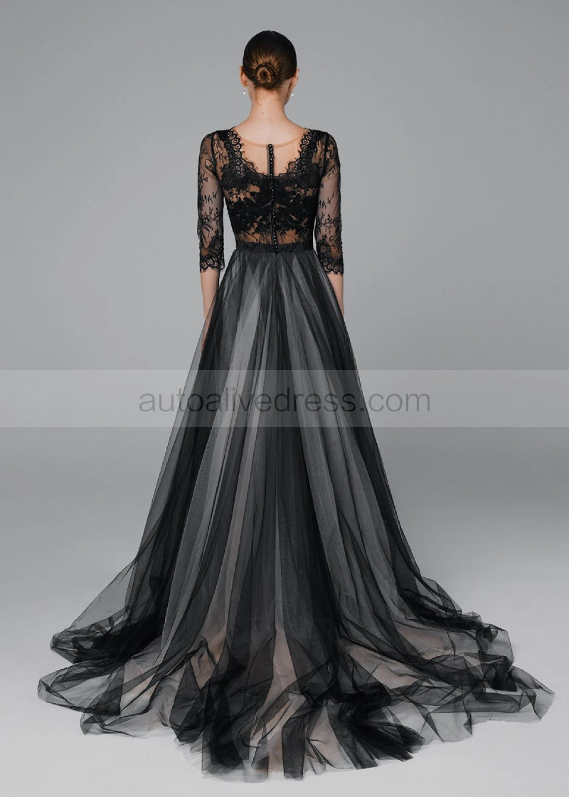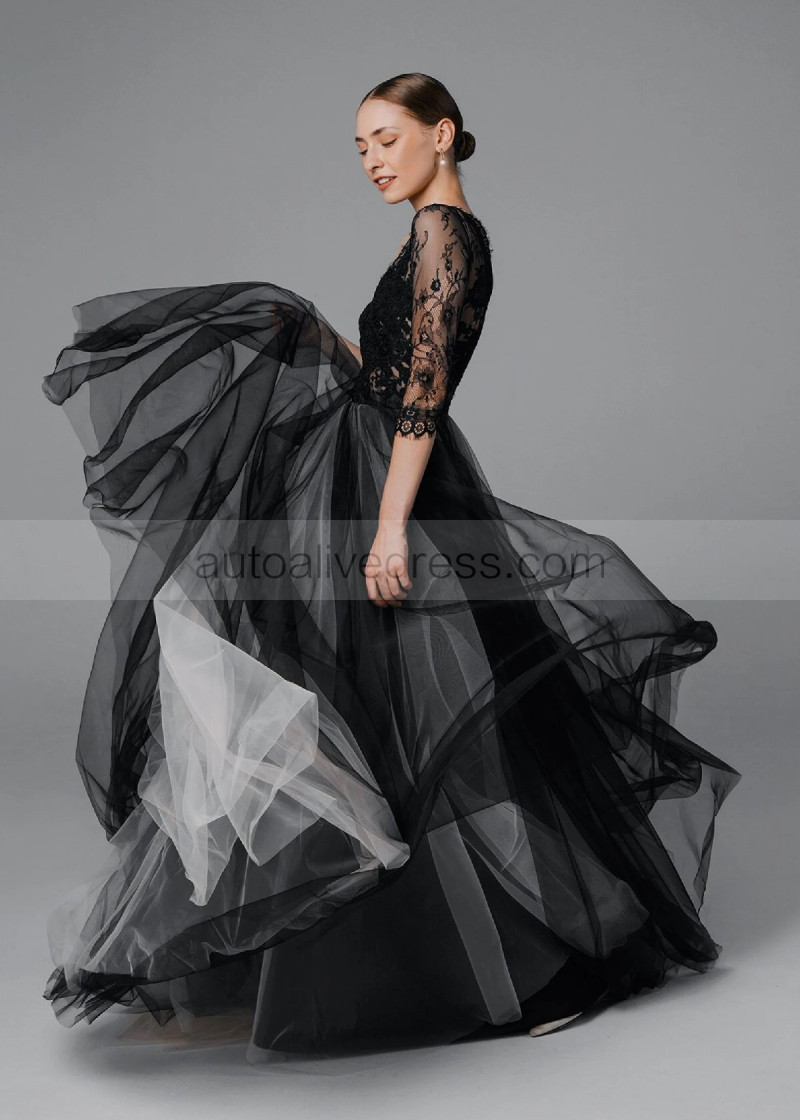 Black Eyelash Lace Tulle Chic Wedding Dress