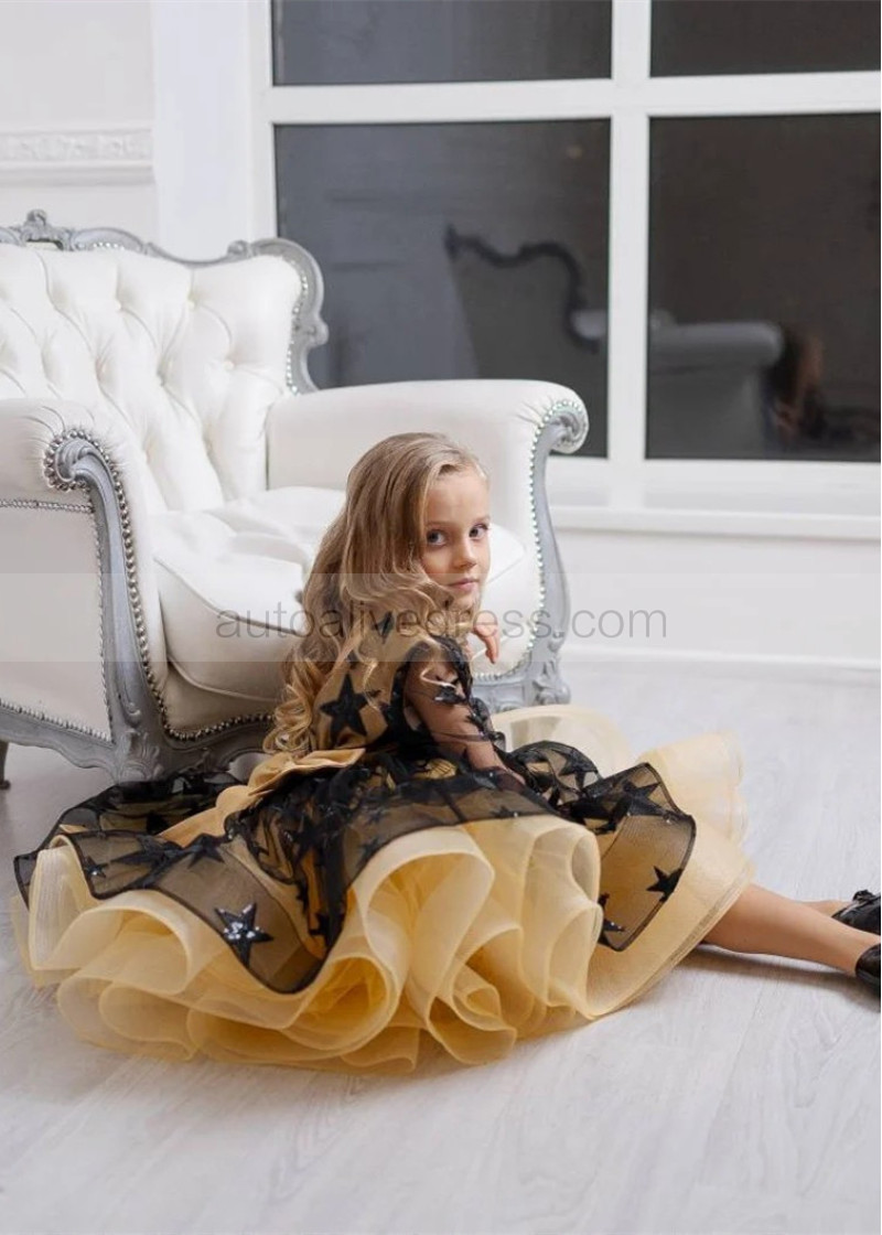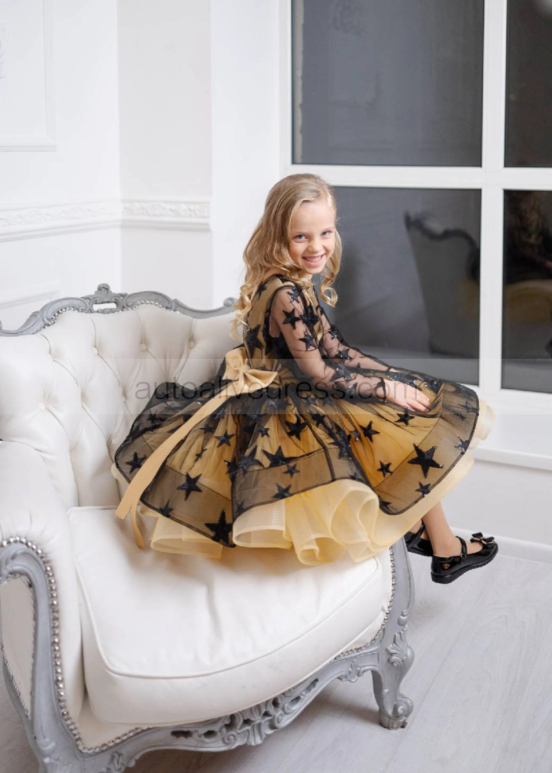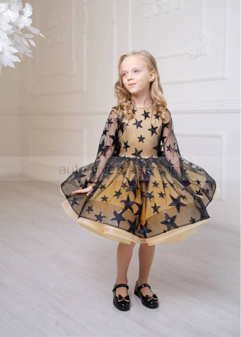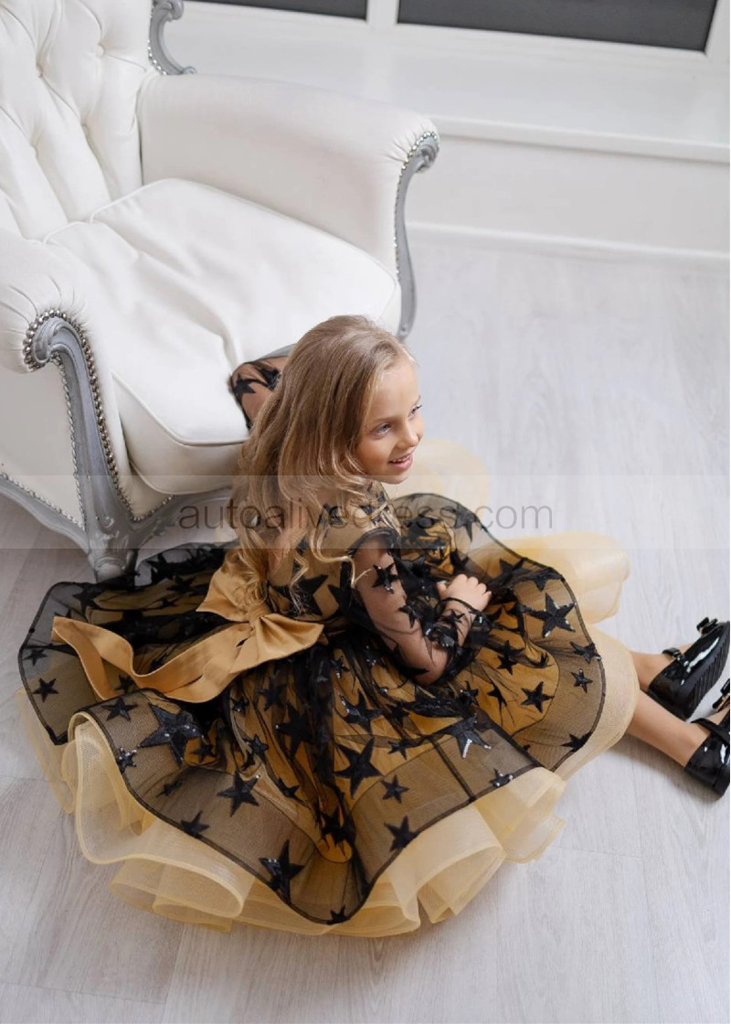 Black Star Tulle Sparkly Flower Girl Dress Photoshoot Outfit